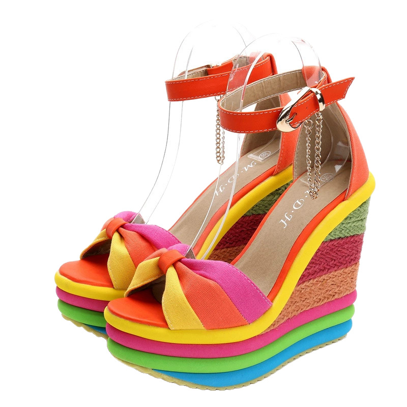 크로스 국경 해외 무역 도매 여름 새로운 슈퍼 하이힐 웨지 샌들 밀짚 물고기 입 로마 무지개 43 플러스 사이즈 여성 신발