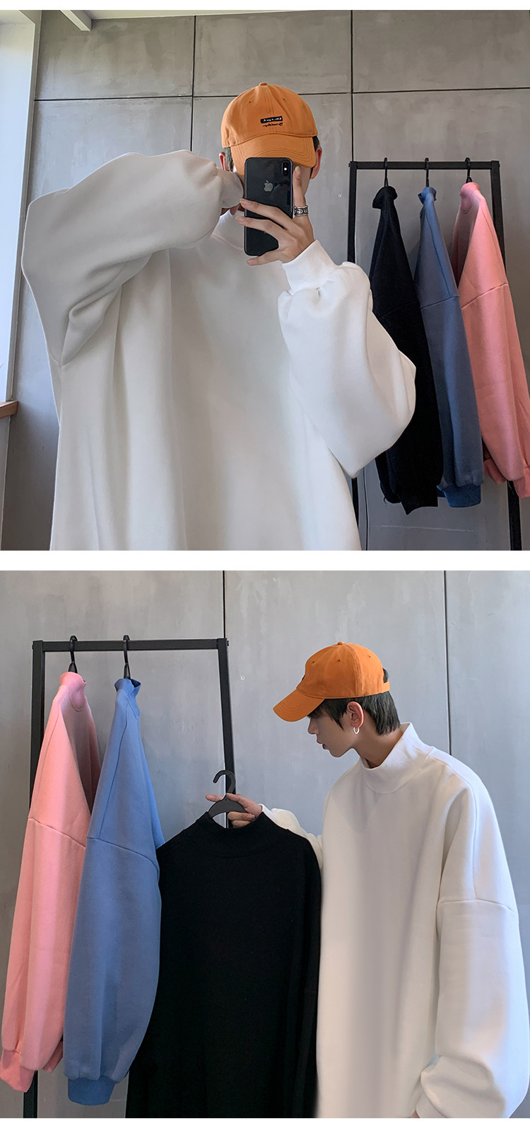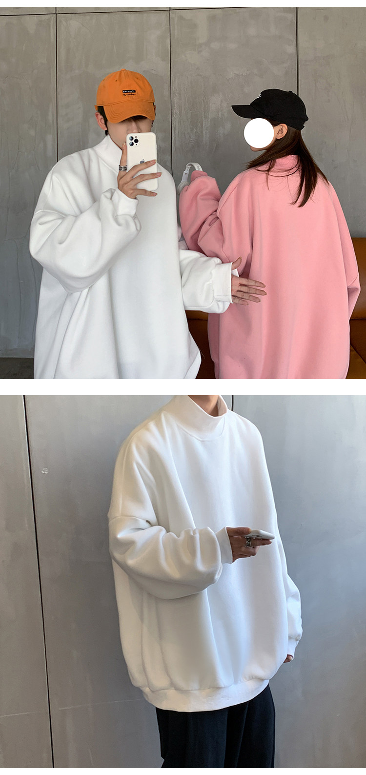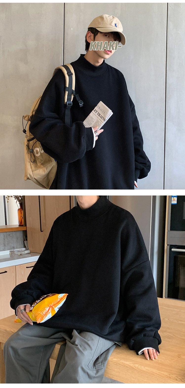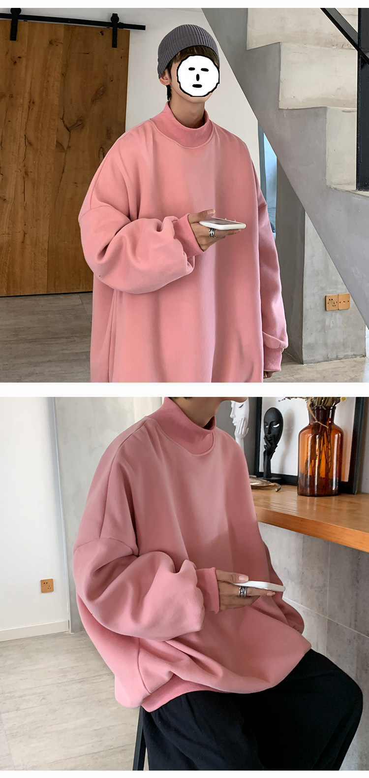 하프 하이 칼라 스웨터 남성용 기모 가을과 겨울 느슨한 홍콩 스타일 모든 매치 오버사이즈 커플 의류