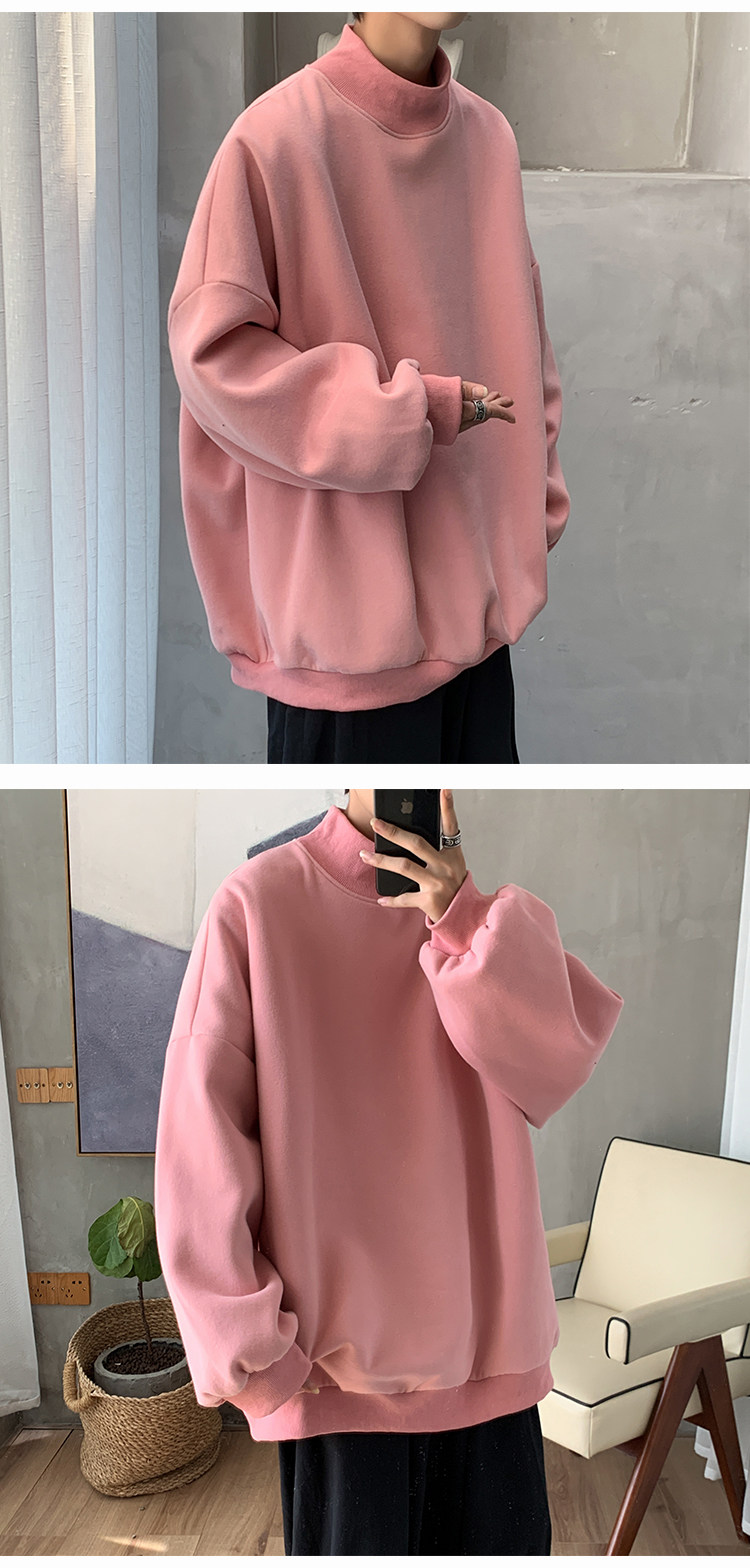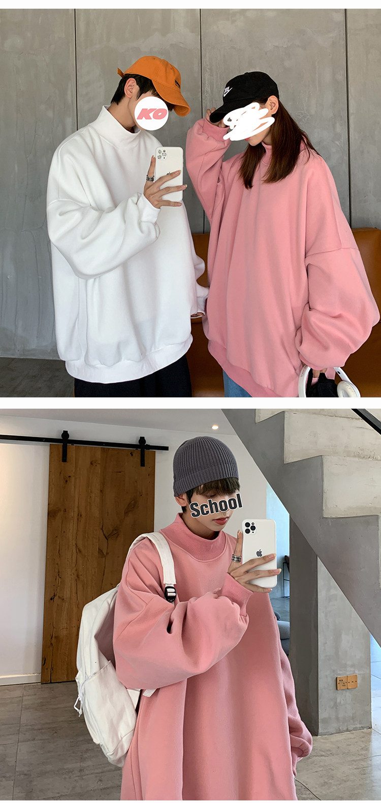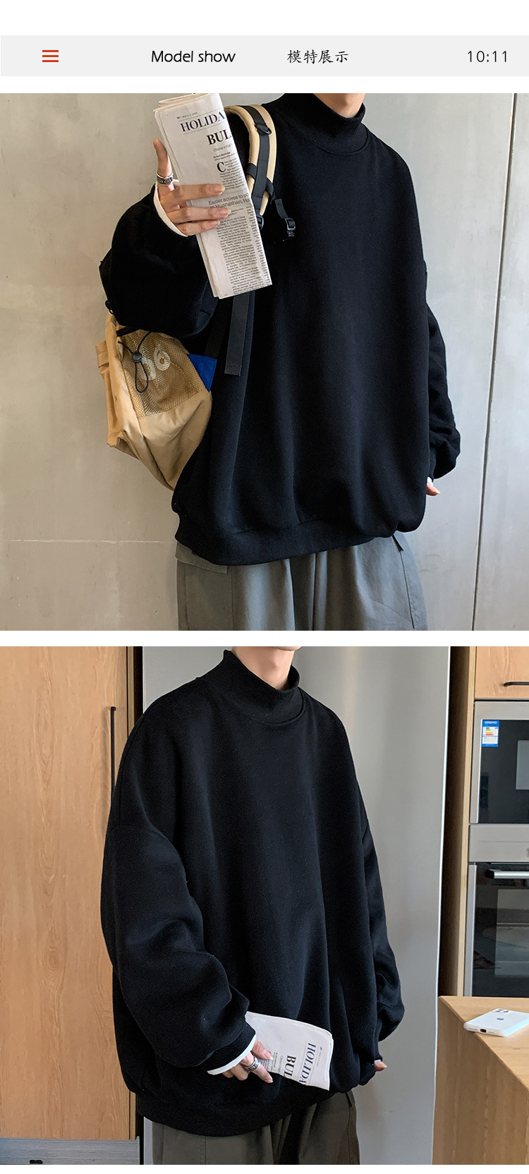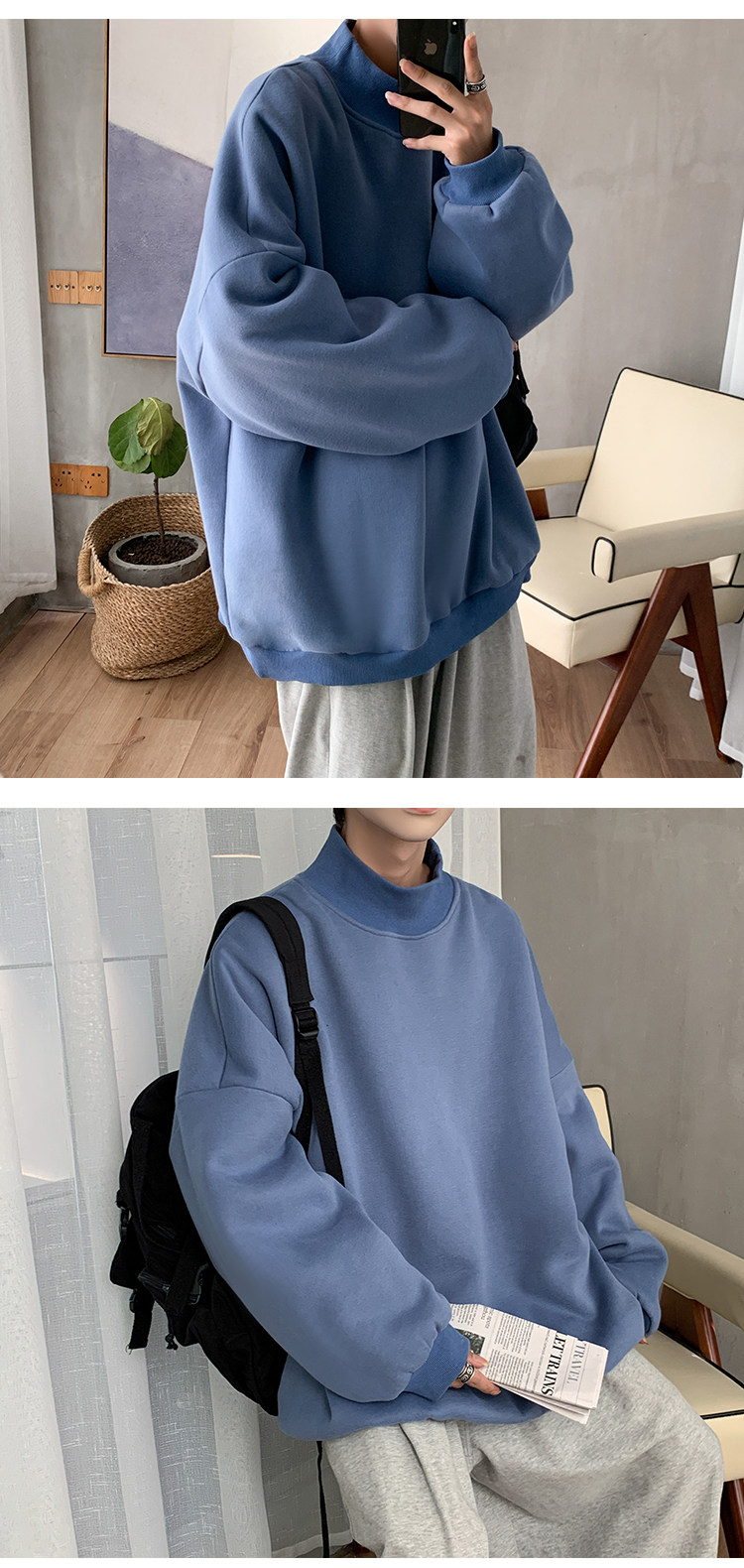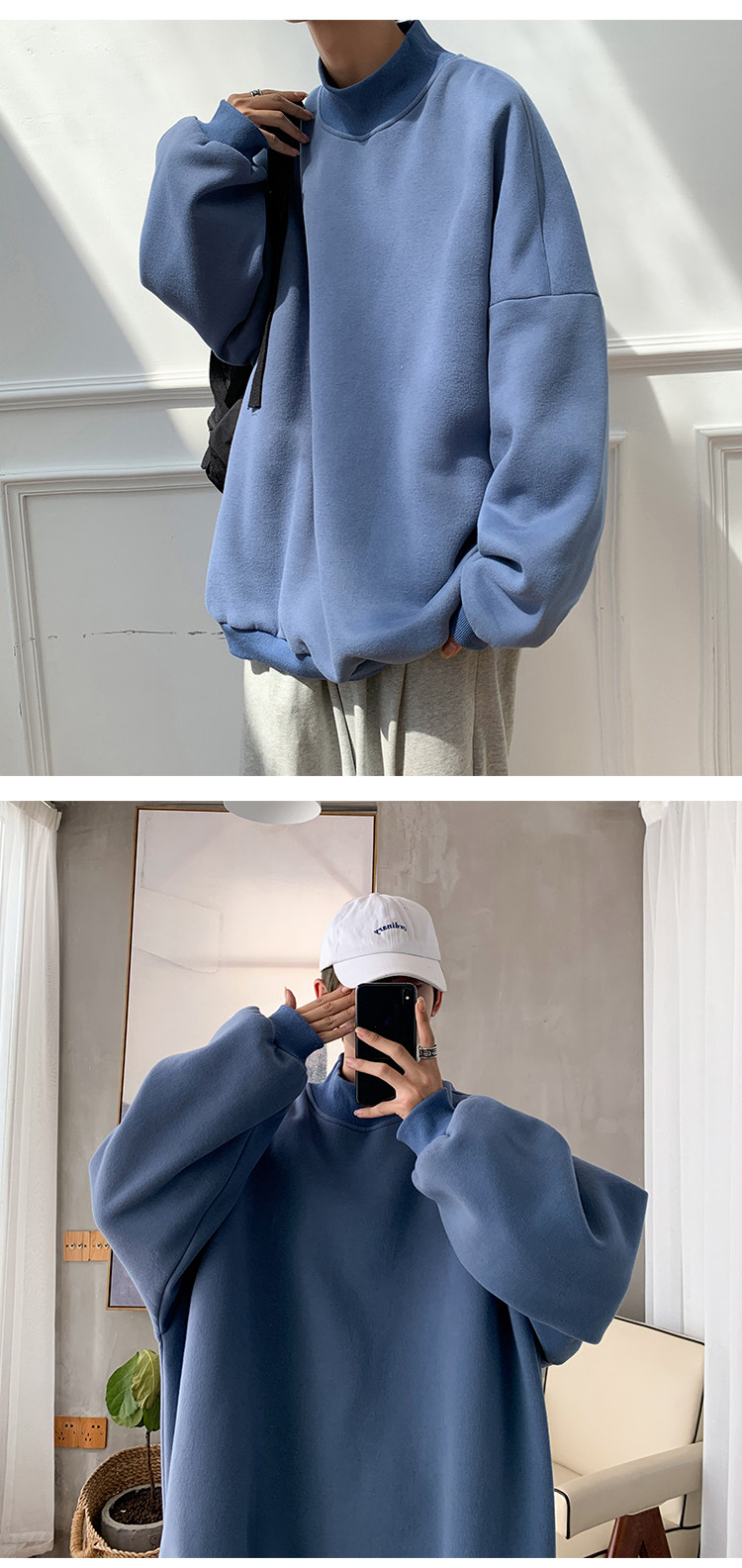 하프 하이 칼라 스웨터 남성용 기모 가을과 겨울 느슨한 홍콩 스타일 모든 매치 오버사이즈 커플 의류