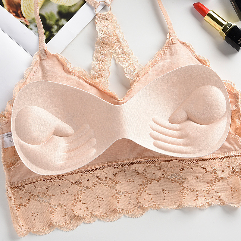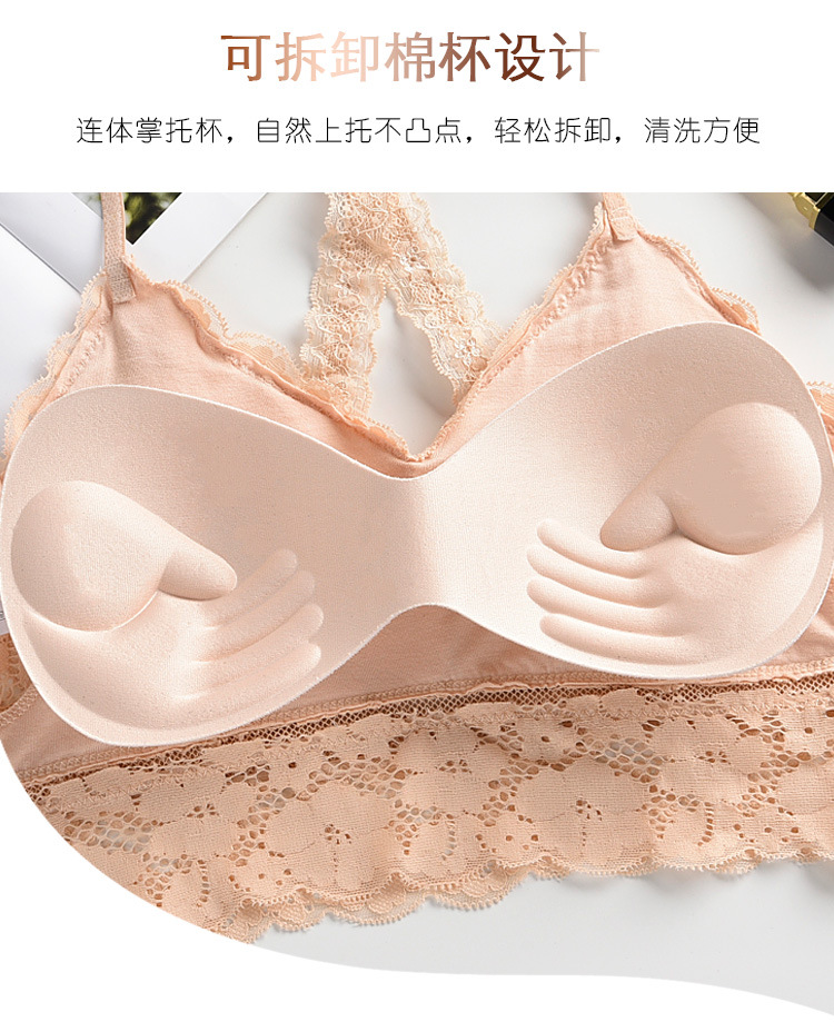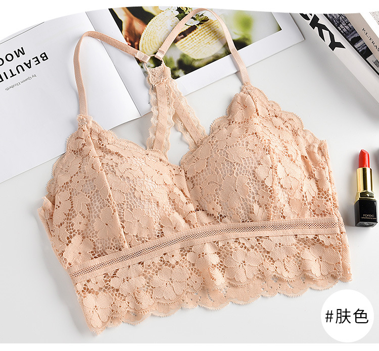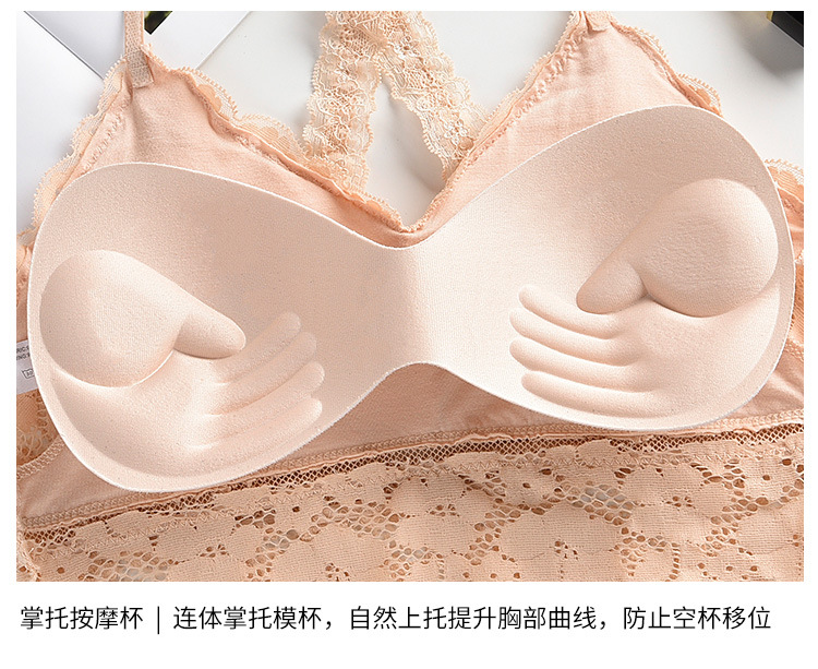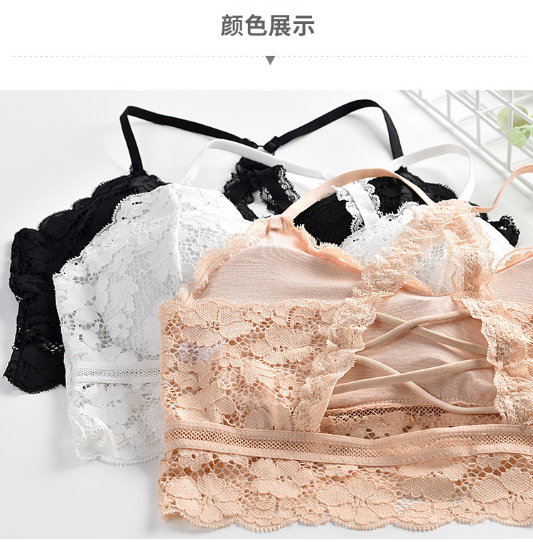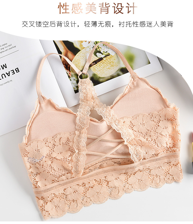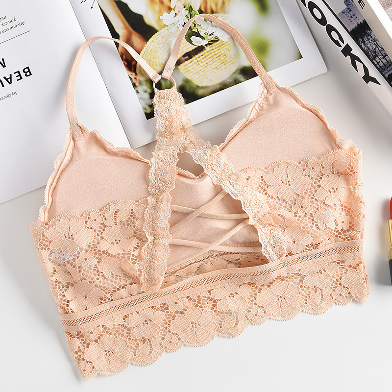 여성용 끈이없는 바닥 아름다운 백 크로스 스트랩 레이스 캐미솔 내부 개더링 랩업 브라 미끄럼 방지 속옷