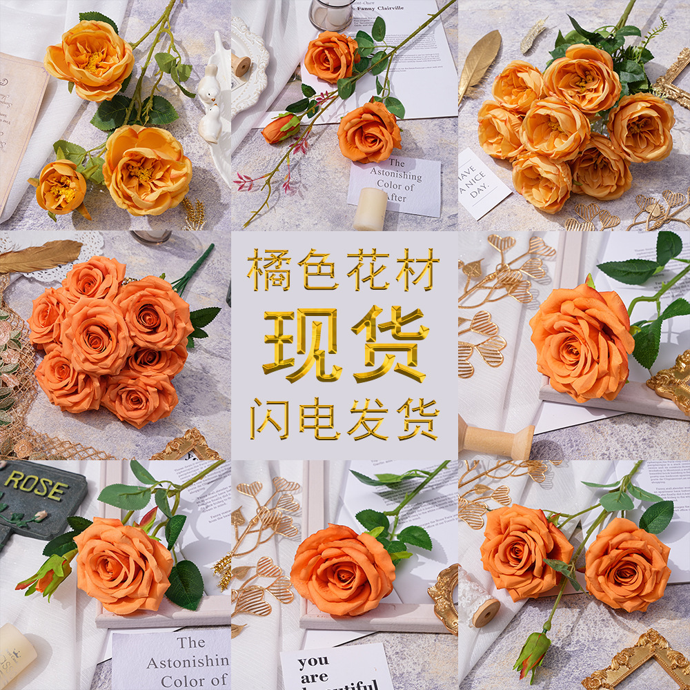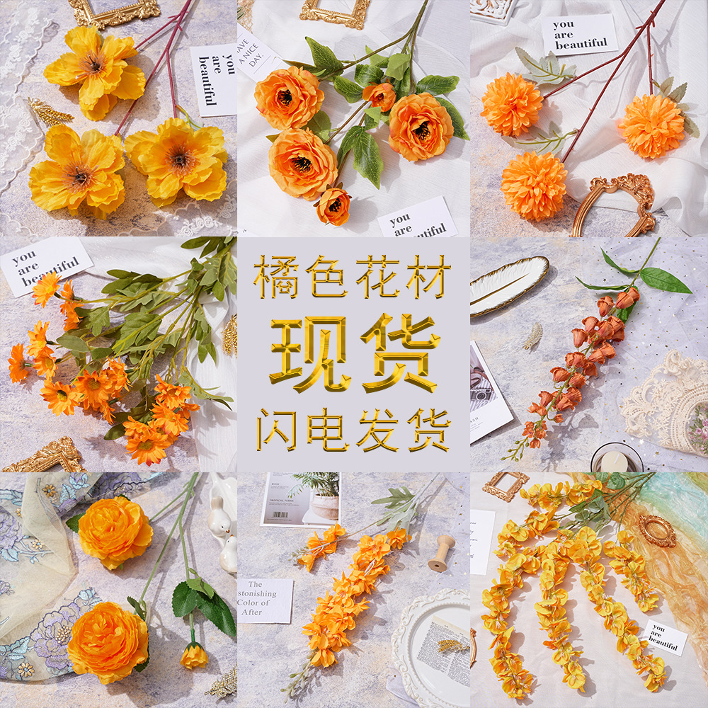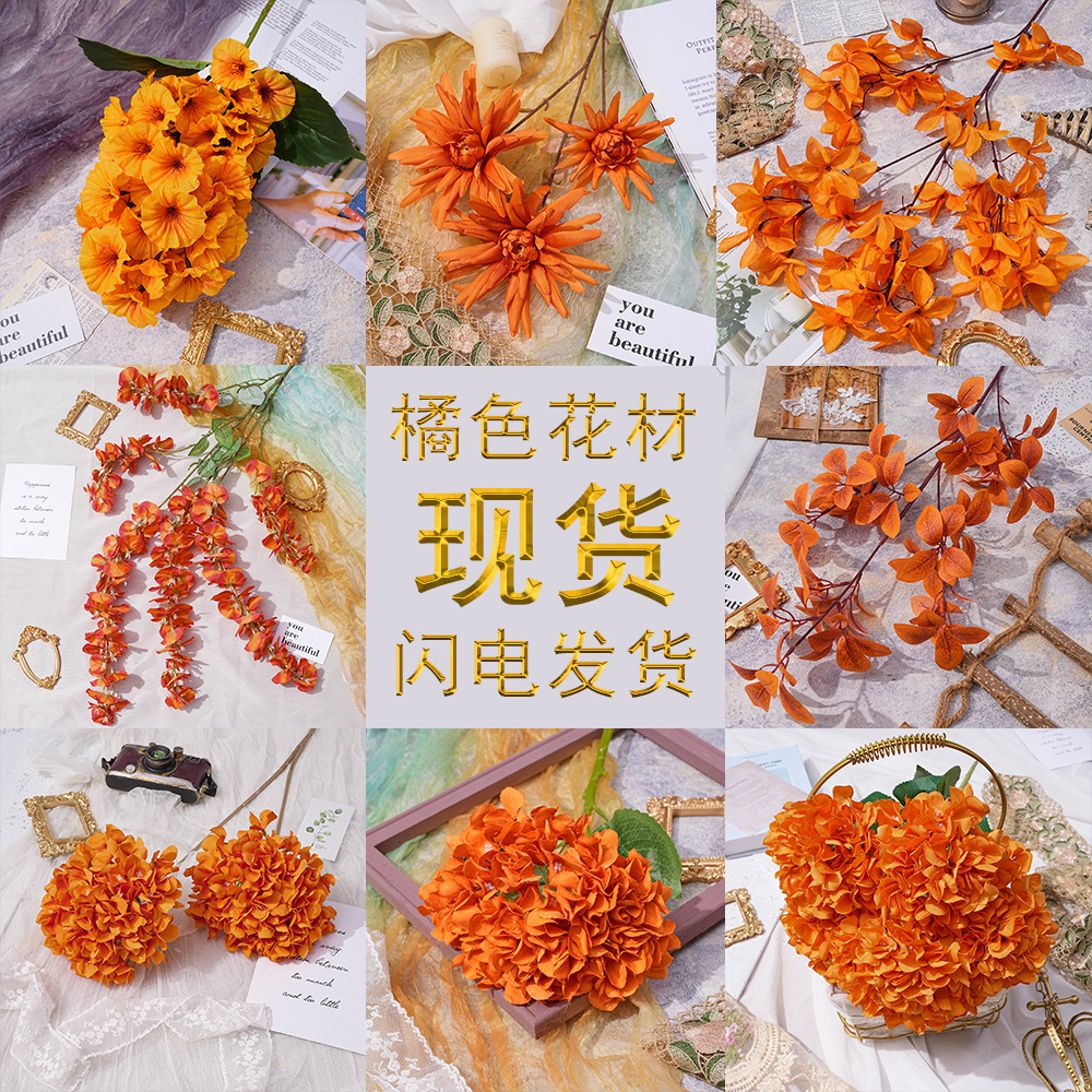 오렌지 웨딩 강당 장식 소품 Lu Yin 가짜 꽃 거실 다이닝 룸 인 바람 작은 빨간 책 모네 정원 창