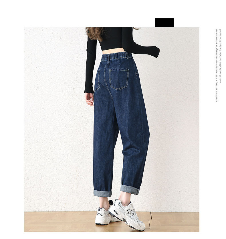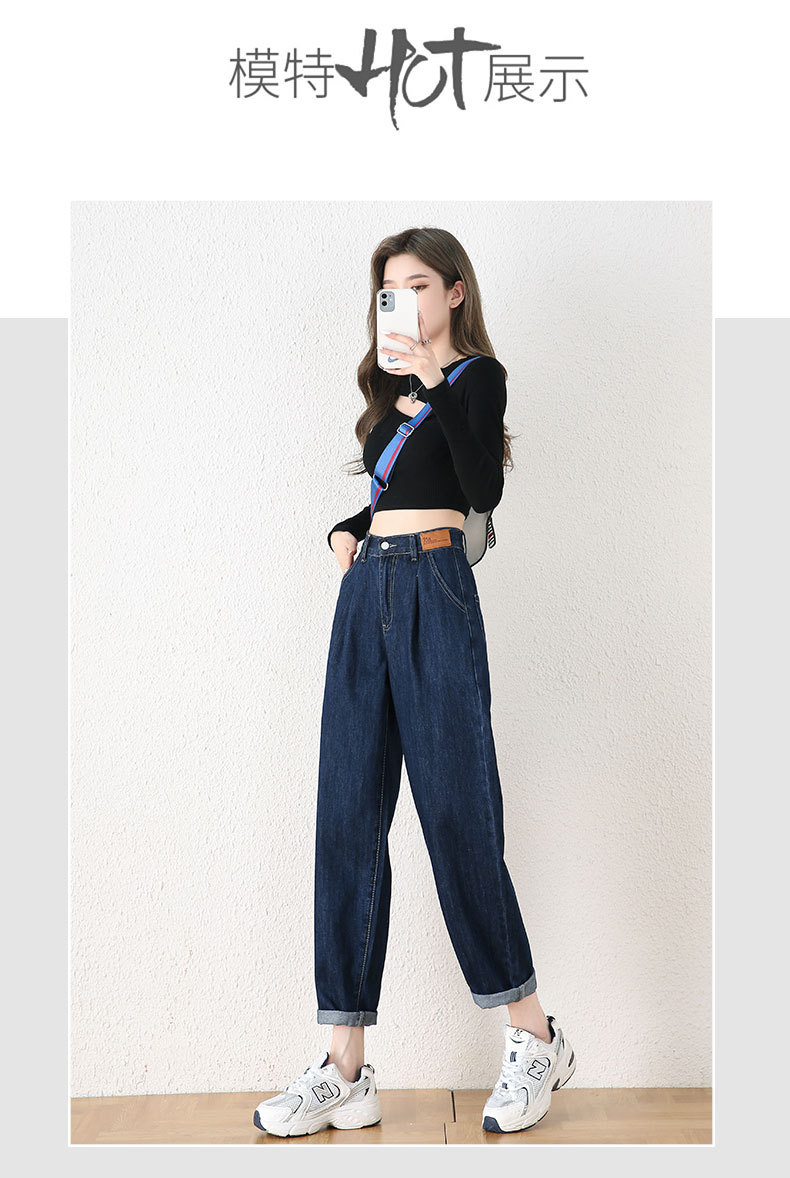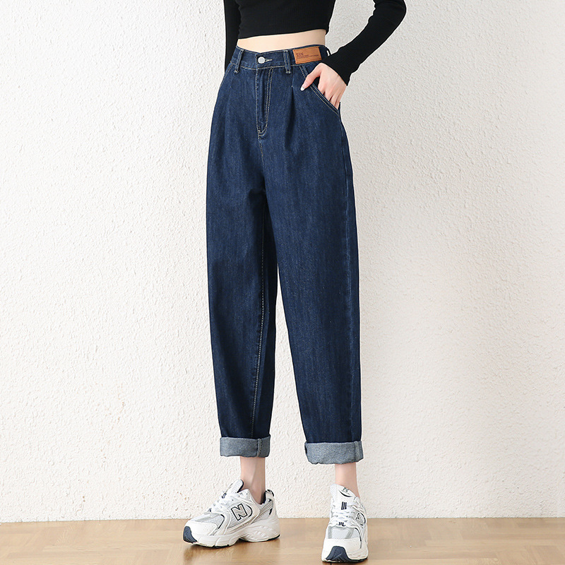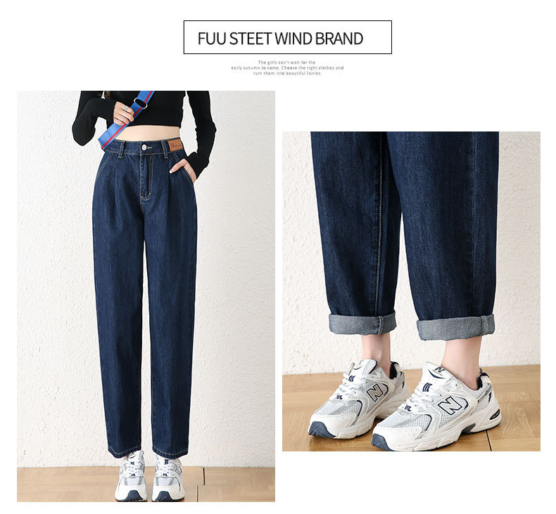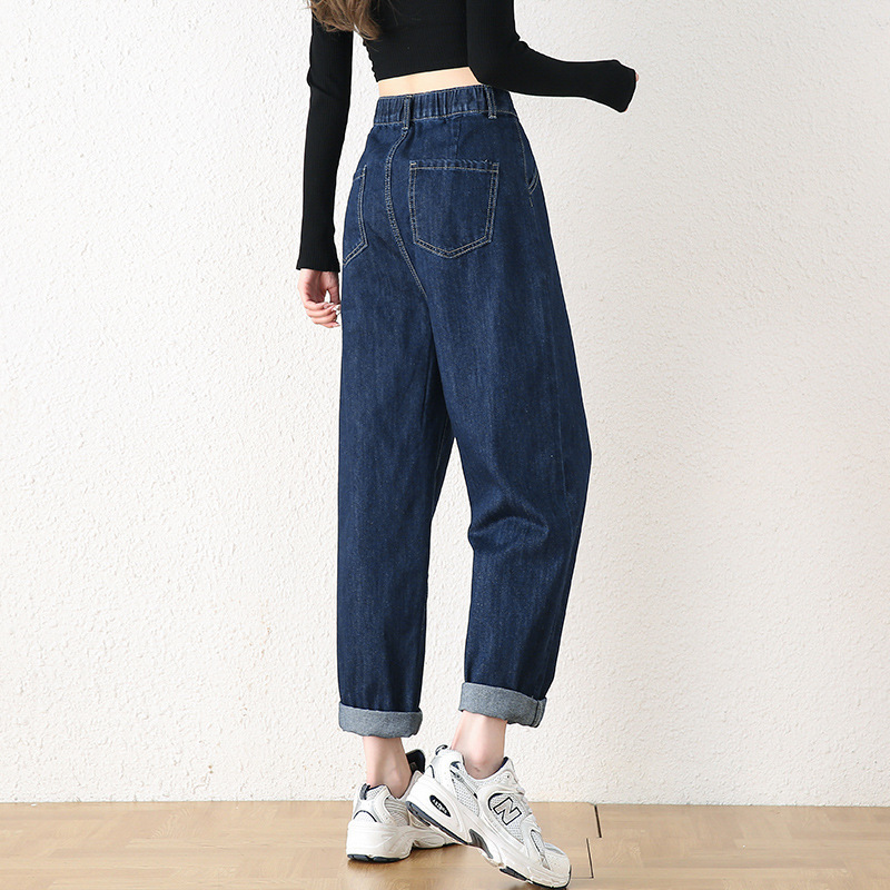 빅사이즈 여성용 하렘 청바지 2024 가을 겨울 신상 하이웨이스트 슬림핏 신축성 허리 루즈핏 스트레이트 데님 팬츠
