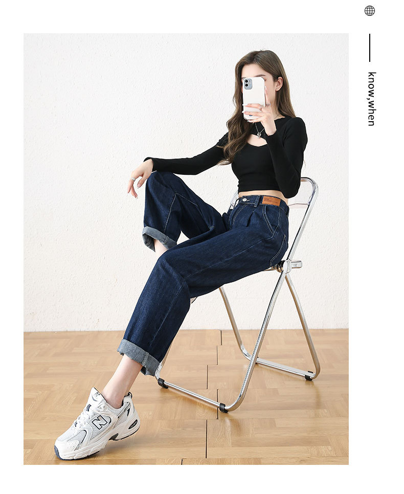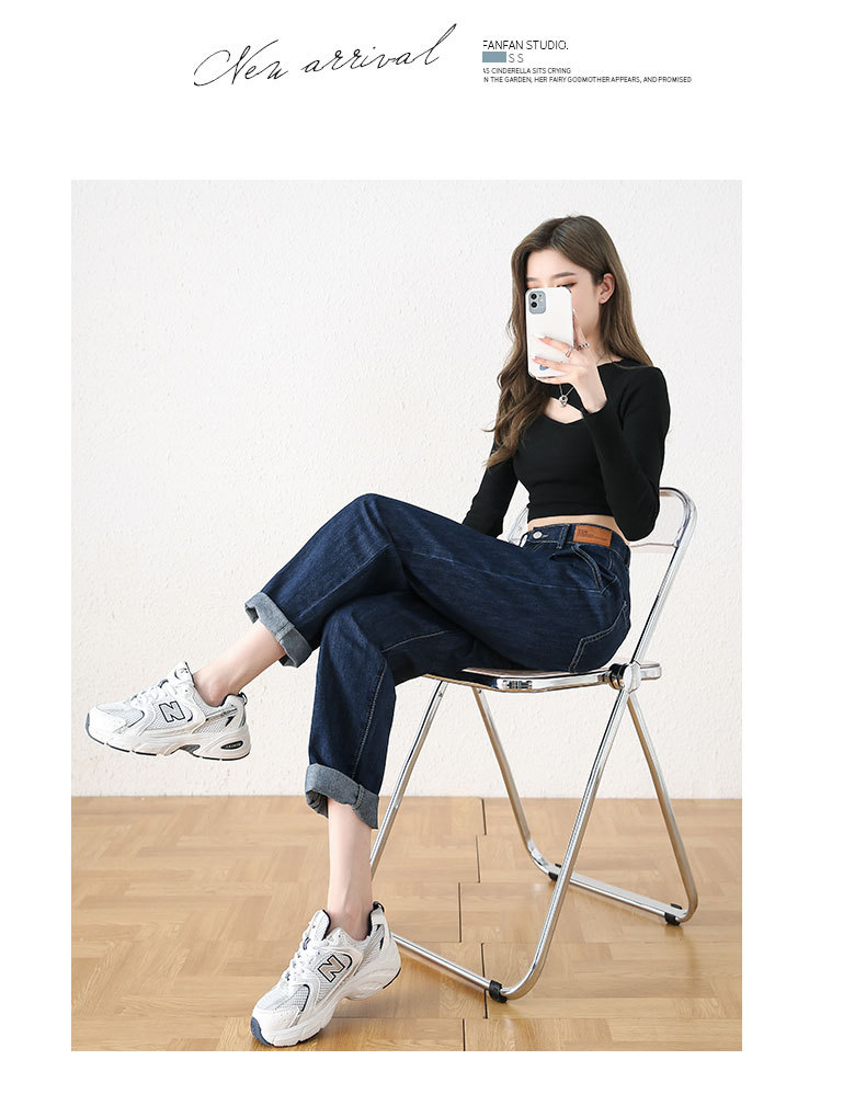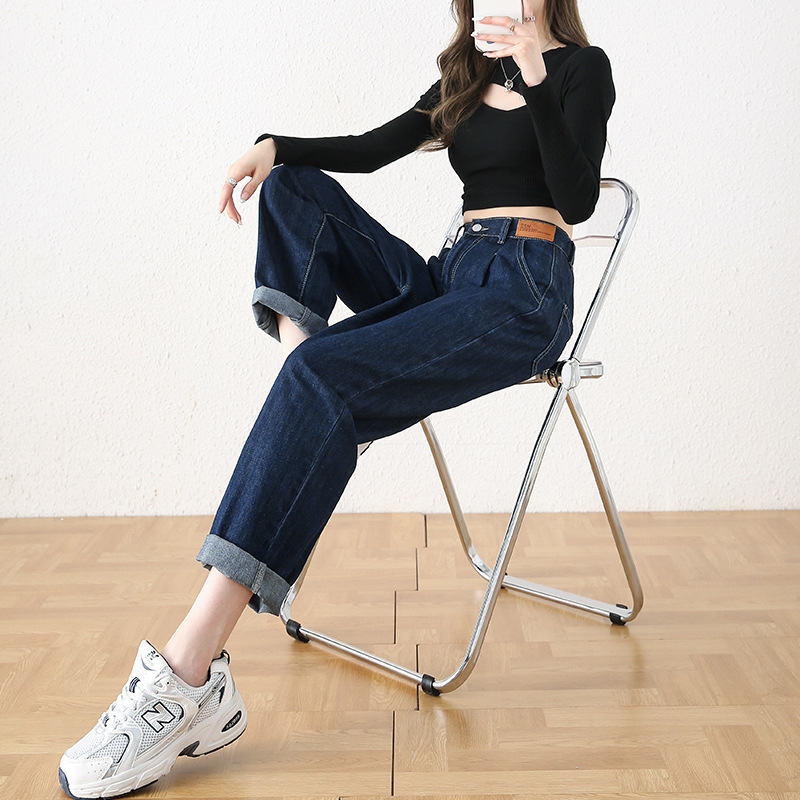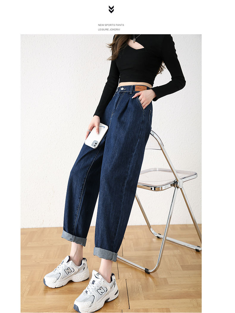 빅사이즈 여성용 하렘 청바지 2024 가을 겨울 신상 하이웨이스트 슬림핏 신축성 허리 루즈핏 스트레이트 데님 팬츠