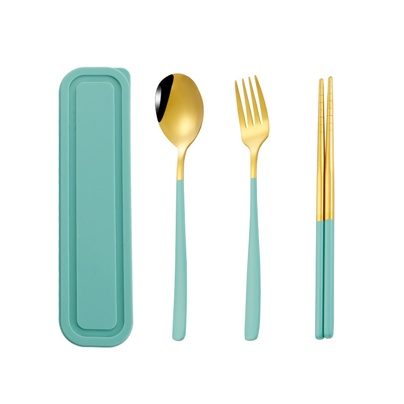 맑고 파란 3 피스 골드 (숟가락 + 젓가락 + 포크 + 상자)