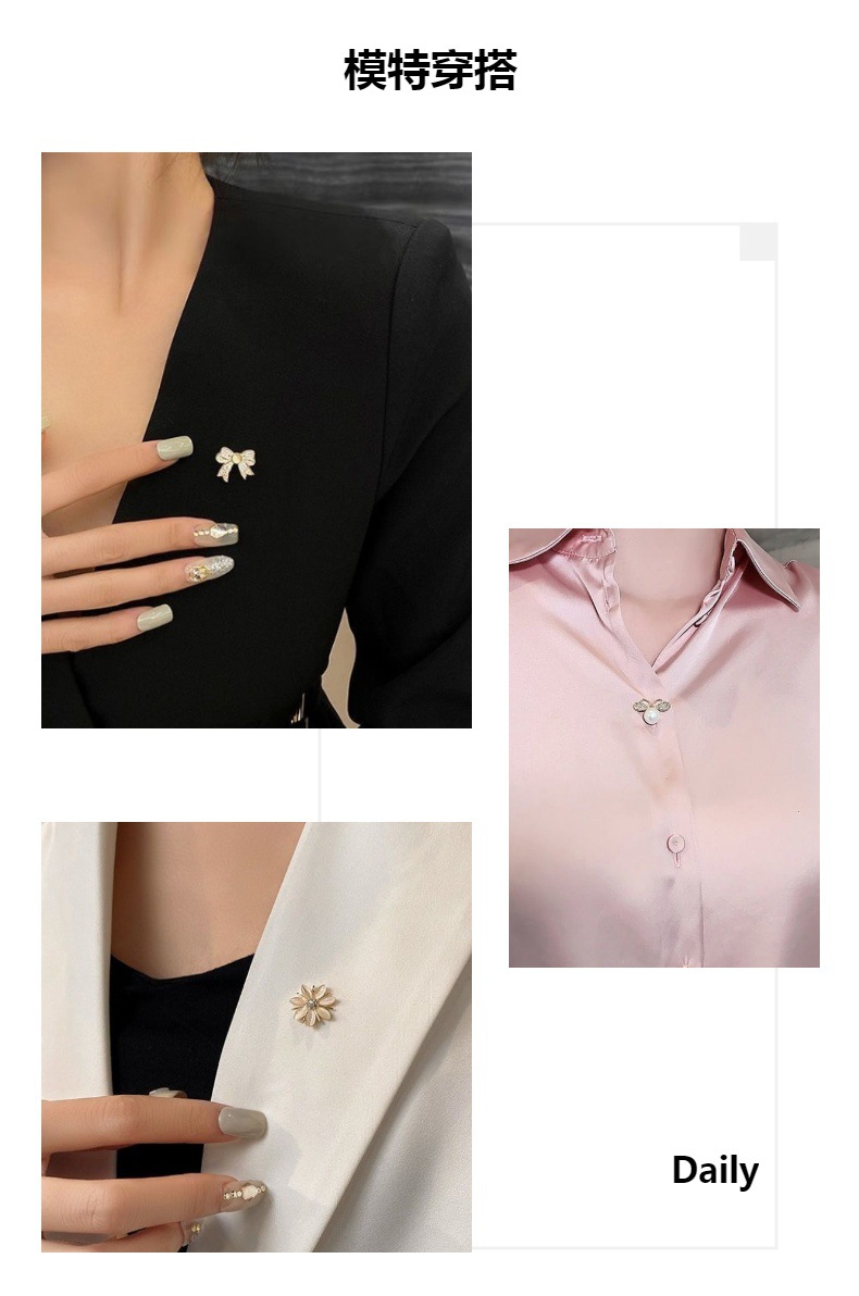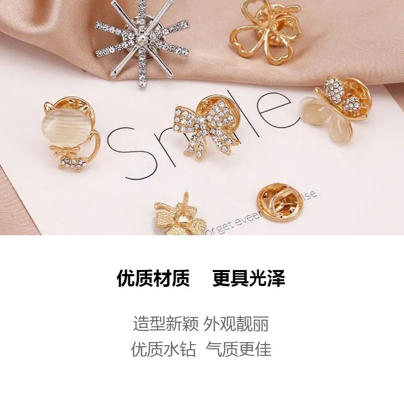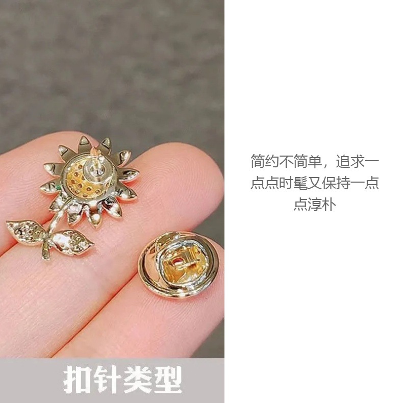 미니 해바라기 네 잎 클로버 개인 핀 일본식 브로치 트렌디 한 세트 액세서리 여자의 크리스탈 패션 안티 라이트 버클