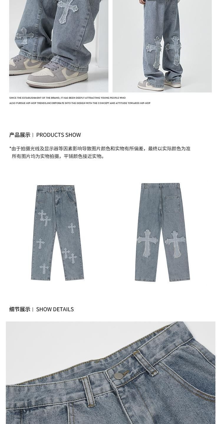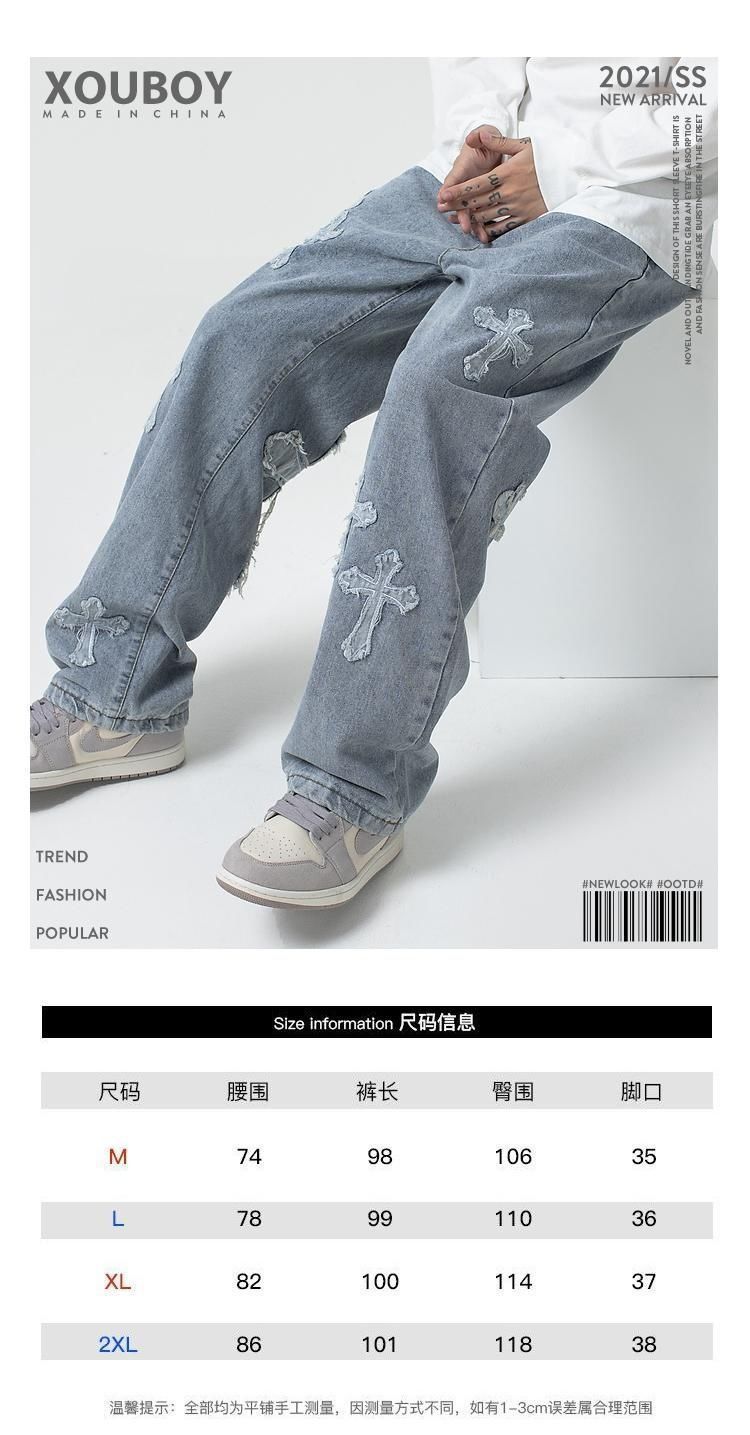 유럽풍 크로스 패치 힙합 데님 팬츠 남성용 멋진 스트리트 스타일 스트레이트 루즈핏 와이드 팬츠 트렌디