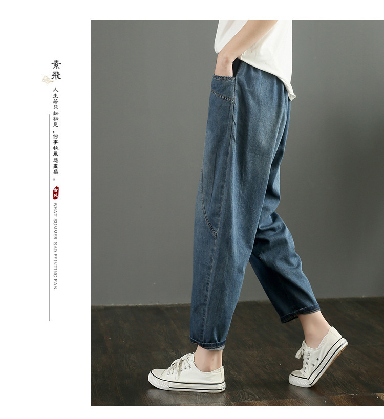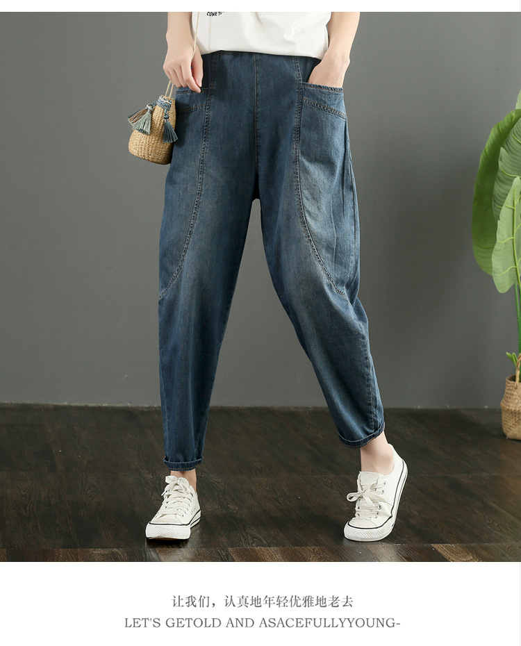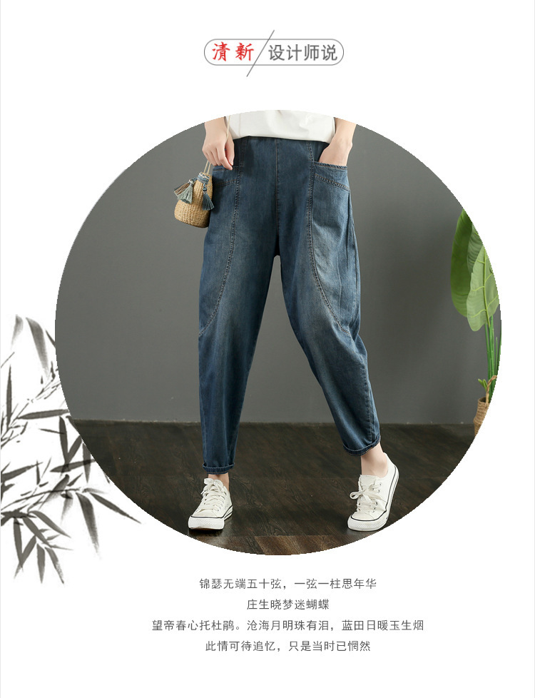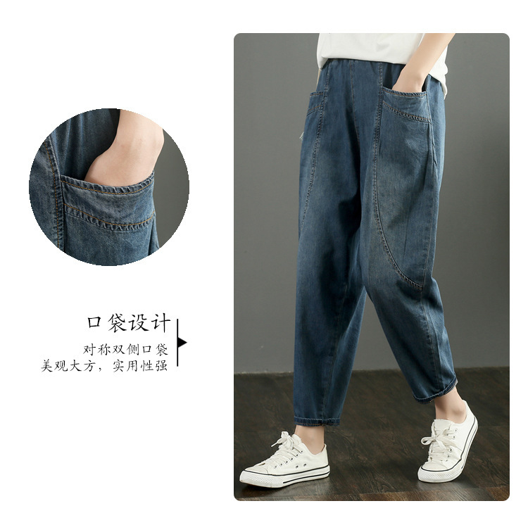 공장 직접 탄성 허리 데님 Harlan 바지 여성 느슨한 새 플러스 사이즈 통통녀 바지 데님 바지 여성