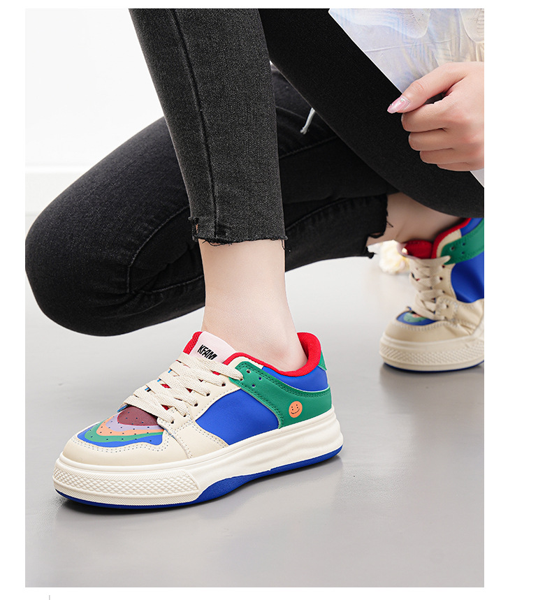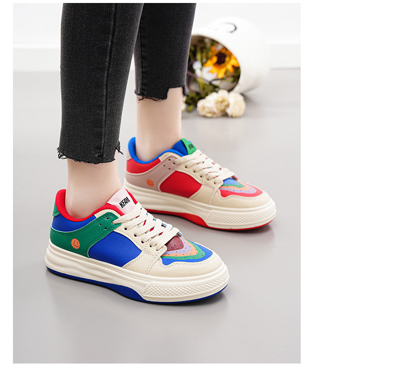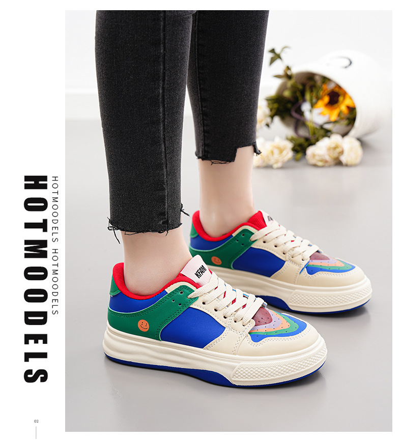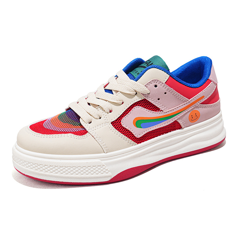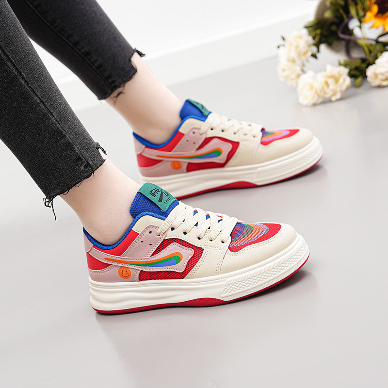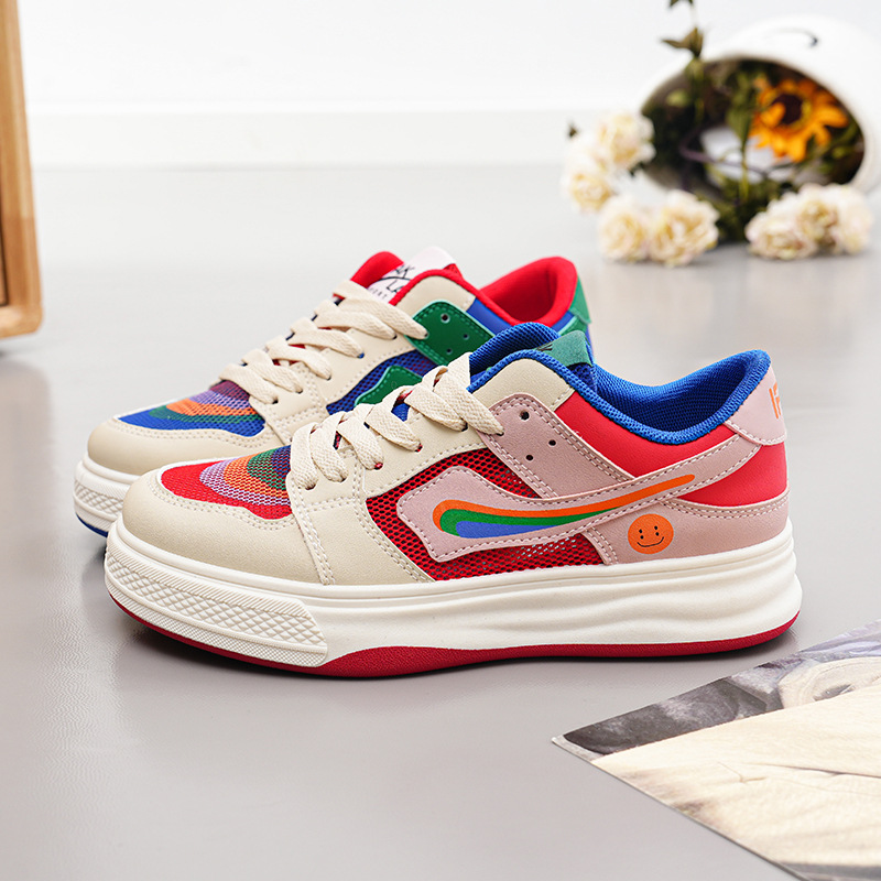 2024 새로운 여성 신발 메쉬 만다린 오리 컬러 매칭 보드 신발 봄과 여름 플랫 보드 신발 여성 캐주얼 신발 속이 빈 흰색 신발