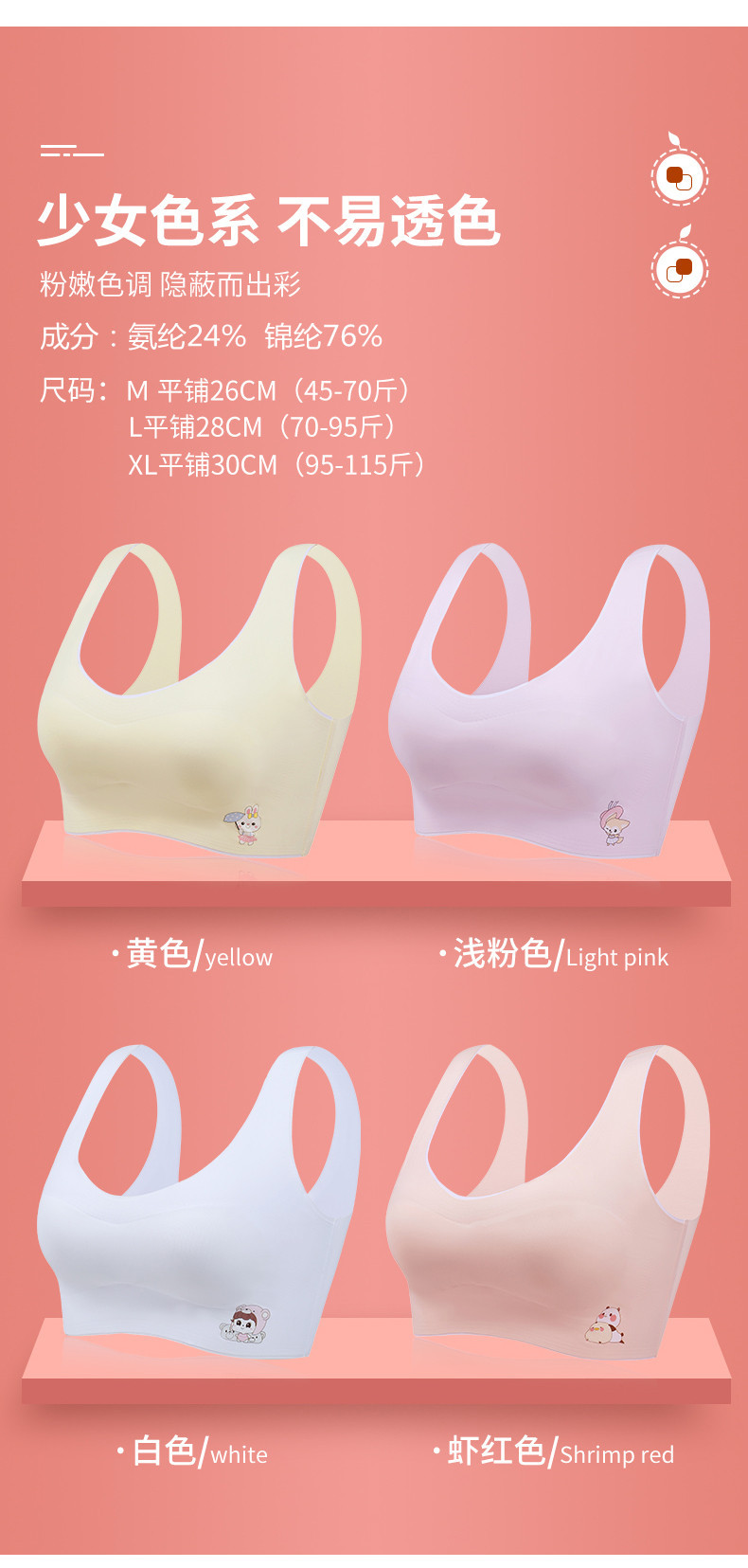흔적 없는 발달 단계 조끼형 속옷 탈부착 가능한 가슴 패드 무와이어 경량 초등학생 2단계 어린이 만화