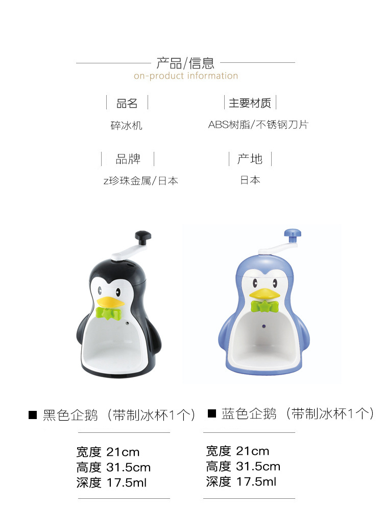 일본 수입 진주 금속 가정용 수동 얼음 대패 얼음 크래커 작은 부드러운 스무디 곰 펭귄 작은