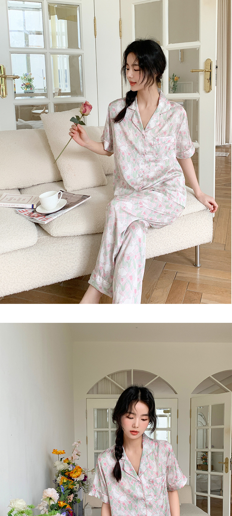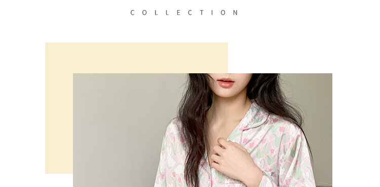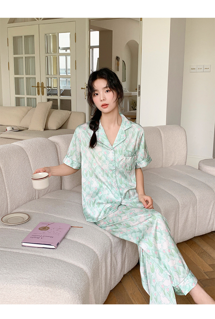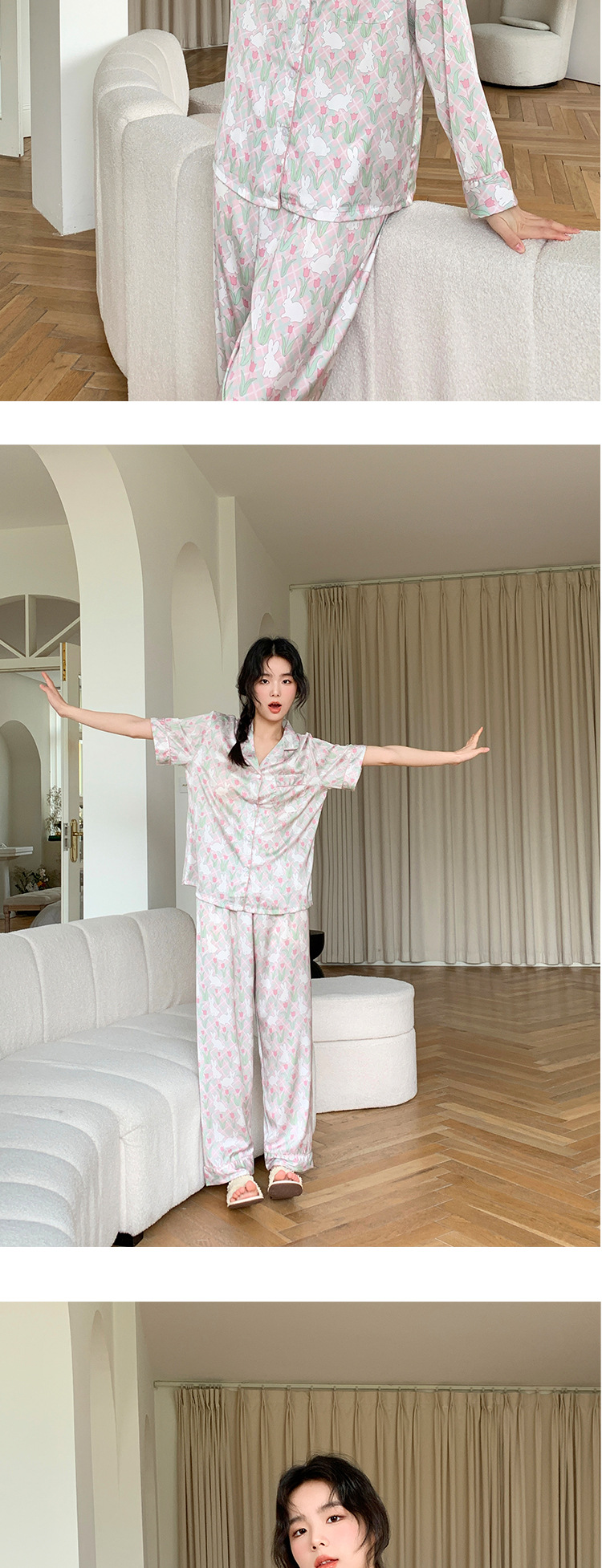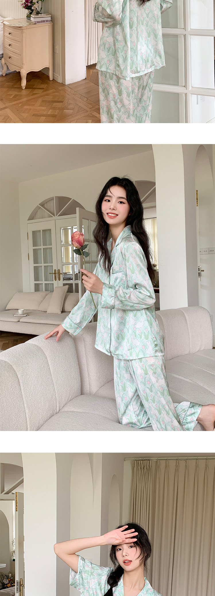 튤립 토끼 잠옷 여성 달콤한 소녀 얼음 실크 새틴 가정 옷 긴 소매 2023 봄 여름 얇은