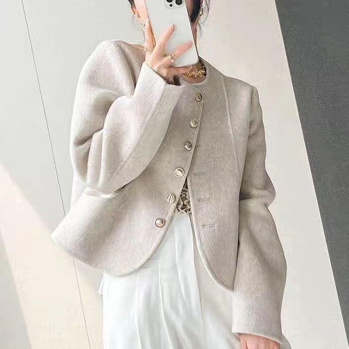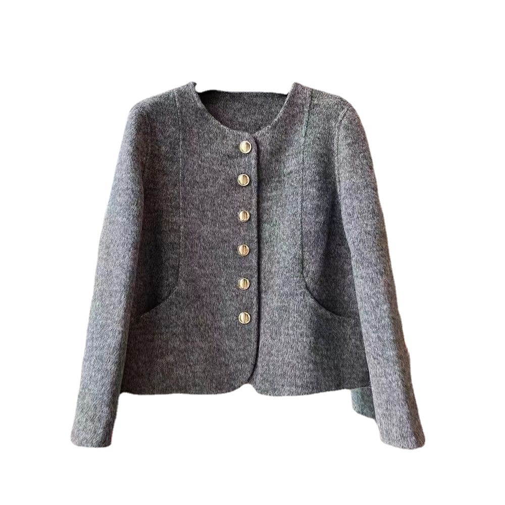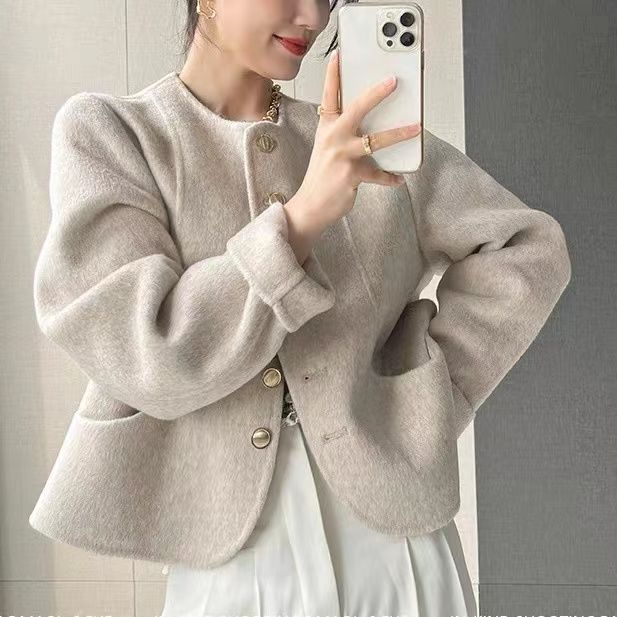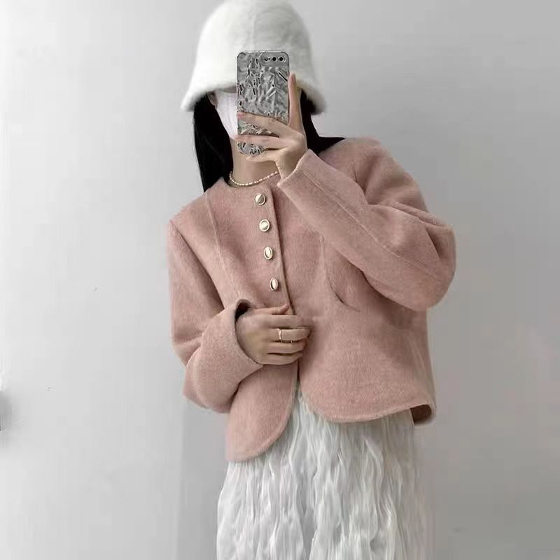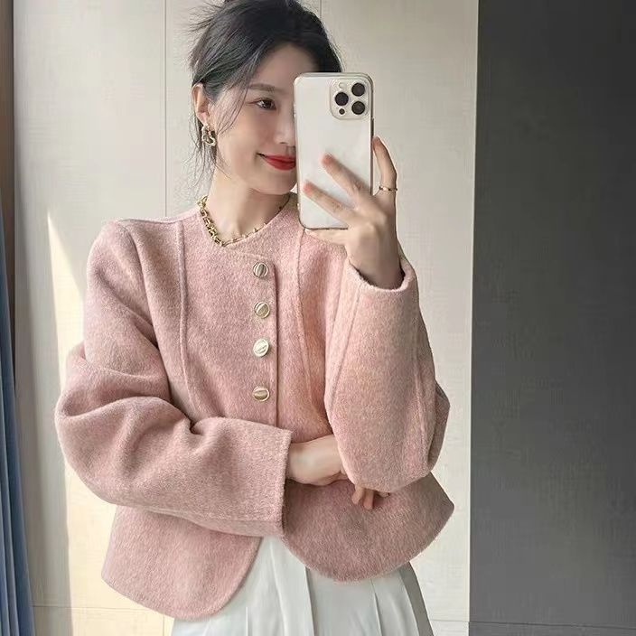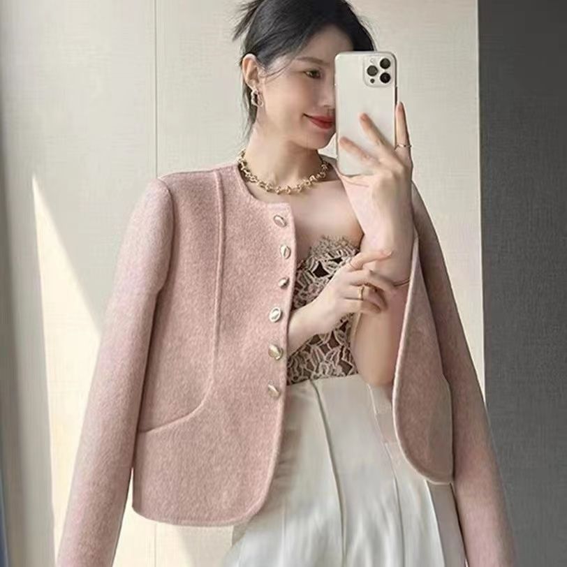 여성을위한 핑크 양면 캐시미어 코트 2025 새로운 한국 스타일 작은 향기 스타일 작은 기질 모직 코트 두꺼운