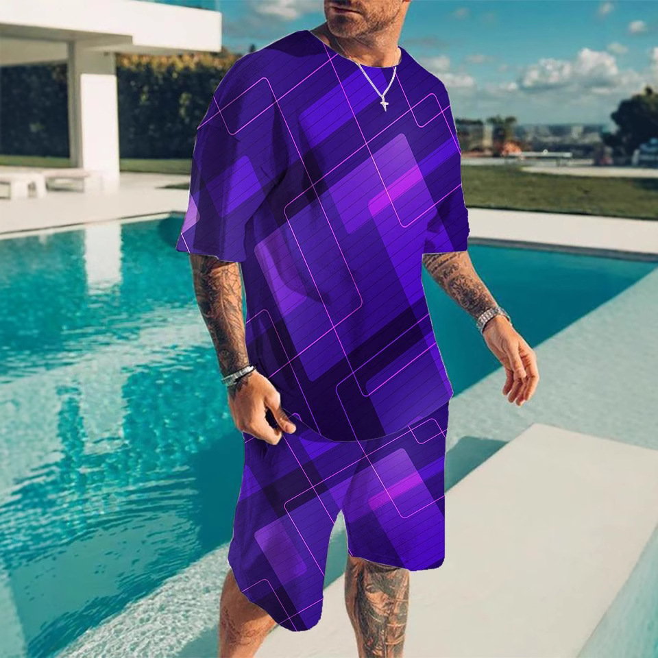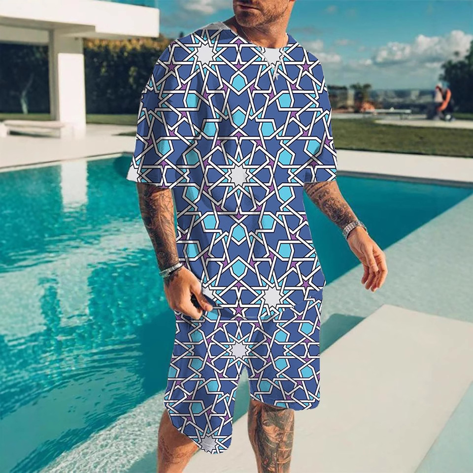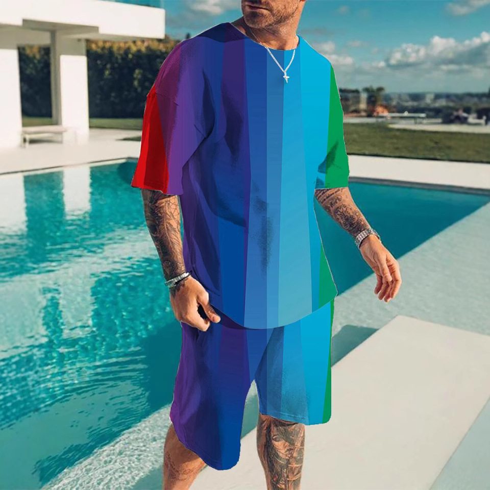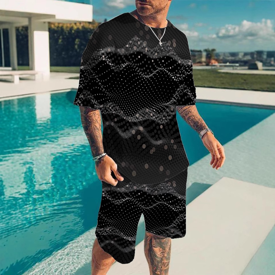 아마존 크로스 보더 동물 디지털 인쇄 3D 남성 캐주얼 비치 바지 티셔츠 반바지 세트