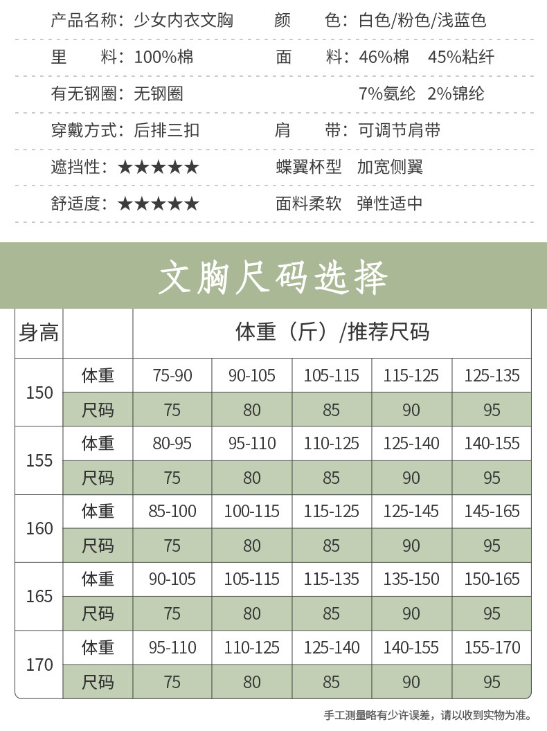 봄 여름 중학생 속옷, 청소년 발달기 여아 브라, 큰 가슴을 위한 작은 브라, 얇은 아동 조끼