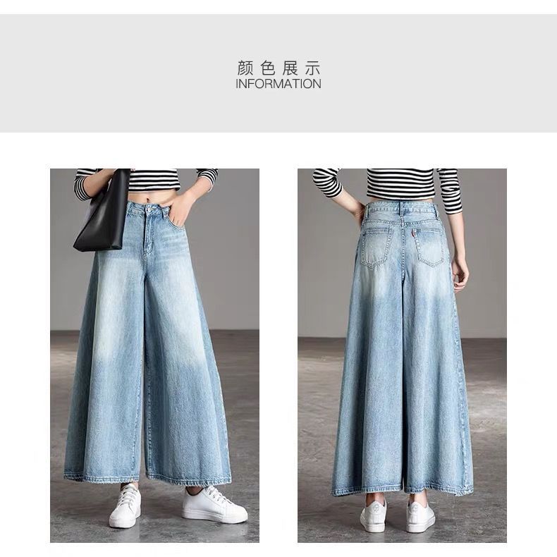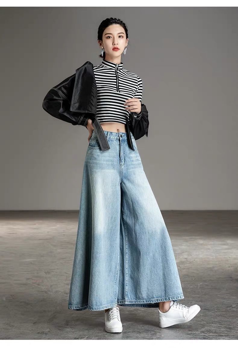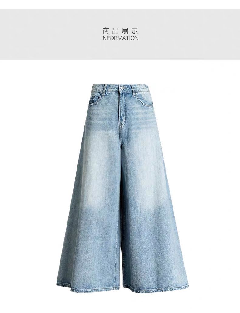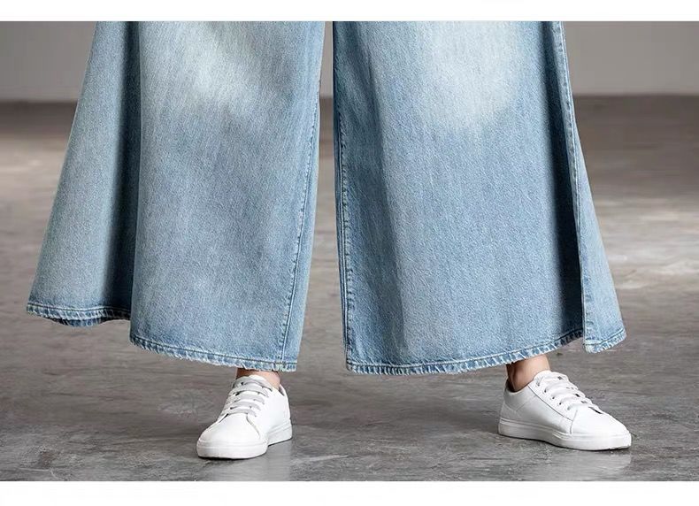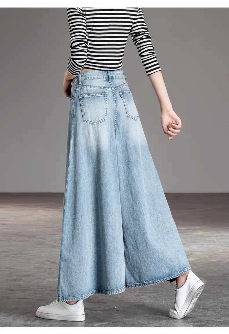 2026 여성용 하이웨이스트 와이드 팬츠 봄/가을 키 큰 분들을 위한 플레어 스커트 팬츠 워싱 데님 와이드 팬츠