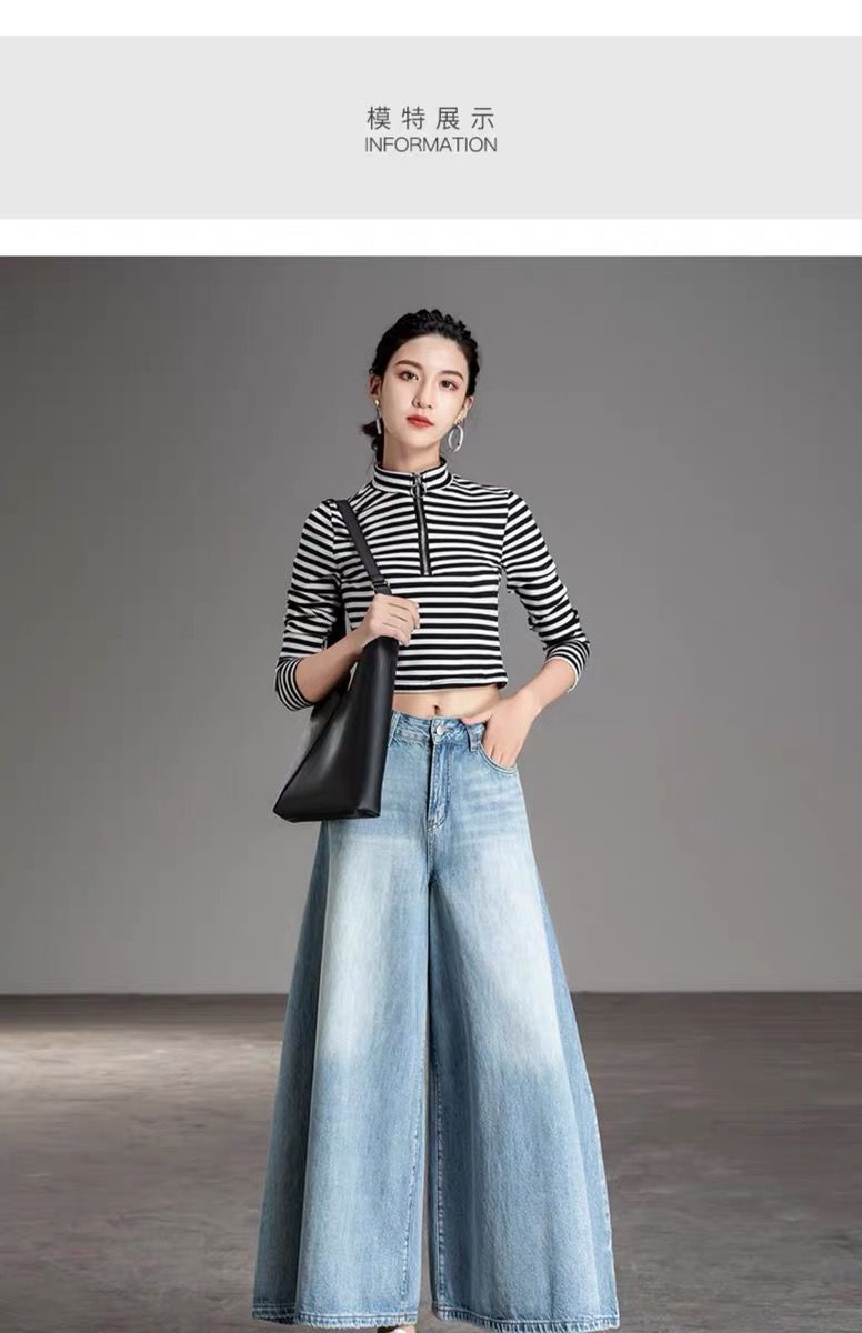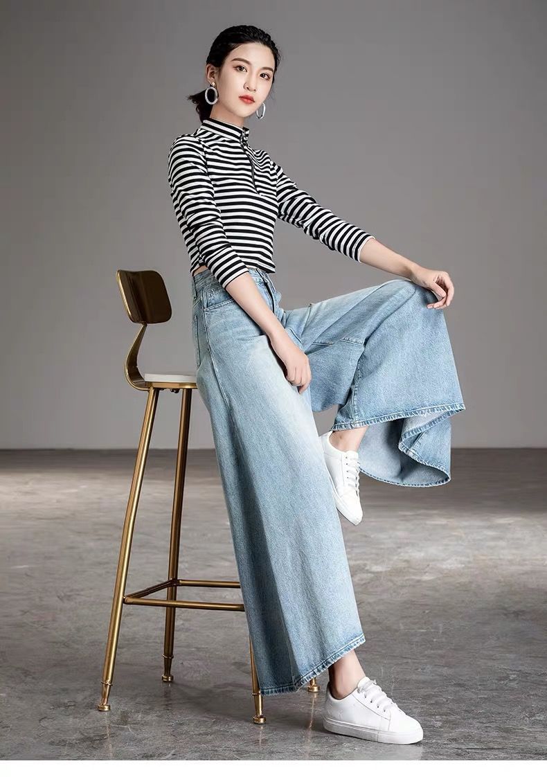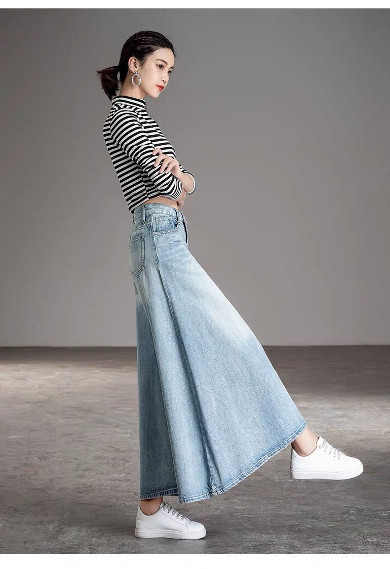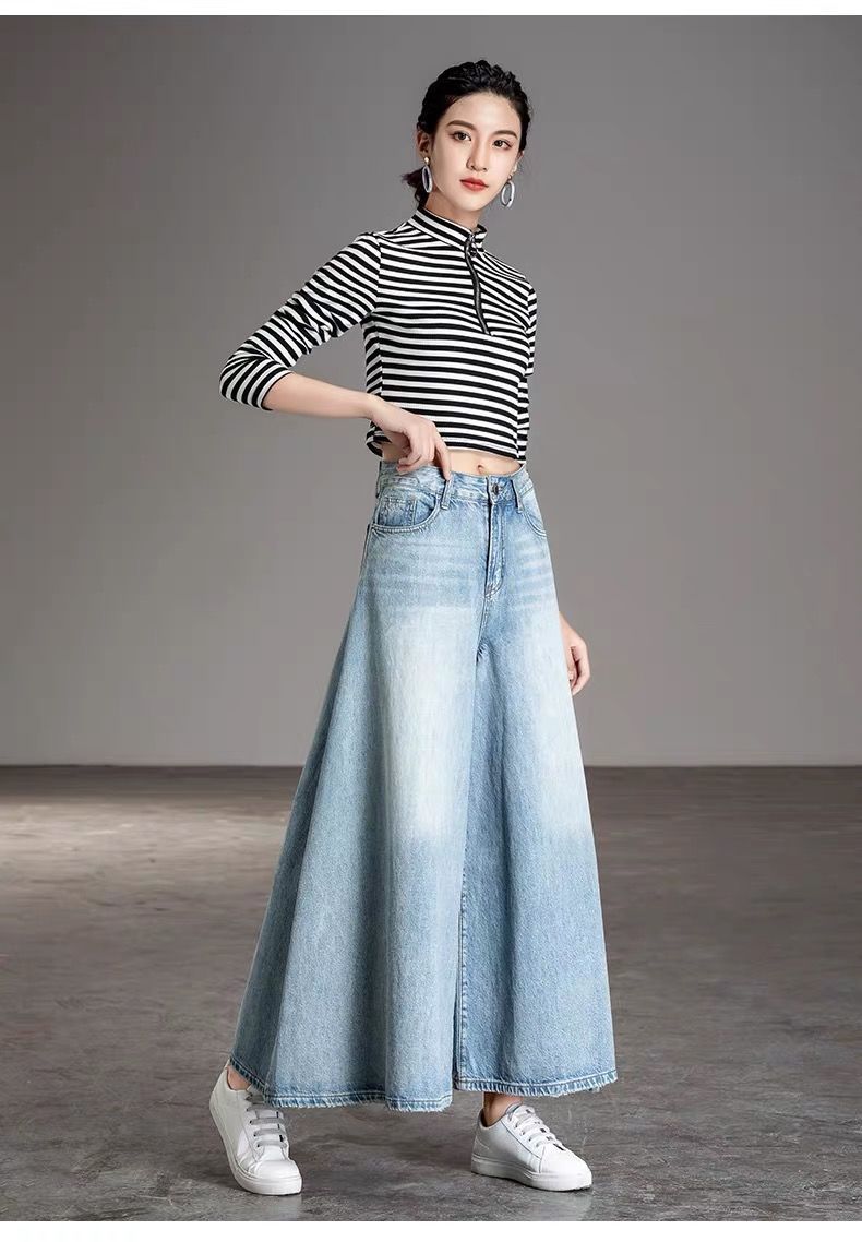 2026 여성용 하이웨이스트 와이드 팬츠 봄/가을 키 큰 분들을 위한 플레어 스커트 팬츠 워싱 데님 와이드 팬츠