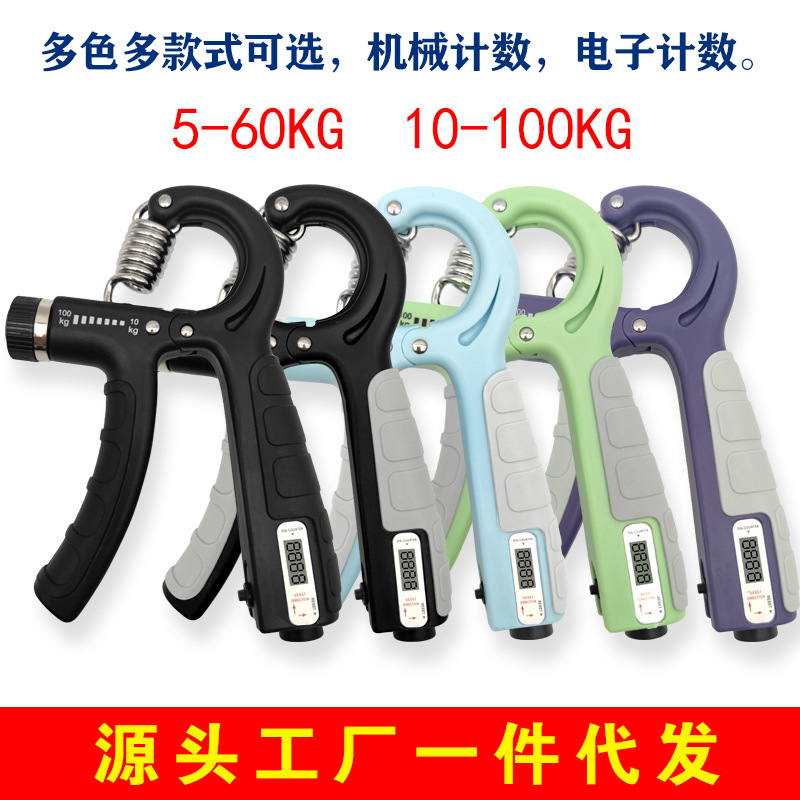 不计数握力器一件100个装 箱规46*30*23CM。一箱15KG左右。支持混装发货。计数款一件100个装,箱规50*34*26CM 。一箱18KG左右。图片均为实拍,最下面有实拍包装图片,封塑包装和OPP袋包装随机,需要指定联系客服
