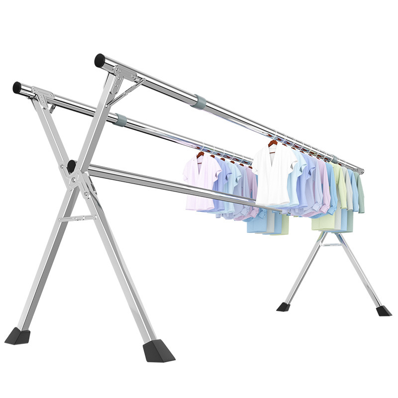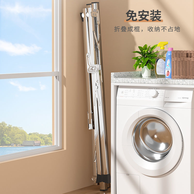 두꺼운 스테인레스 스틸 바닥 스탠딩 수직 건조 랙 가정용 발코니 접이식 건조 랙 다기능 옷 걸이 랙