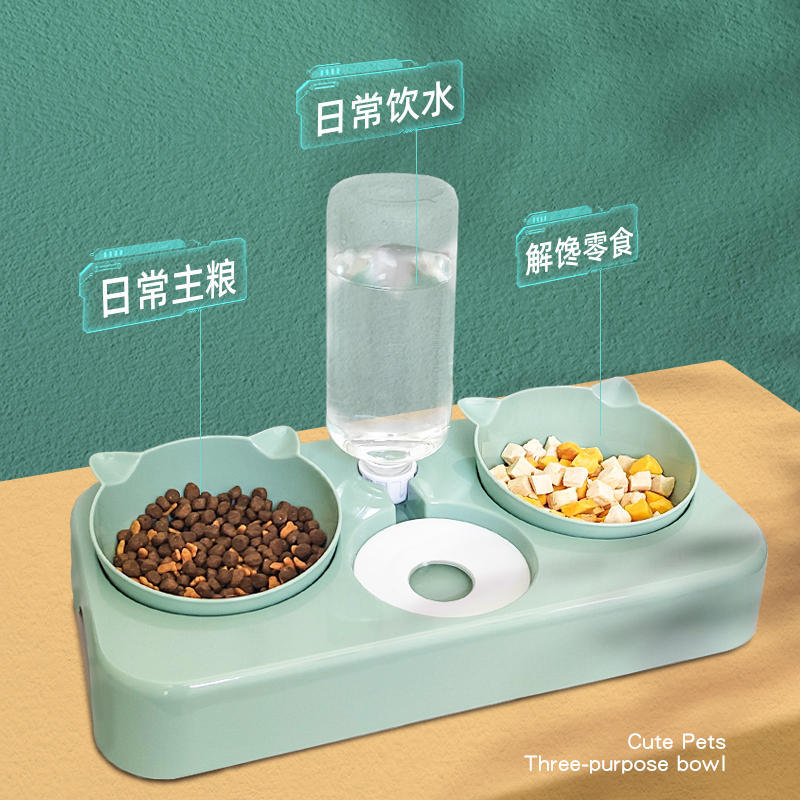 애완 동물 자동 마시는 그릇 세 그릇 플라스틱 개 그릇 고양이 더블 그릇 개 음식 그릇 고양이 식기 애완 동물 용품 도매