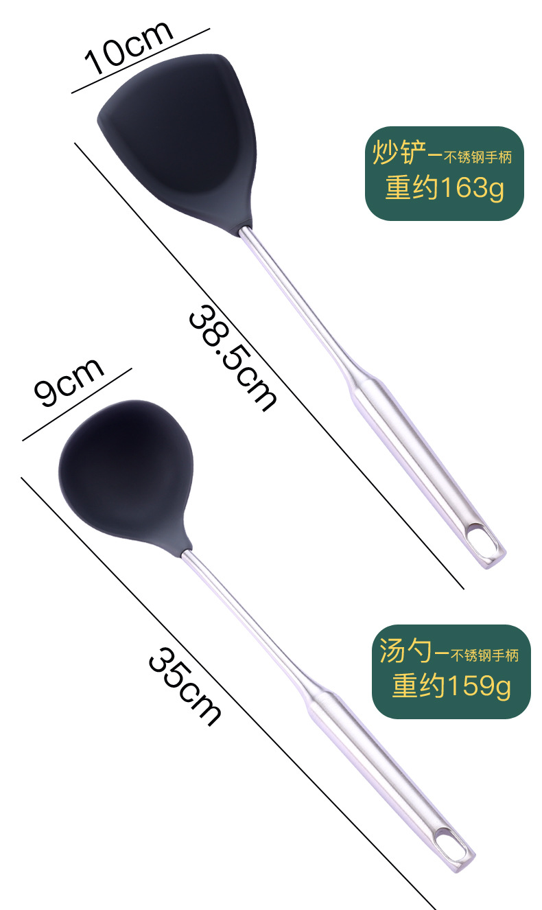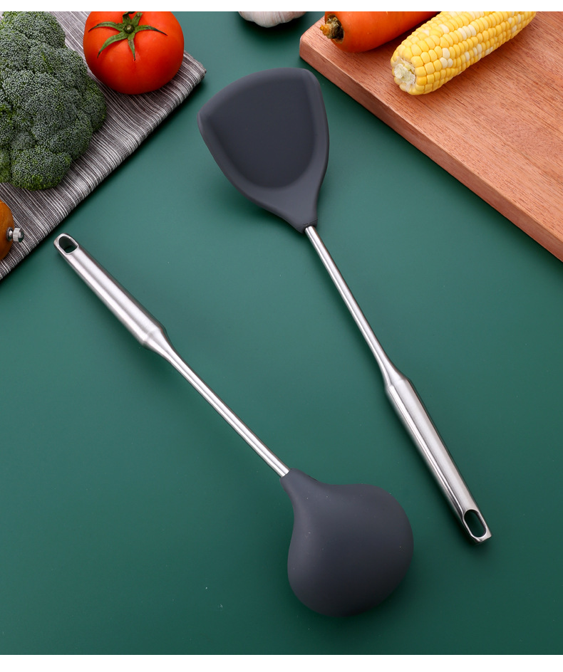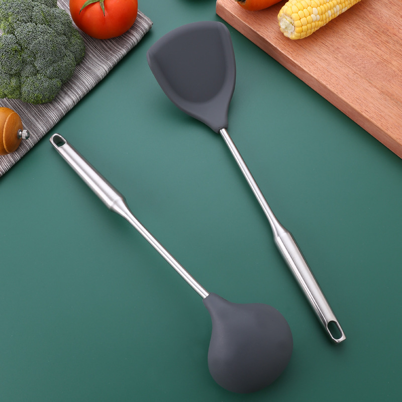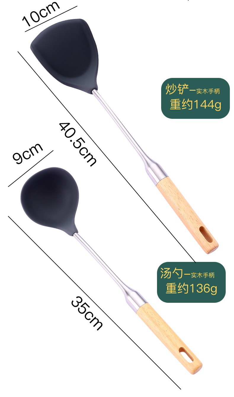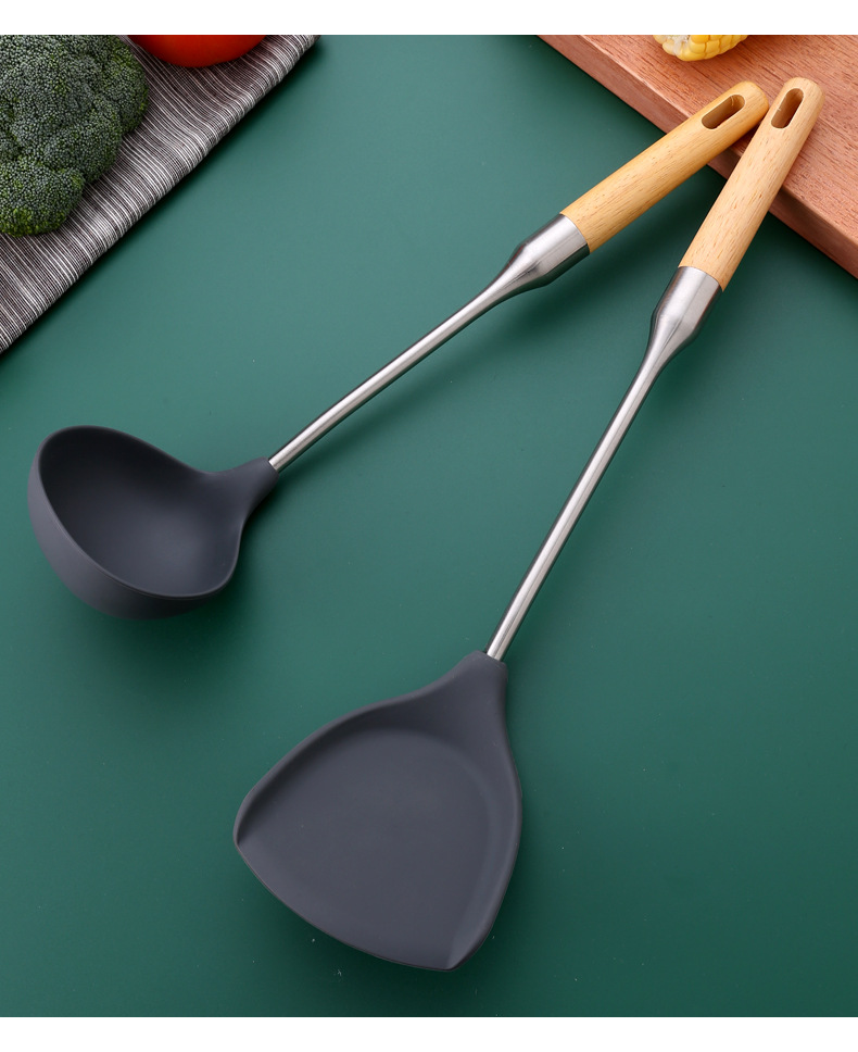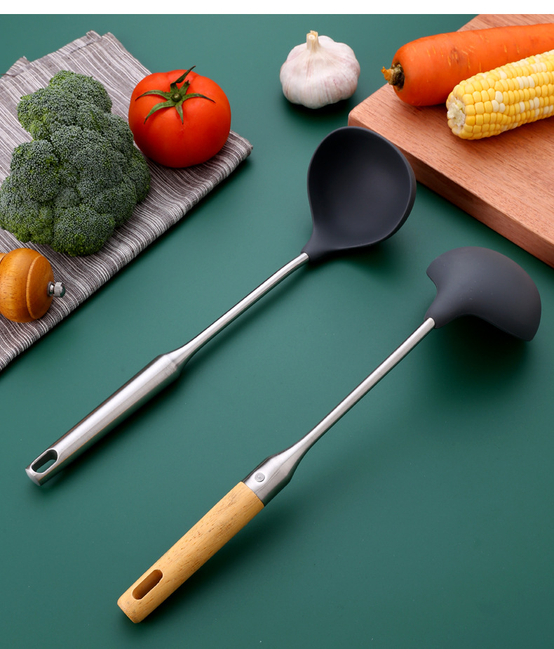 스테인레스 스틸 실리콘 냄비 삽 숟가락 주방 용품 세트 가정용 나무 손잡이 볶음 숟가락 숟가락 숟가락 숟가락 요리 4 종 세트 도매
