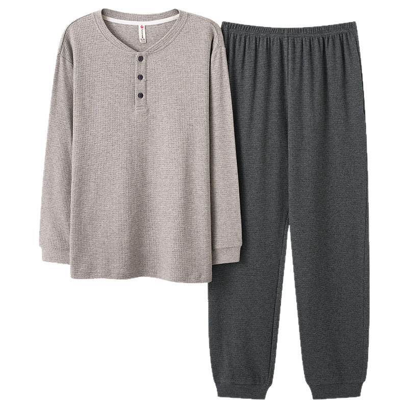 와플 잠옷 남자의 면 봄과 가을 새로운 스타일 긴 소매 젊은 남자의 가정 옷 세트 하이 엔드 웨어러블