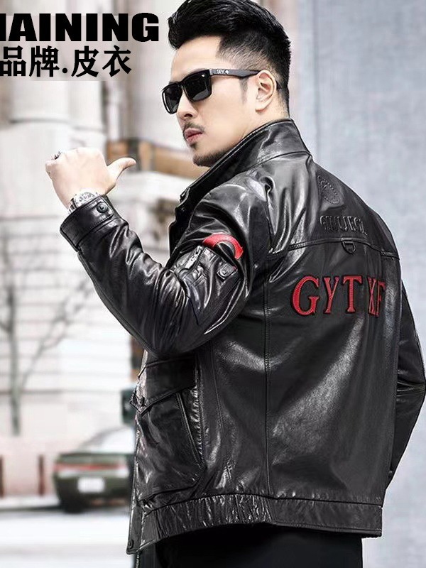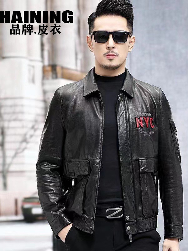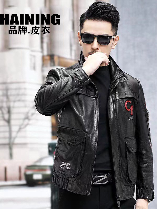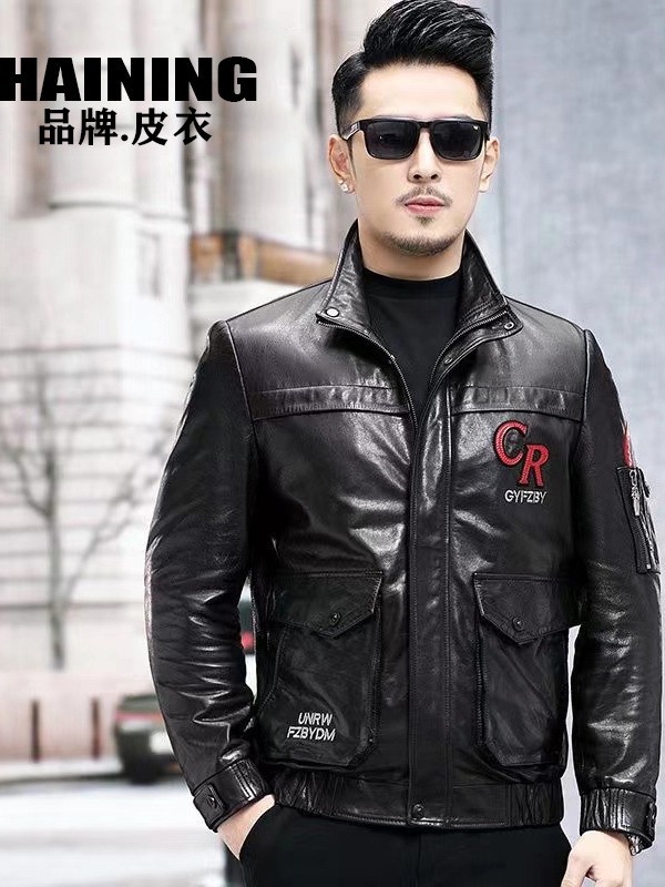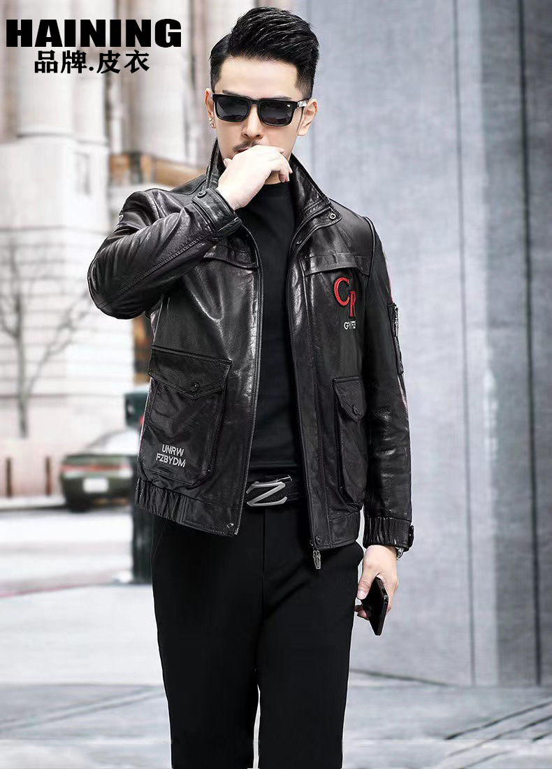 새로운 가을 의류 Haining 가죽 자켓 남성 슬림 오토바이 비행복 유행 잘 생긴 재킷 스탠드 칼라 캐주얼 재킷