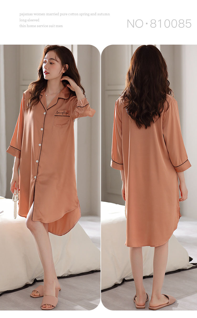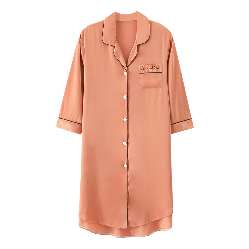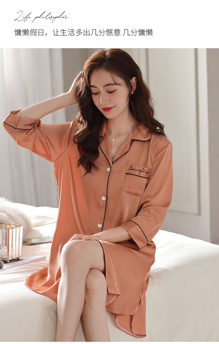 아이스 실크 잠옷 여성용 여름 얇은 느슨한 스트라이프 카디건 라펠 고급 실크 새틴 섹시한 반팔 잠옷