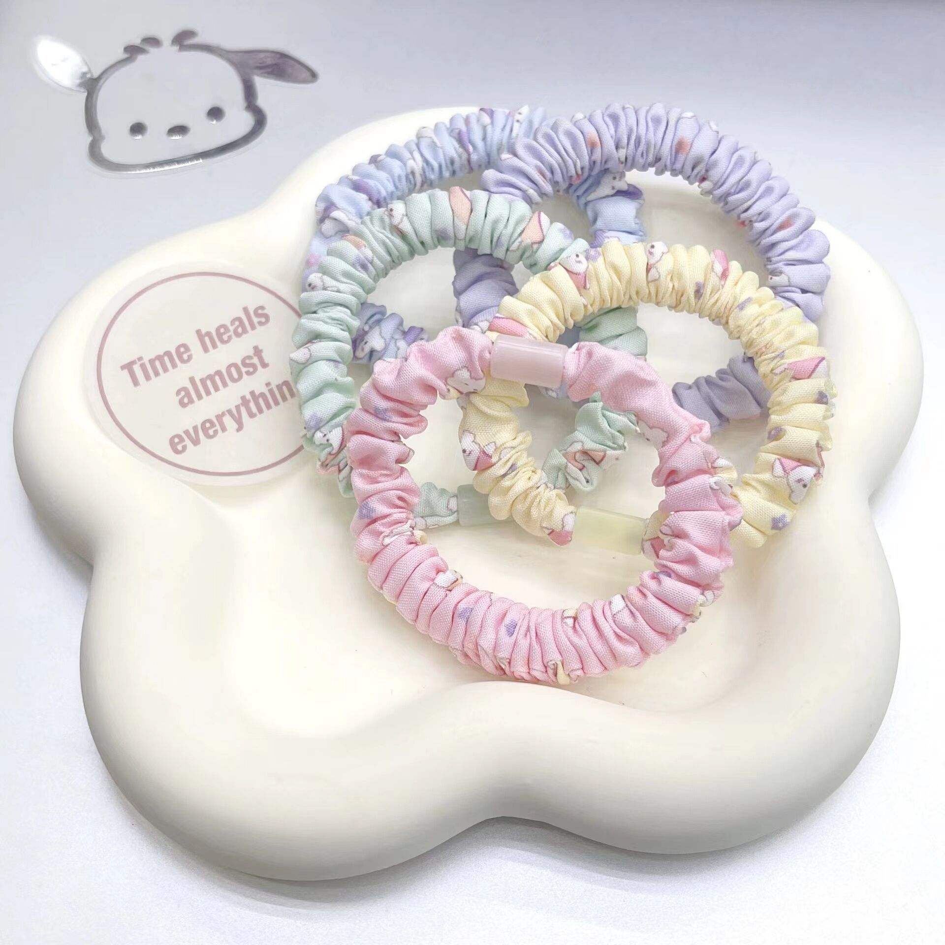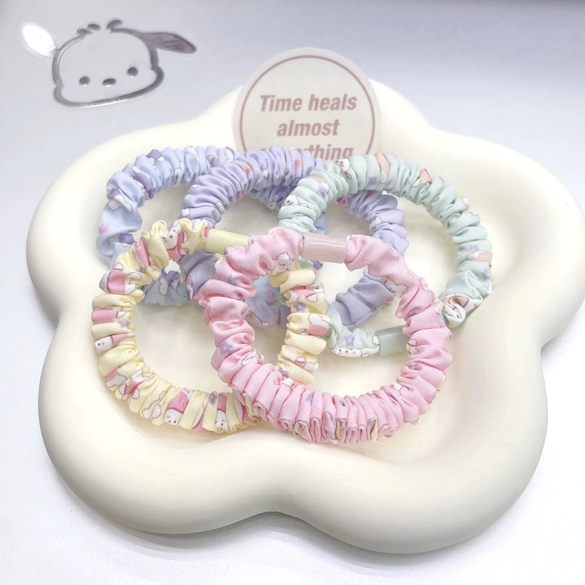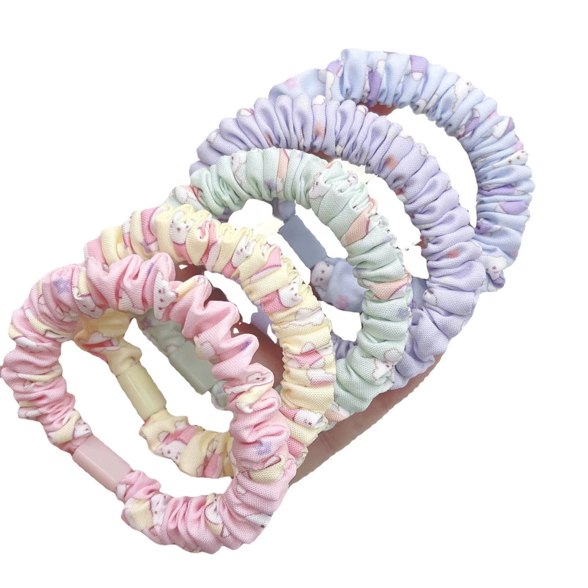 곰 프린트 소장 링 diy 귀여운 캔디 컬러 하이 스트레치 하이 포니테일 헤드 로프 수제 소재 심플 머리 장식