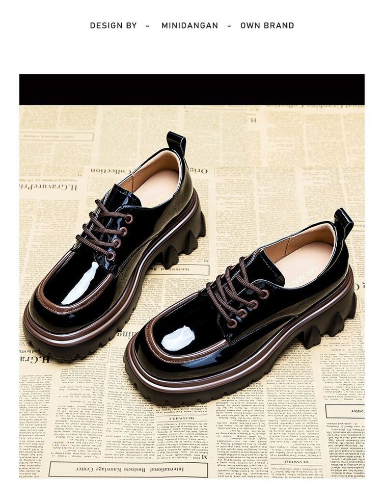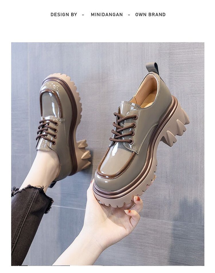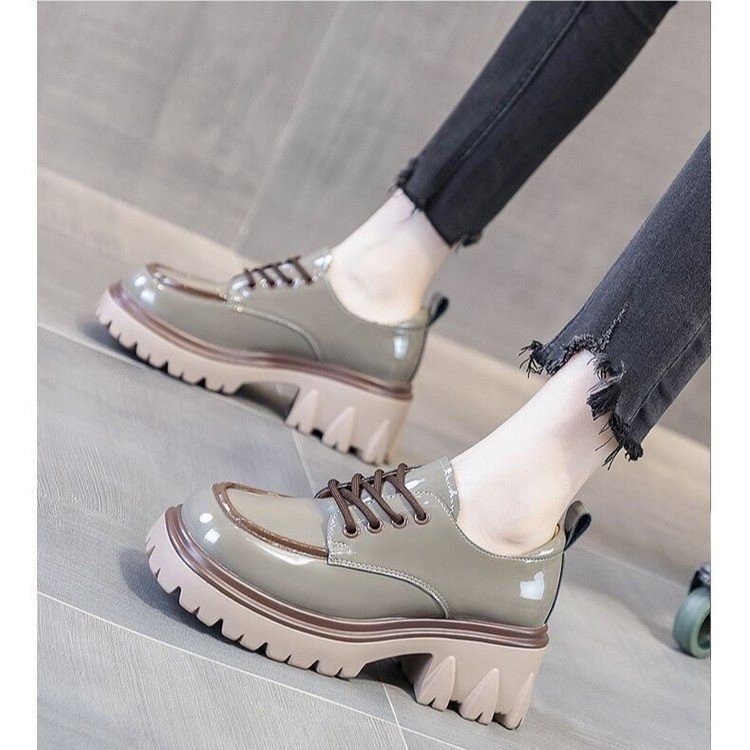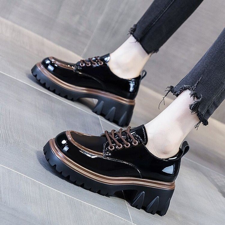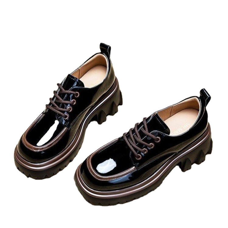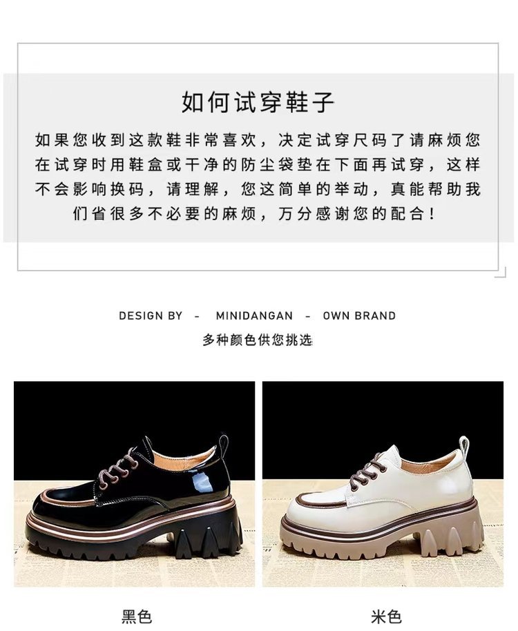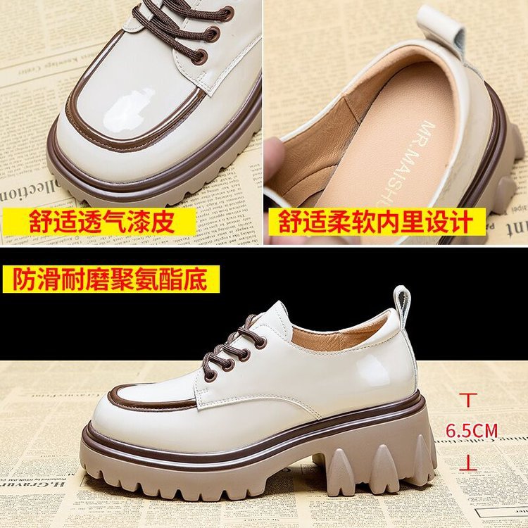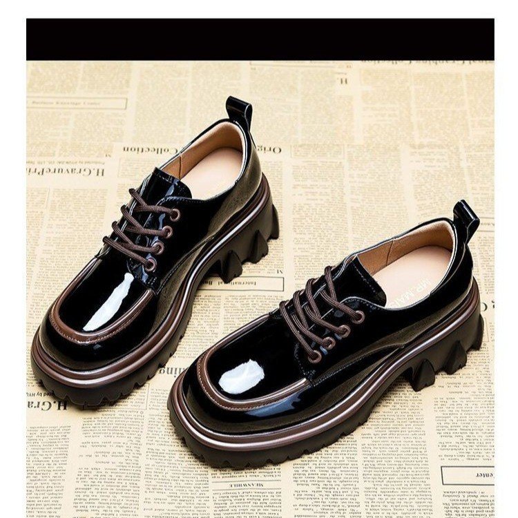 라운드 발가락 작은 가죽 신발 여성의 영국 스타일 2023 새로운 가을 색상 매칭 패션 두꺼운 발 뒤꿈치 두꺼운 바닥 높이 로퍼 단층 신발