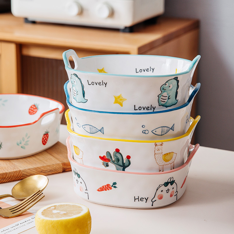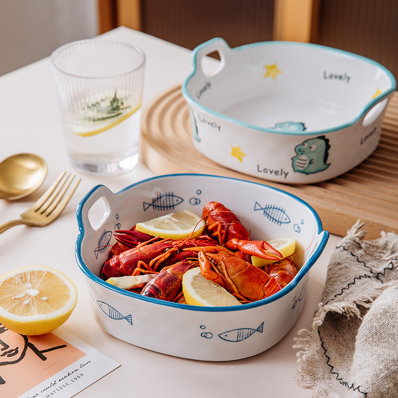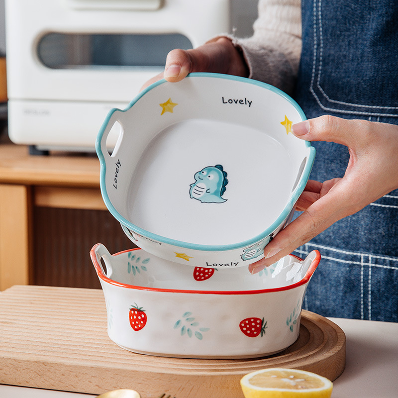 에어프라이어 전용 그릇, 오븐용기, 양손잡이 세라믹 전자레인지용 접시, 귀여운 세라믹 식기