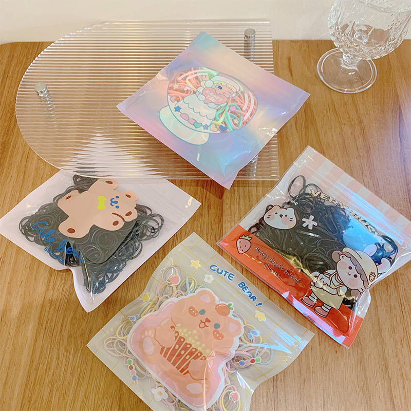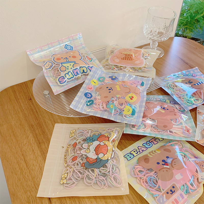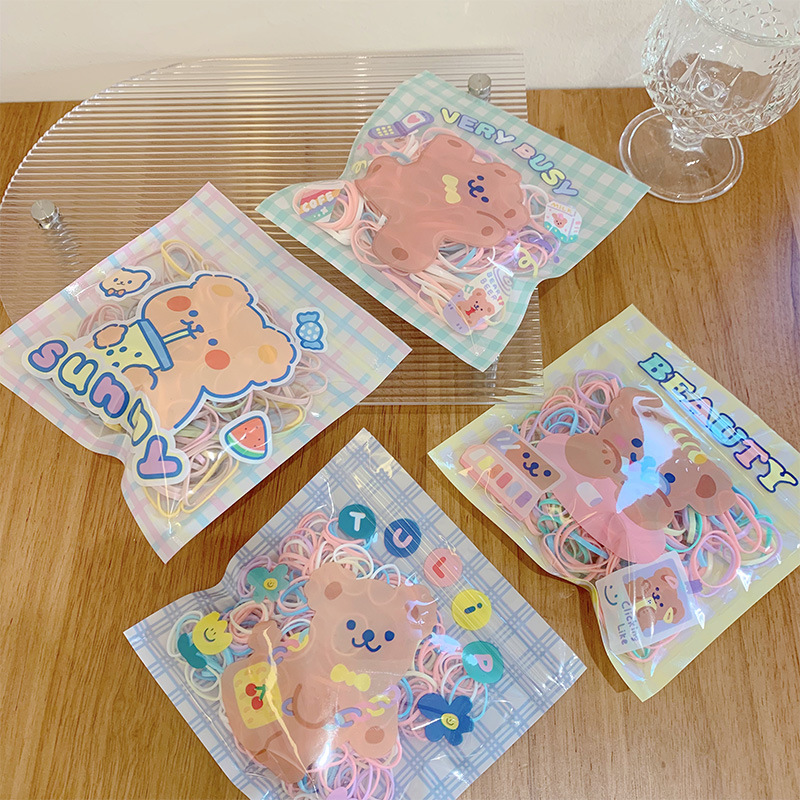 두껍고 컬러풀한 포장된 머리끈, 머리카락에 손상을 주지 않는 고탄성 아기 머리끈, 여성용 일회용 고무줄, 어린이 헤어 액세서리