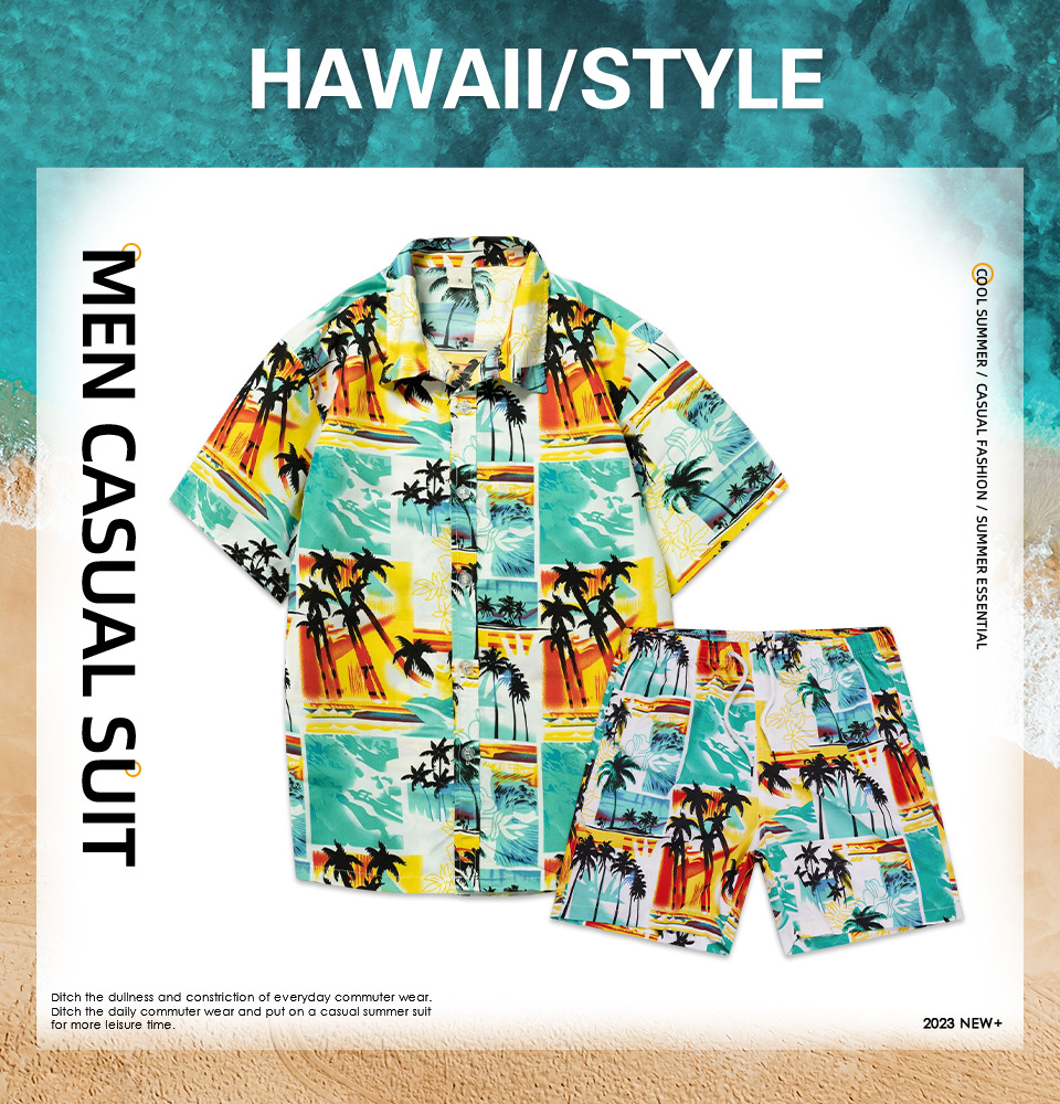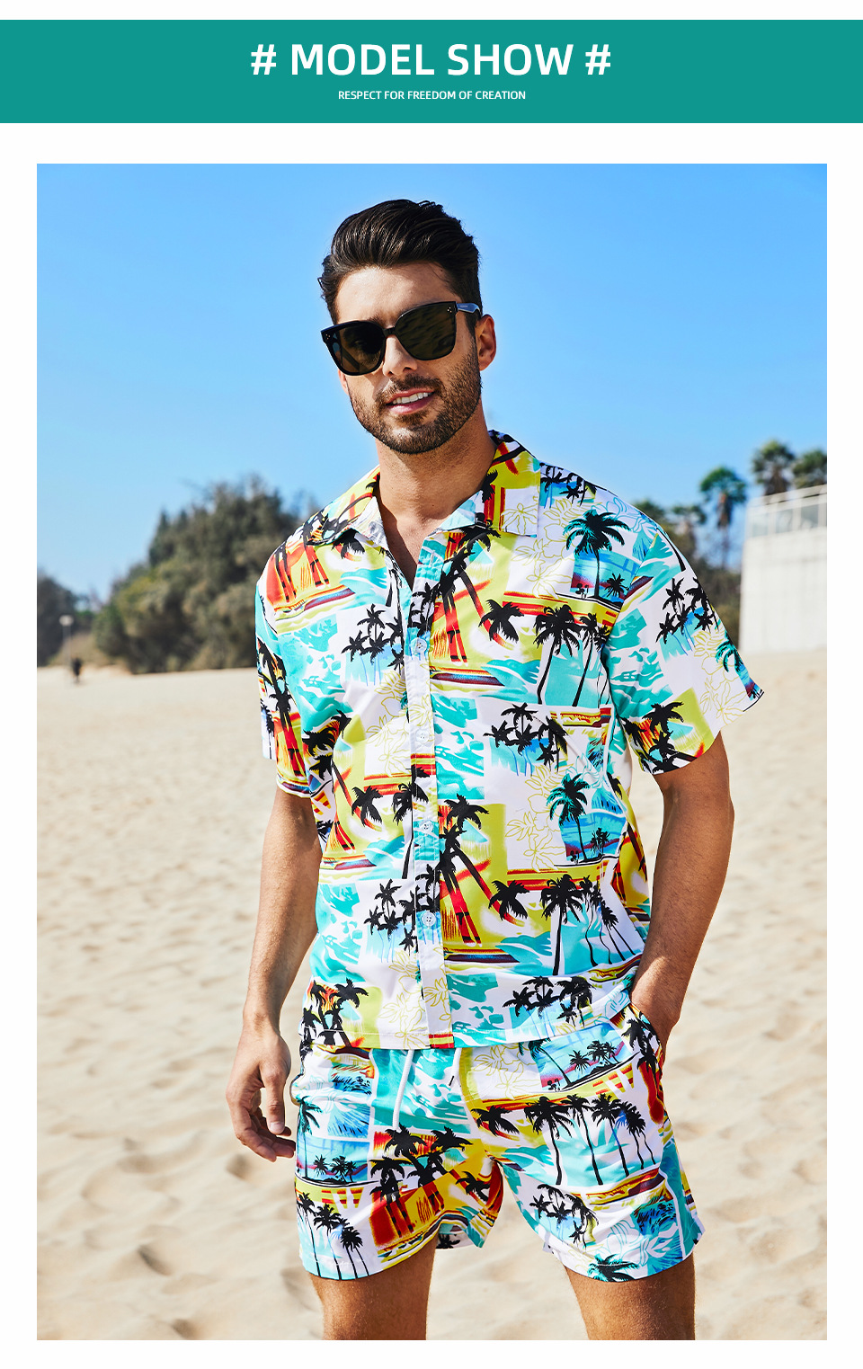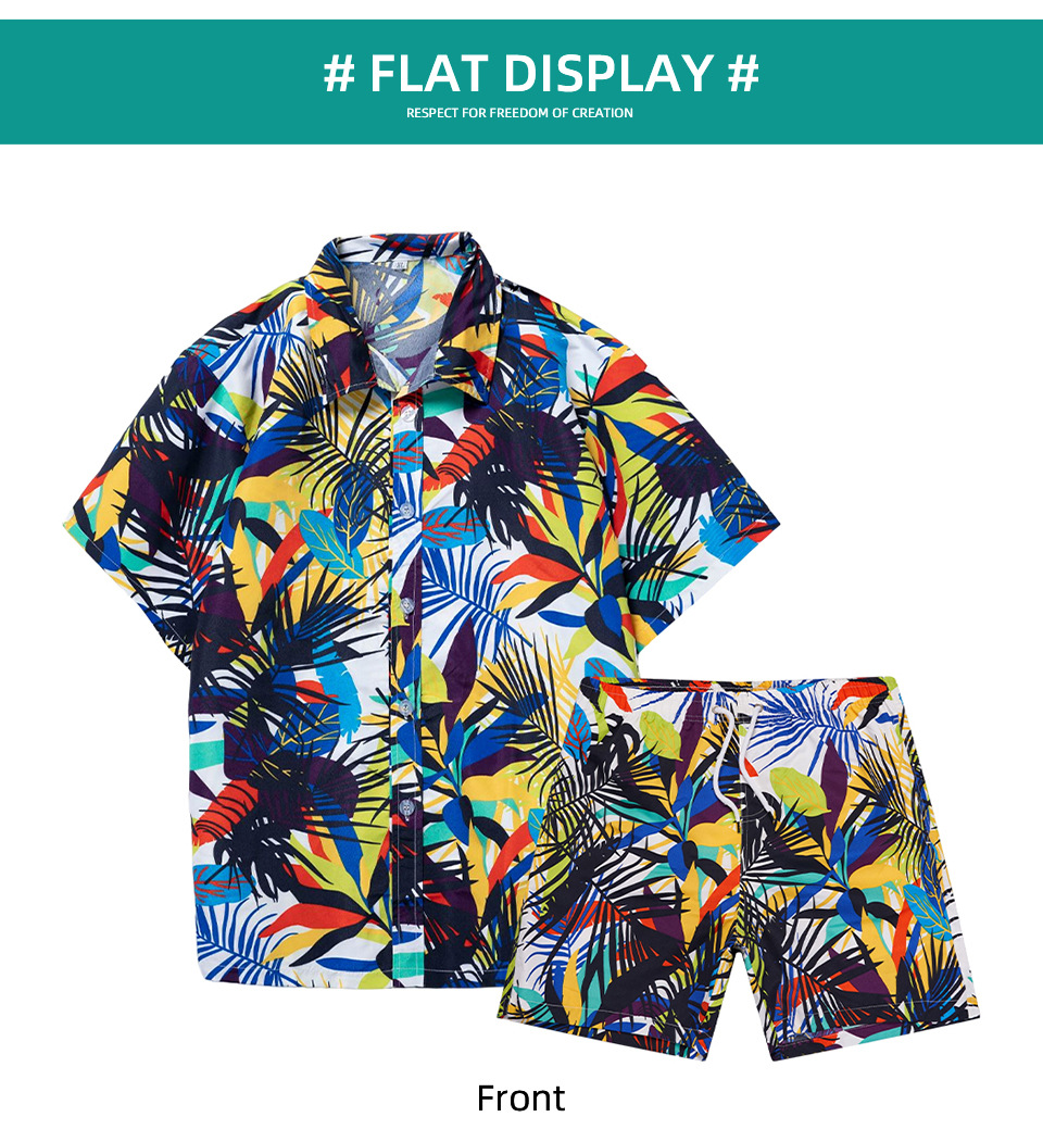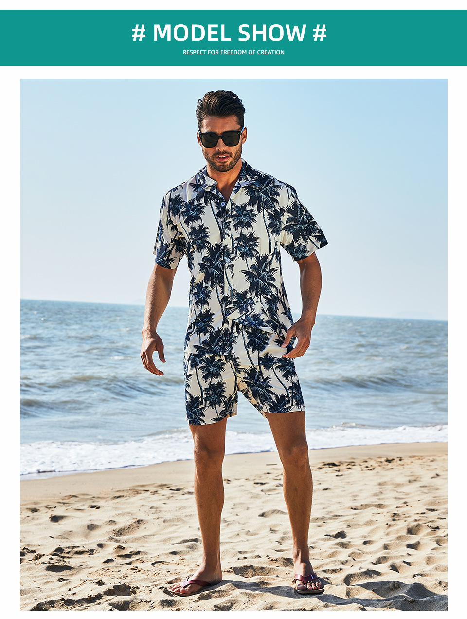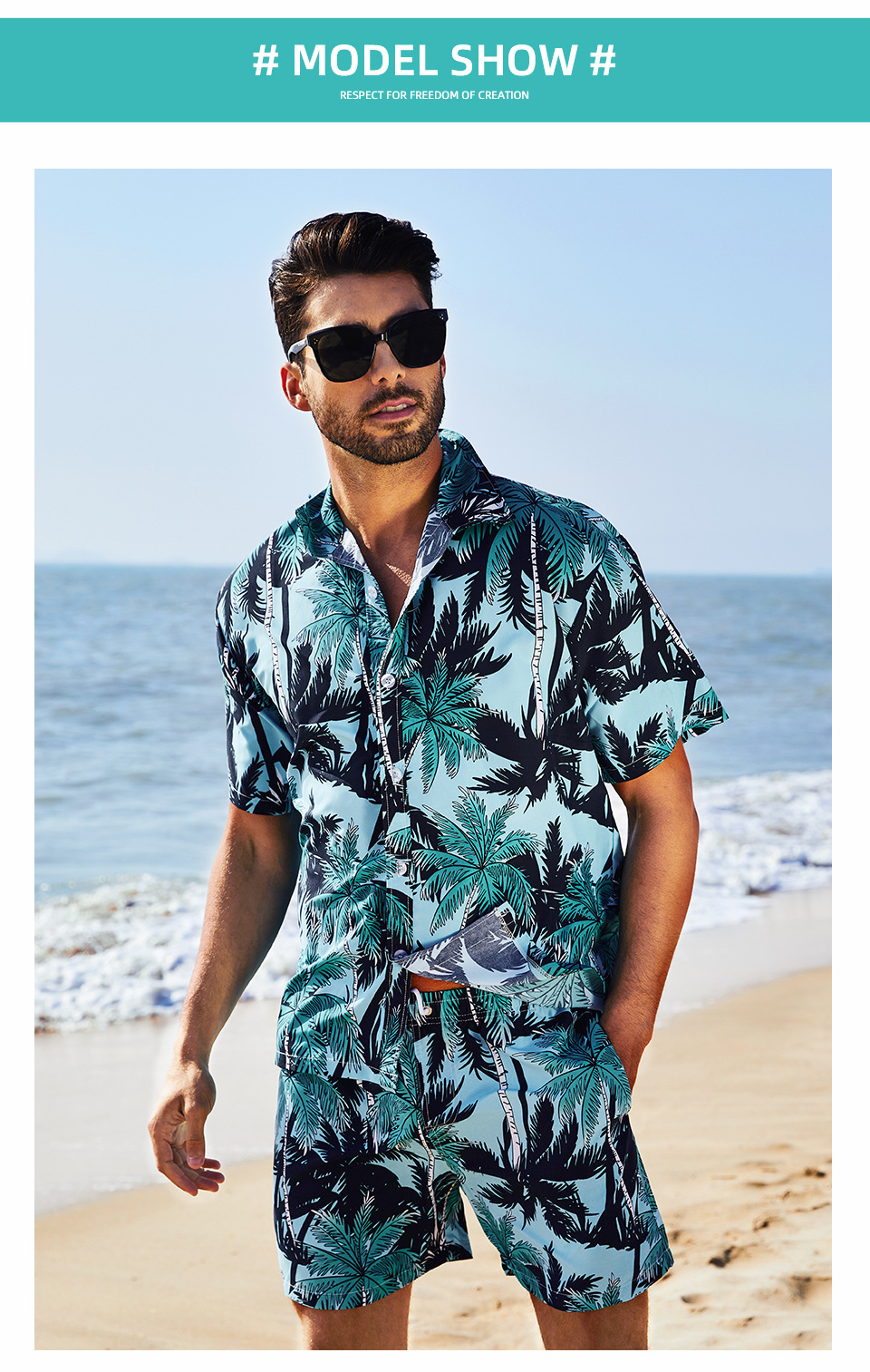 남자의 셔츠 캐주얼 비치 세트 해변 휴가 스타일 스포츠 느슨한 반팔 셔츠 비치 바지 인쇄 반팔