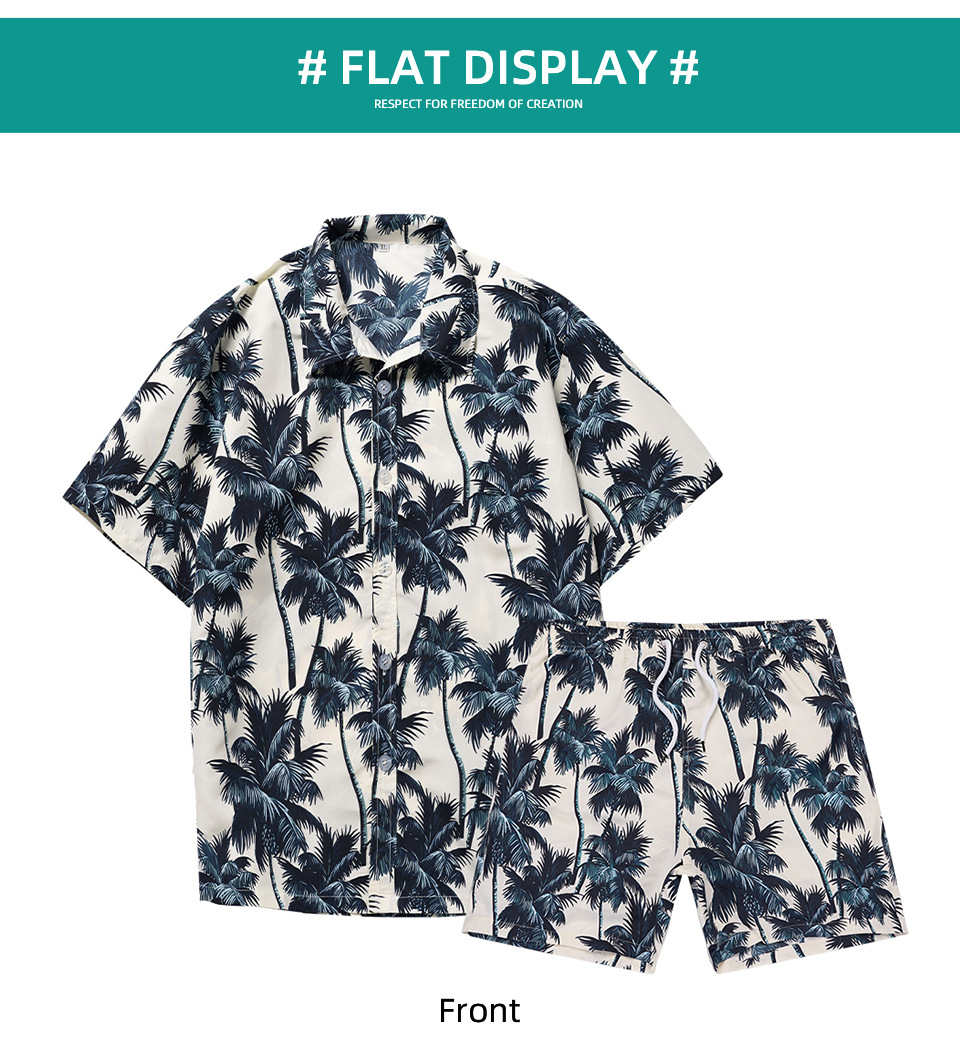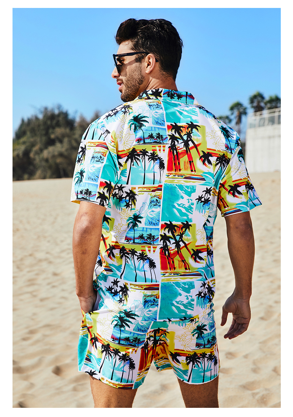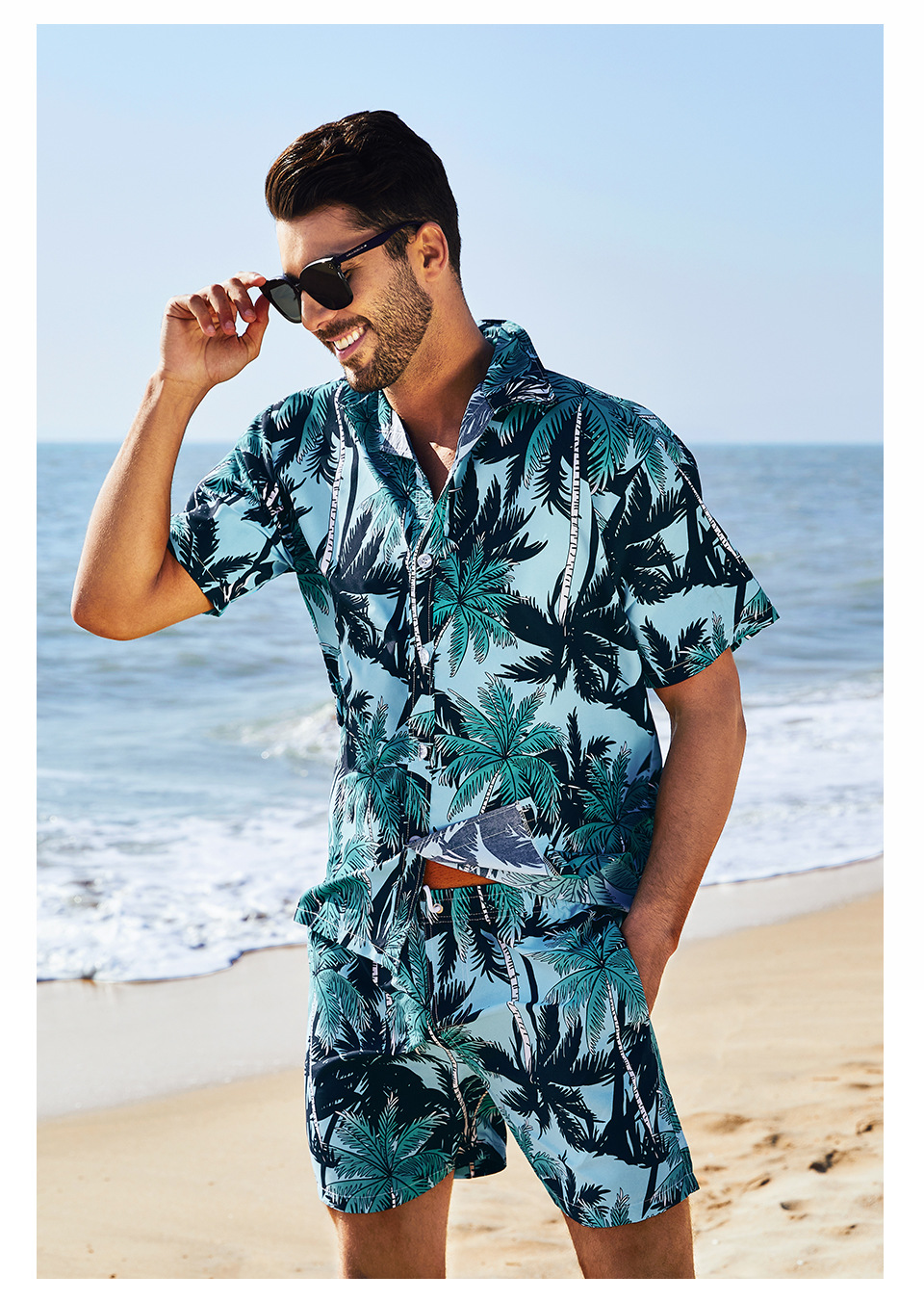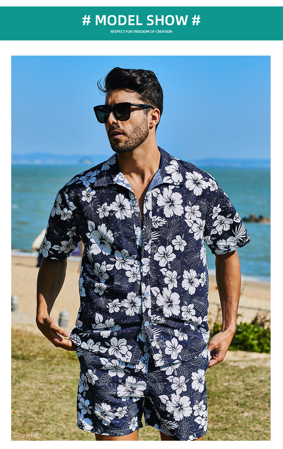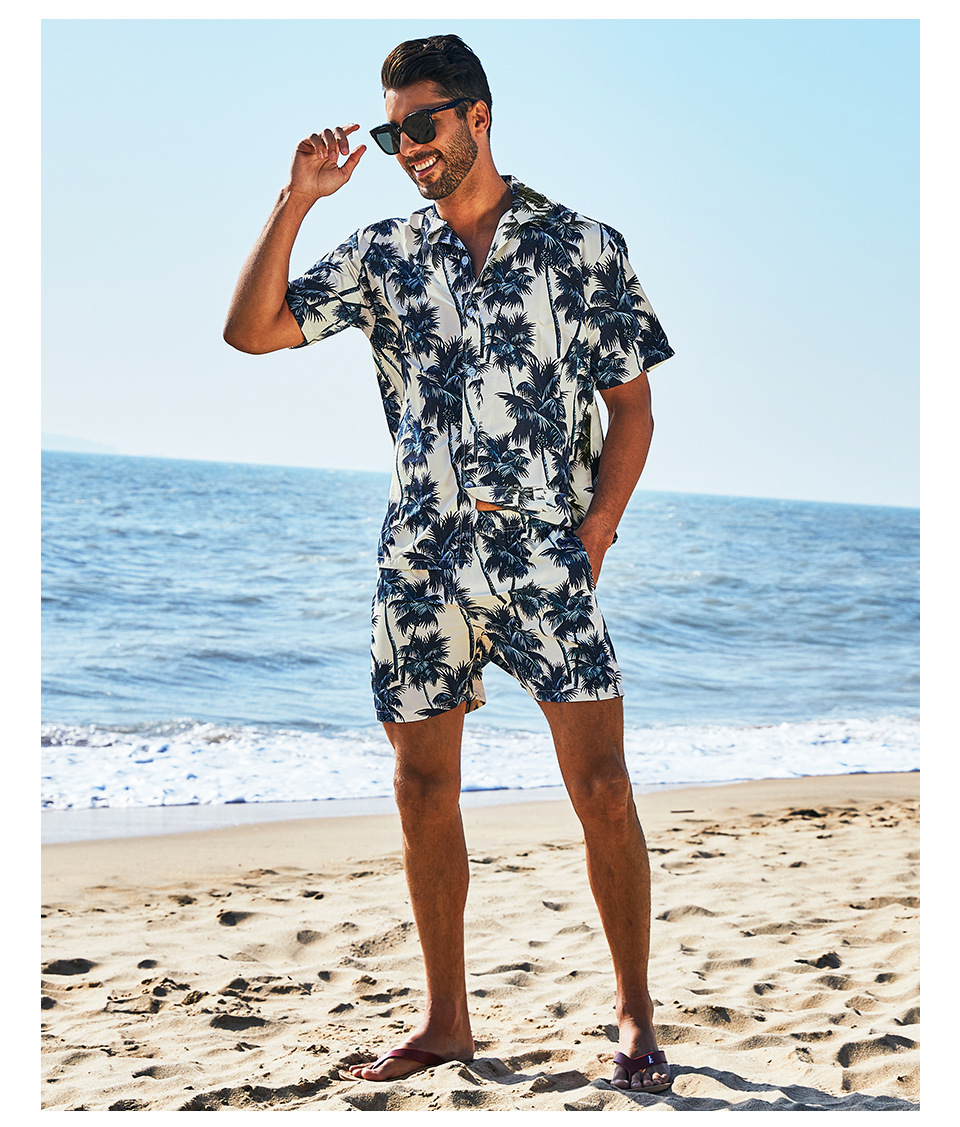 남자의 셔츠 캐주얼 비치 세트 해변 휴가 스타일 스포츠 느슨한 반팔 셔츠 비치 바지 인쇄 반팔