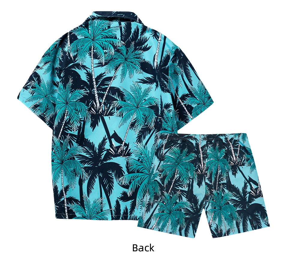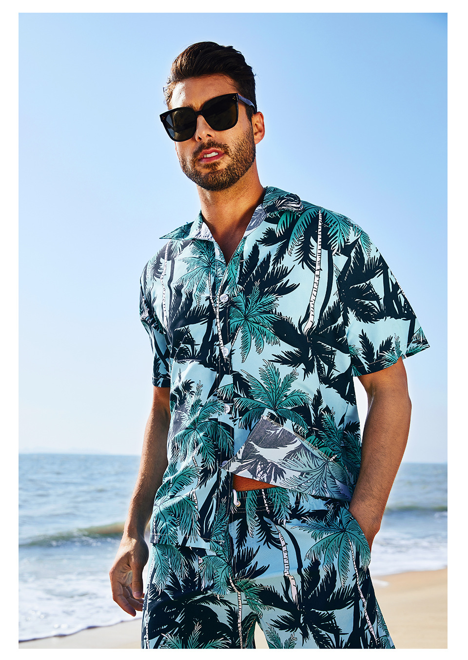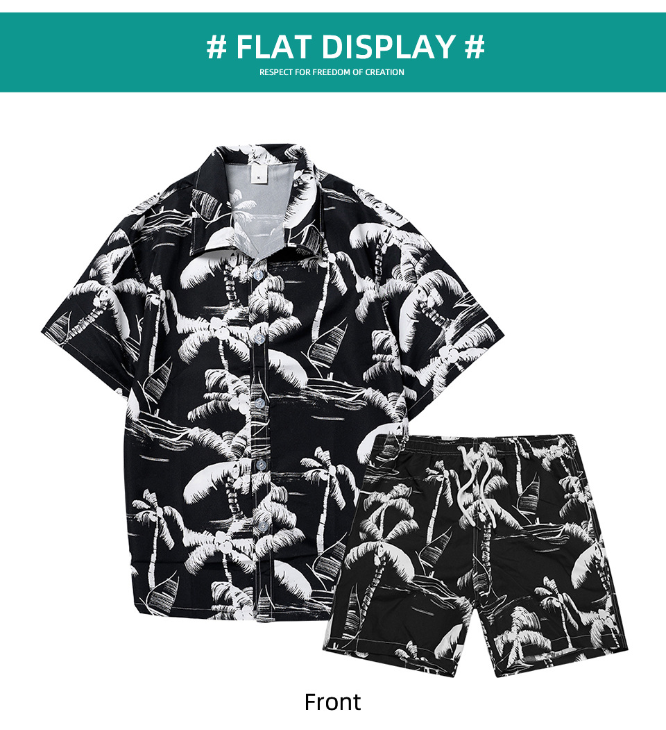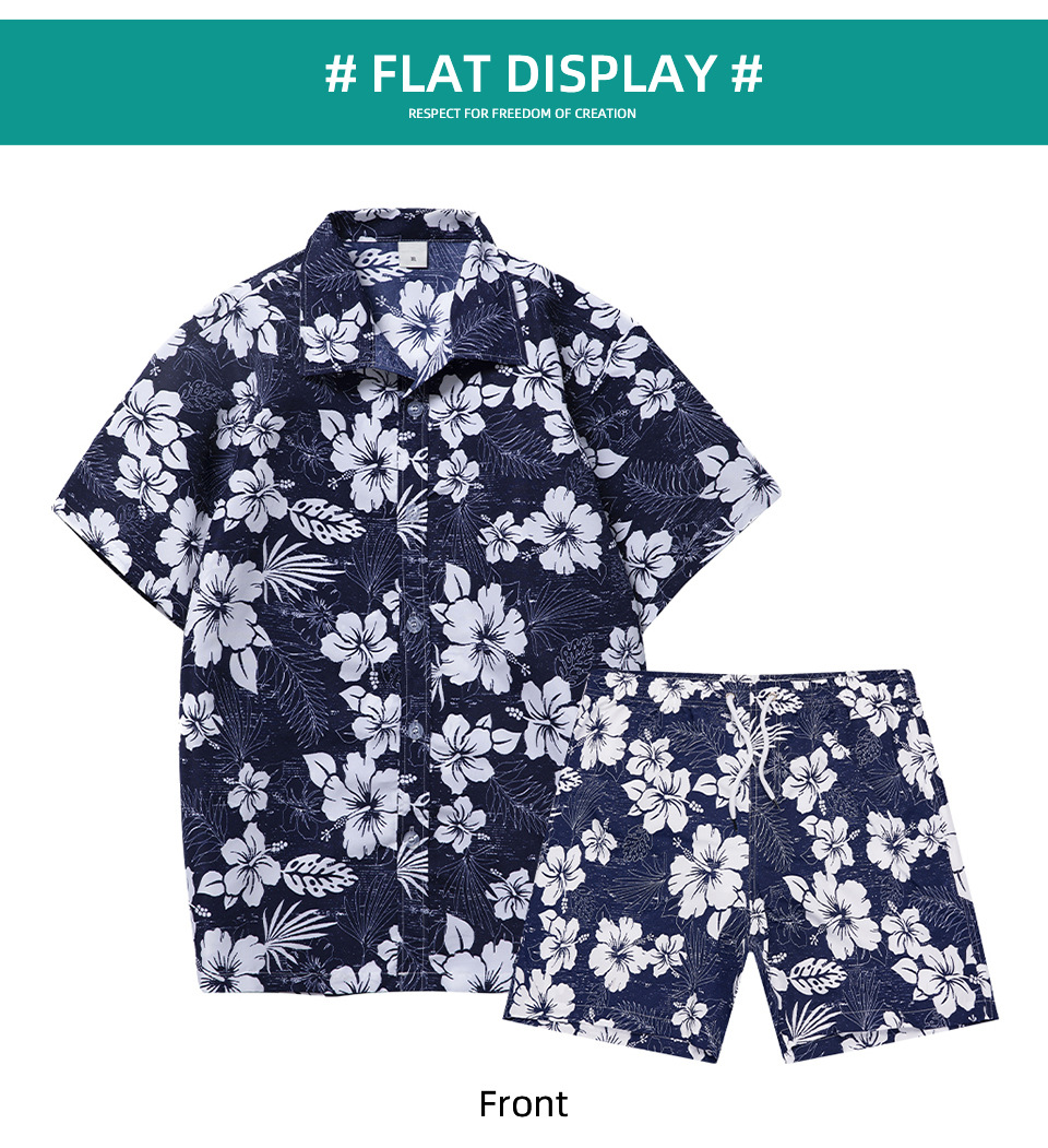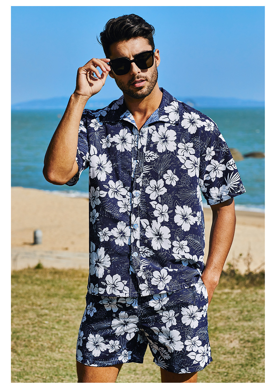 남자의 셔츠 캐주얼 비치 세트 해변 휴가 스타일 스포츠 느슨한 반팔 셔츠 비치 바지 인쇄 반팔