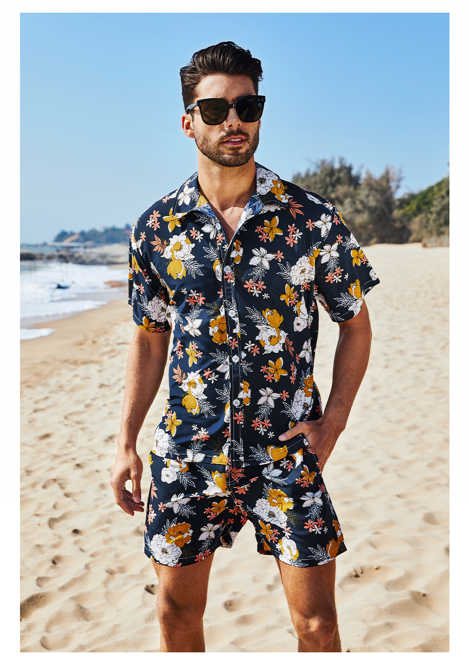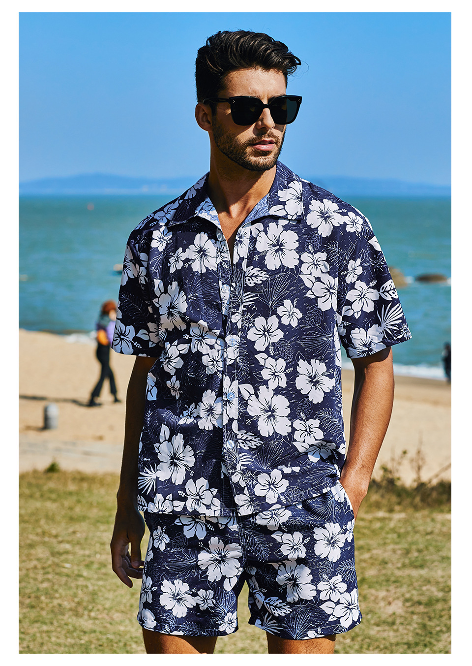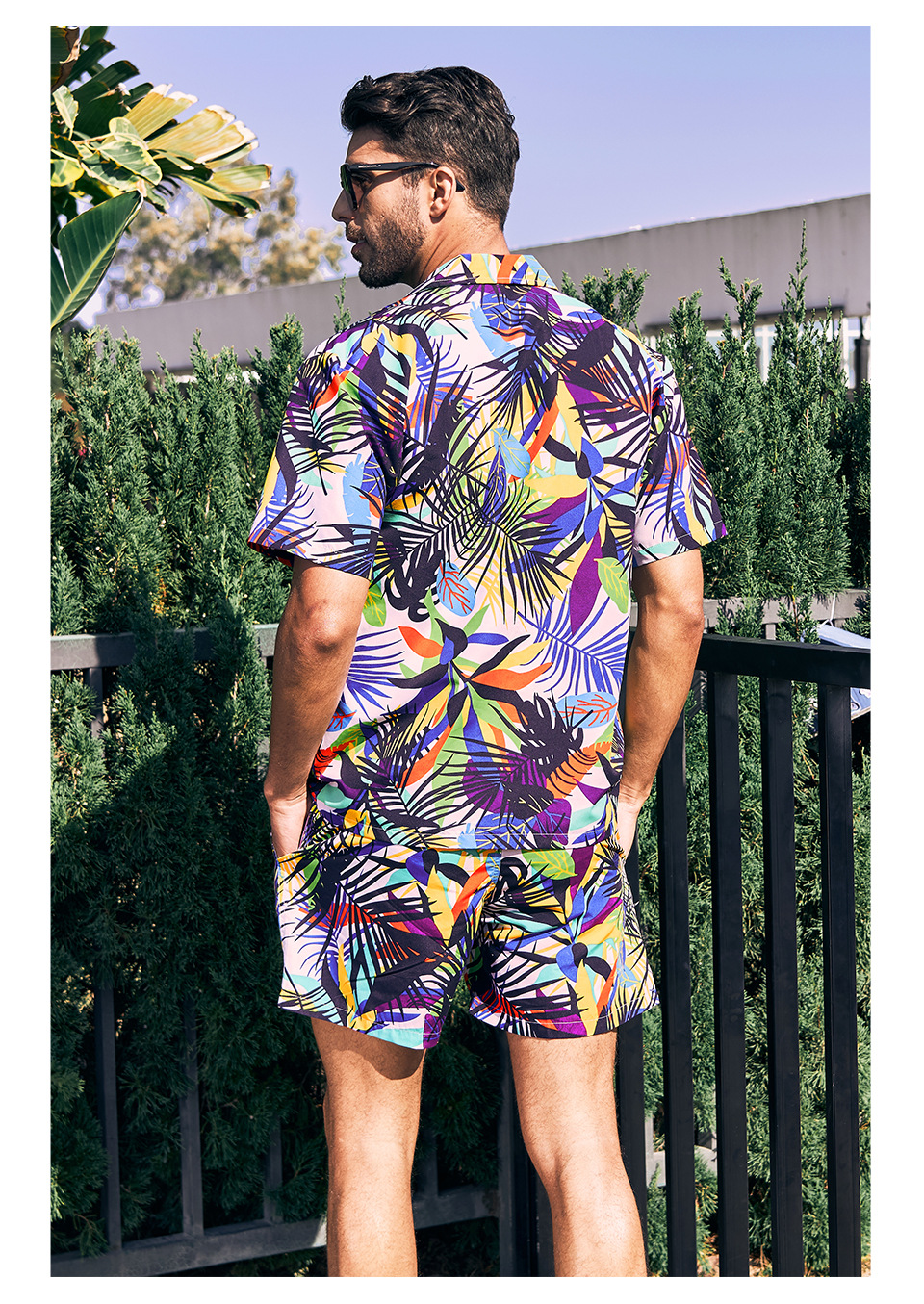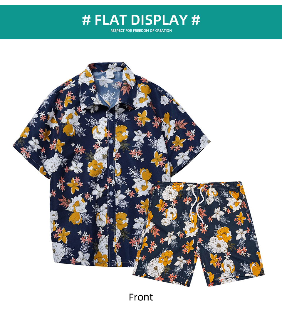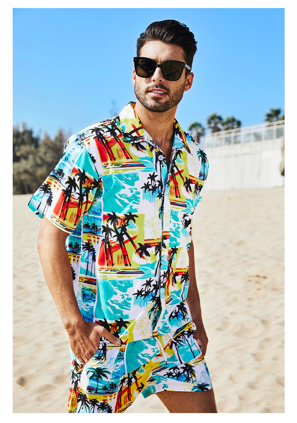남자의 셔츠 캐주얼 비치 세트 해변 휴가 스타일 스포츠 느슨한 반팔 셔츠 비치 바지 인쇄 반팔