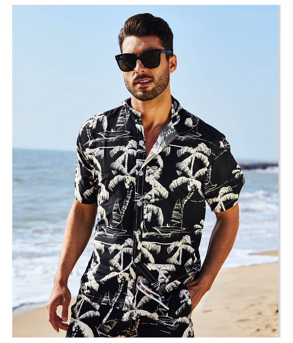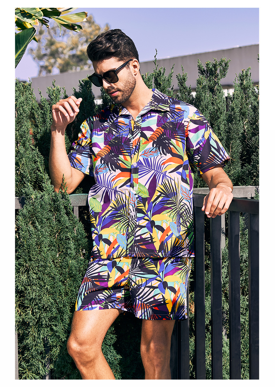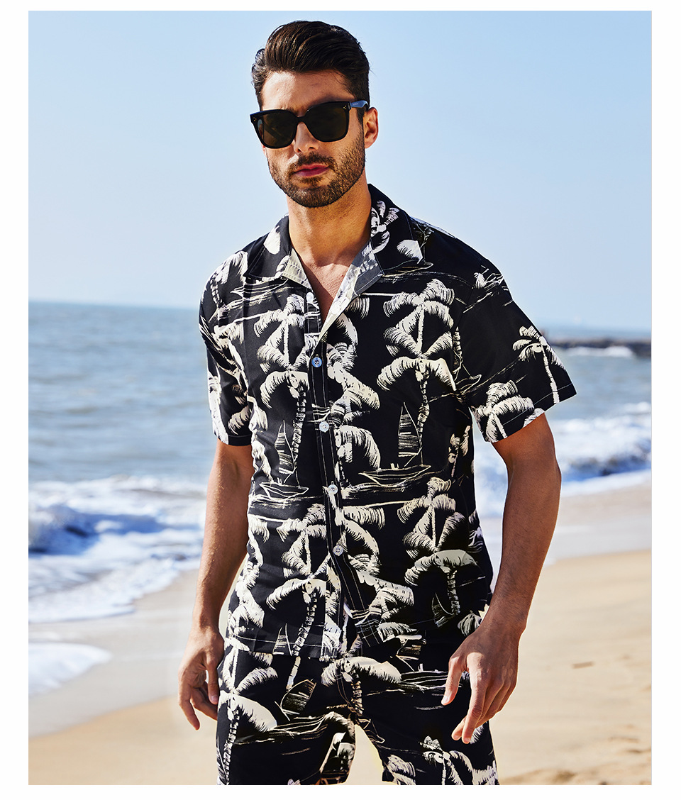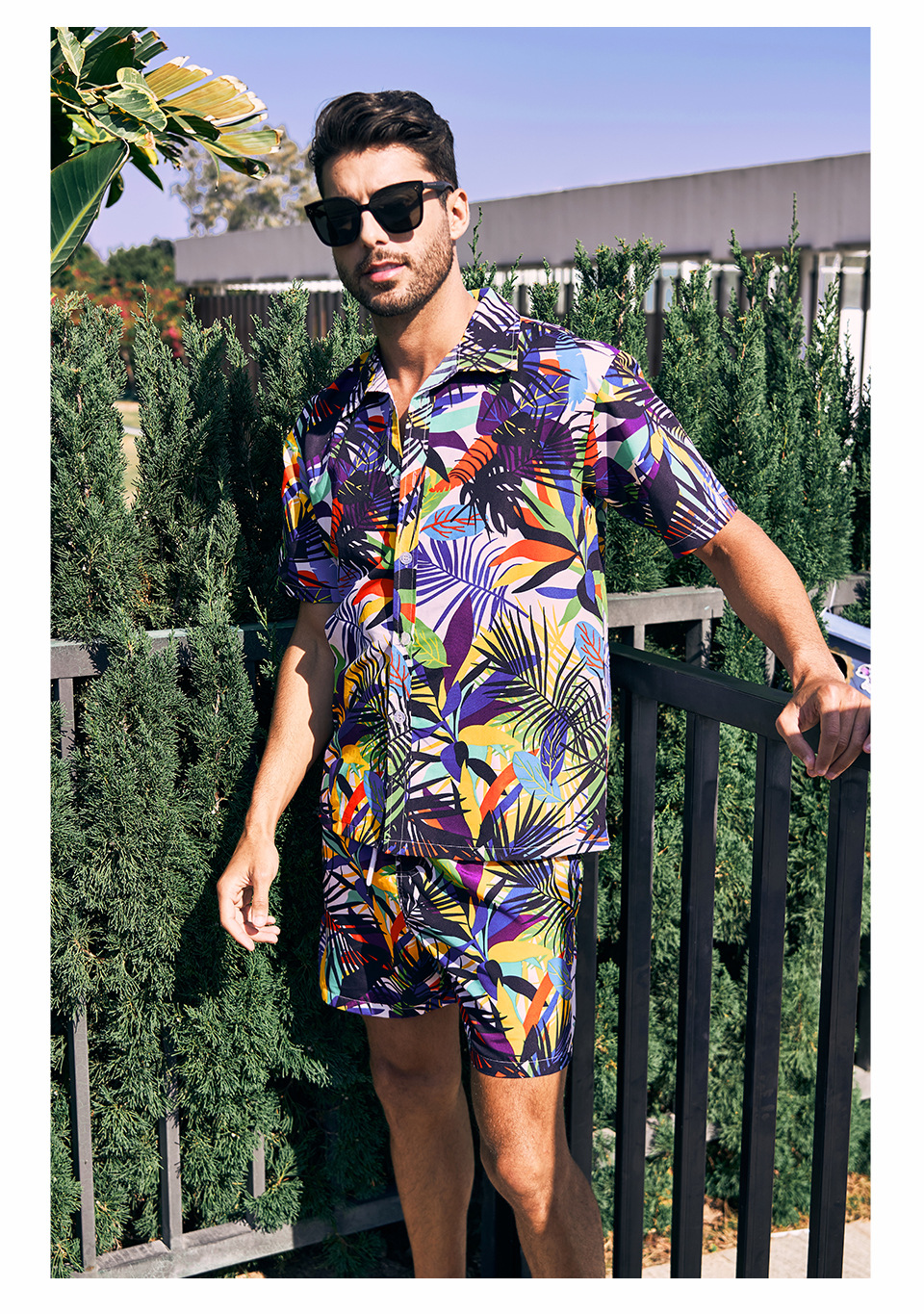 남자의 셔츠 캐주얼 비치 세트 해변 휴가 스타일 스포츠 느슨한 반팔 셔츠 비치 바지 인쇄 반팔