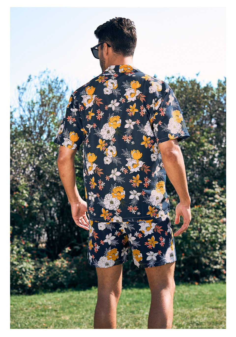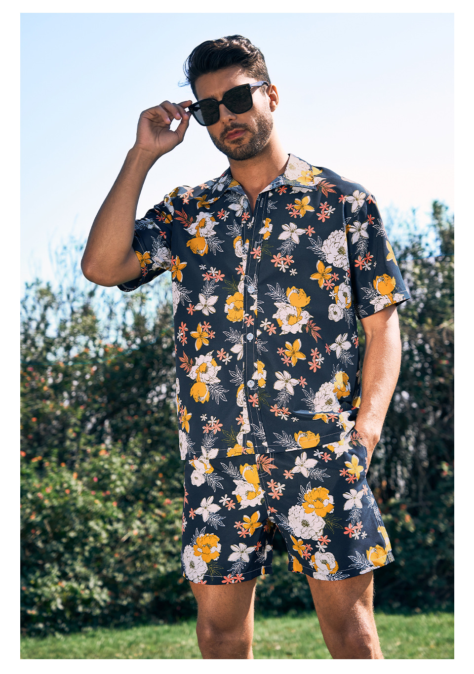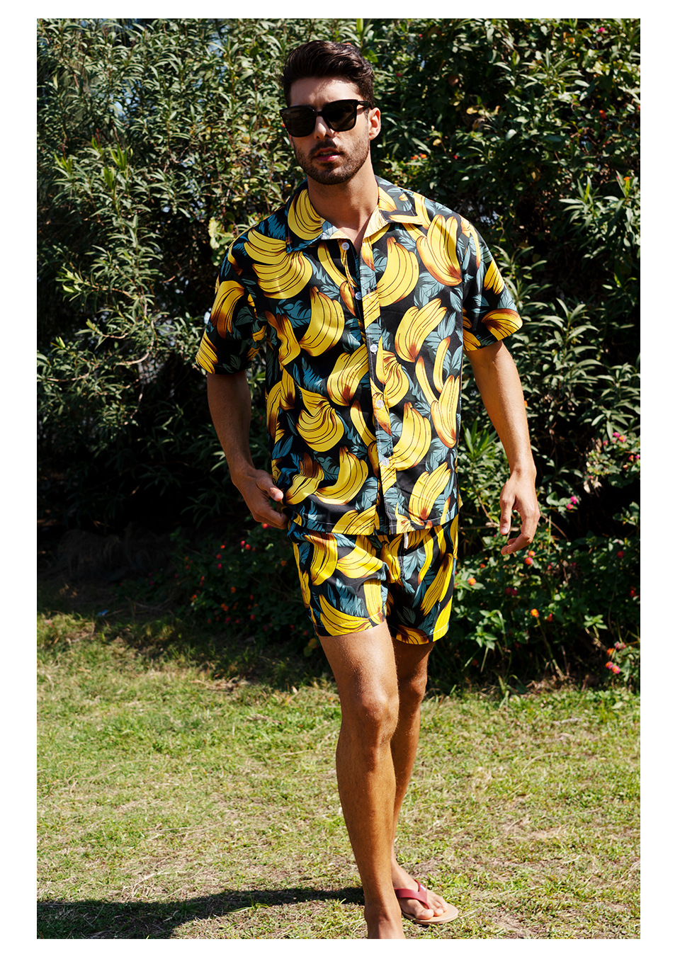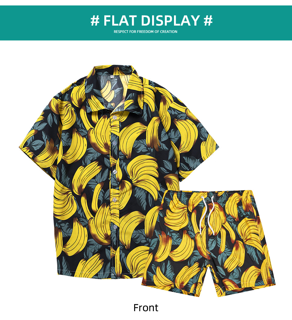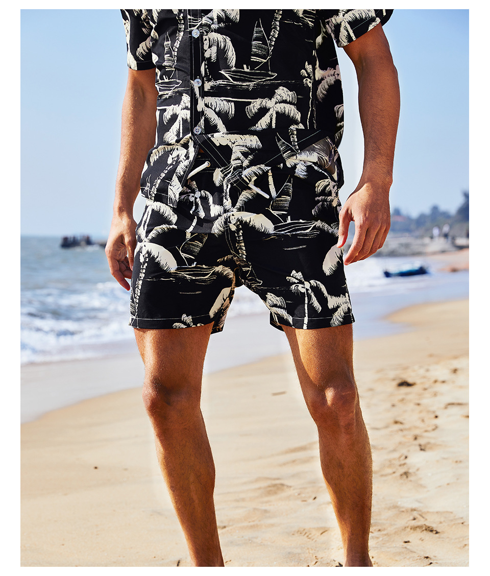 남자의 셔츠 캐주얼 비치 세트 해변 휴가 스타일 스포츠 느슨한 반팔 셔츠 비치 바지 인쇄 반팔