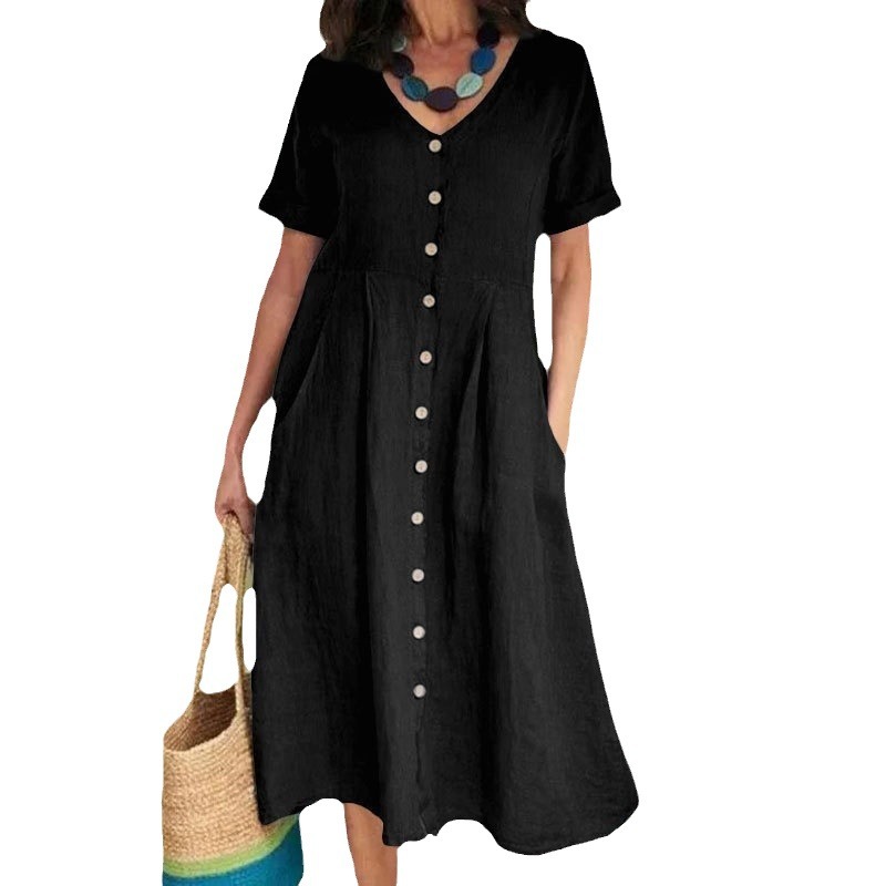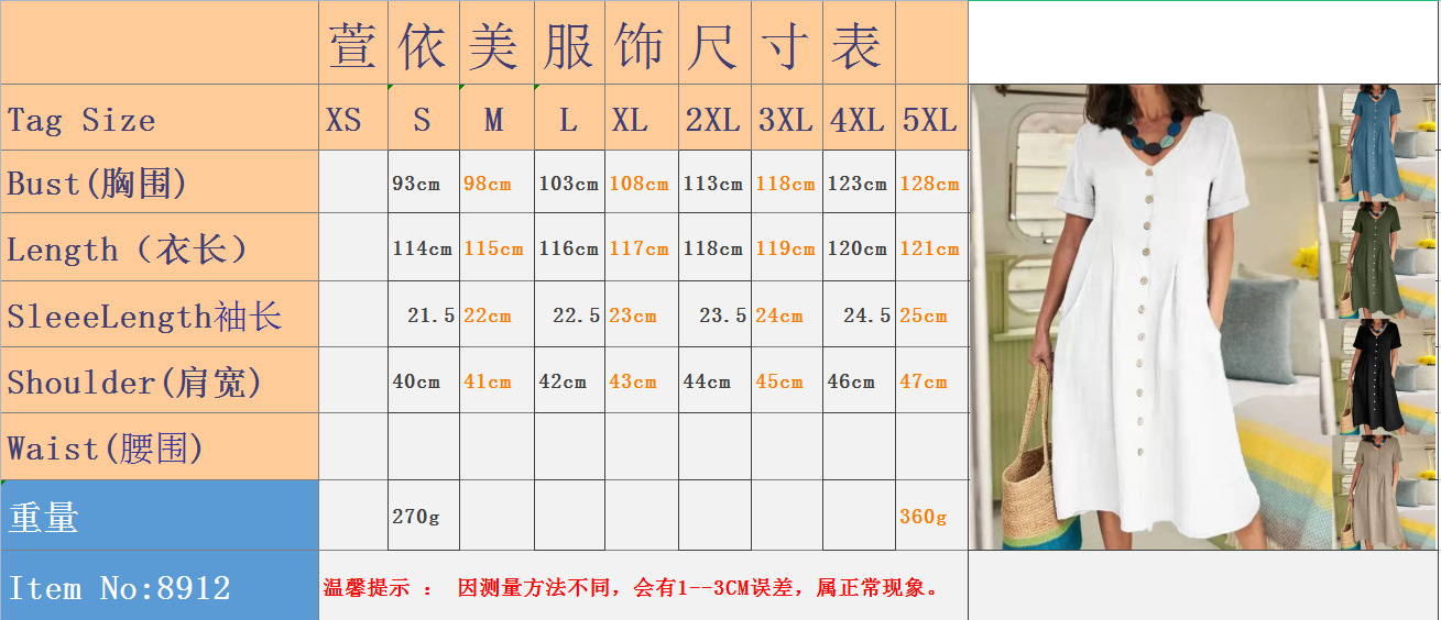 2026 봄 여름 유럽 및 미국 해외직구 아마존 독립 홈페이지 eBay 신상품 단색 루즈핏 하이웨이스트 면마 원피스