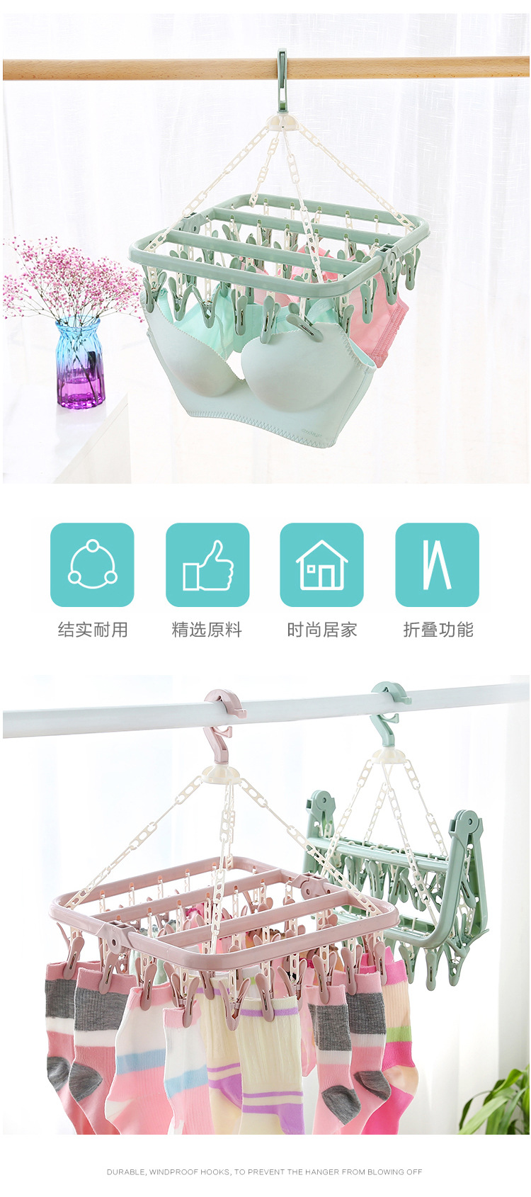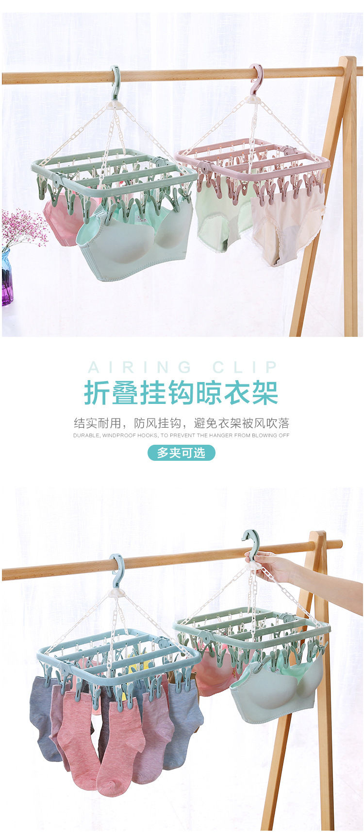 성인 방풍 옷걸이 플라스틱 32 클립 옷걸이 어린이 양말 랙 아기 옷걸이 가정용 건조 선반