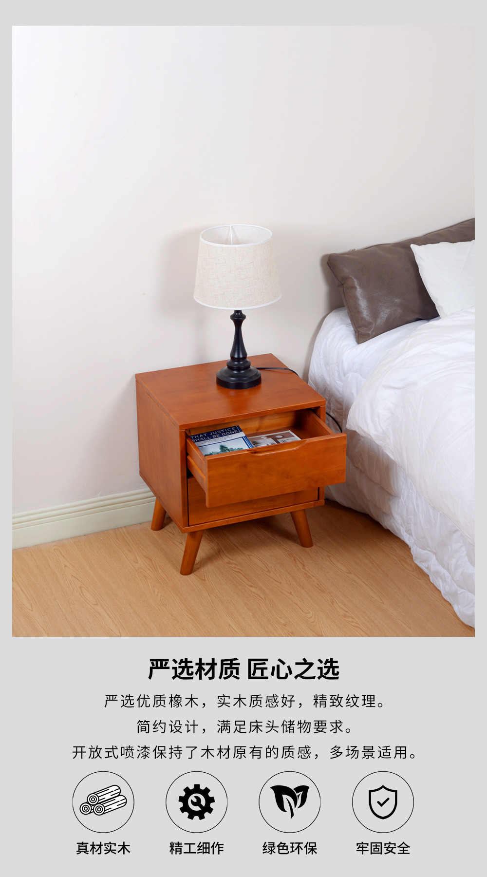 전체 단단한 나무 침대 옆 탁자 현대 간단한 고무 나무 침대 옆 작은 캐비닛 북유럽 침실 로그 보관 캐비닛 보관 캐비닛