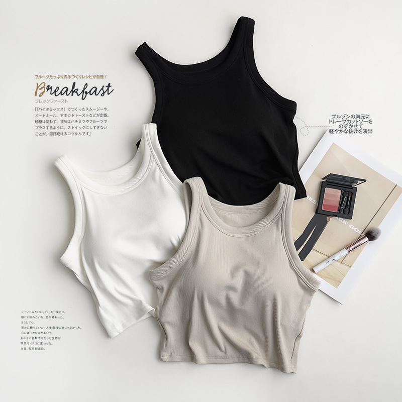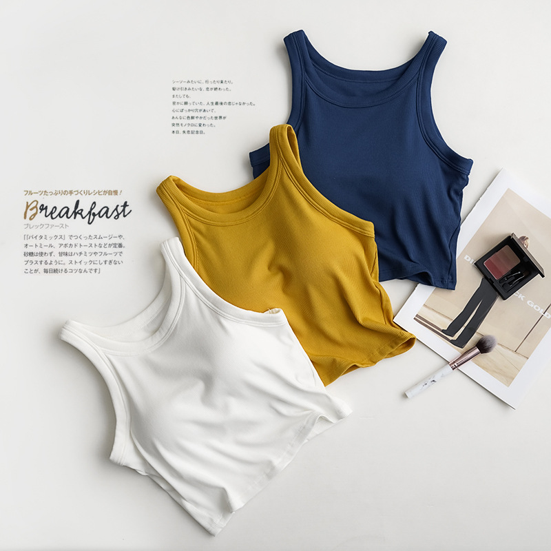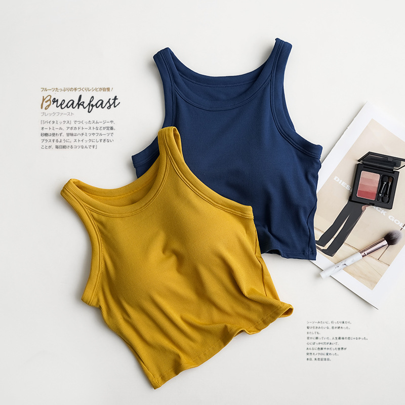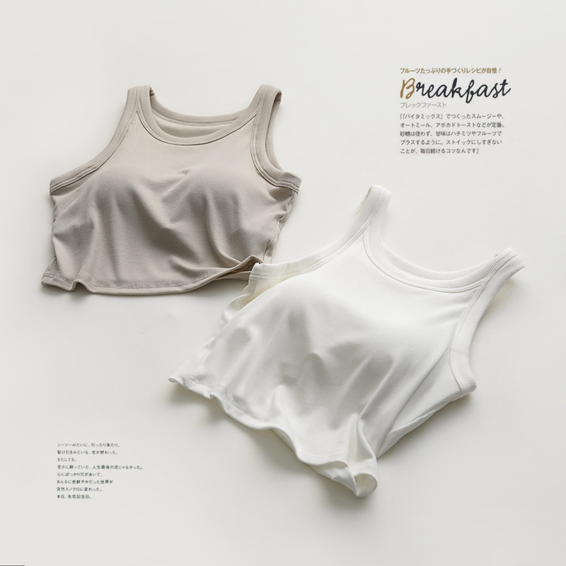 带胸垫一体螺纹短款露脐小背心,舒适带胸垫一体设计,免穿文胸的设计,不用里一层外一层了,舒适的面料,穿起来舒服又好看,胸垫固定缝制不移位,下围有弹力松紧,做工很棒,在宿舍或家里有长辈不太方便,这款自带胸垫设计很贴心,实用又舒服的典范了,细节品质做的都很好,居家或内搭外穿都可以。