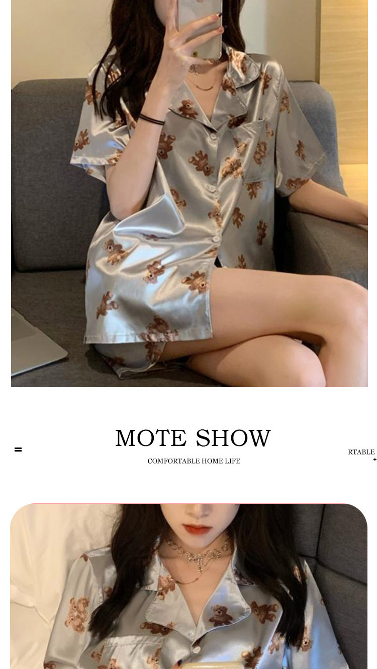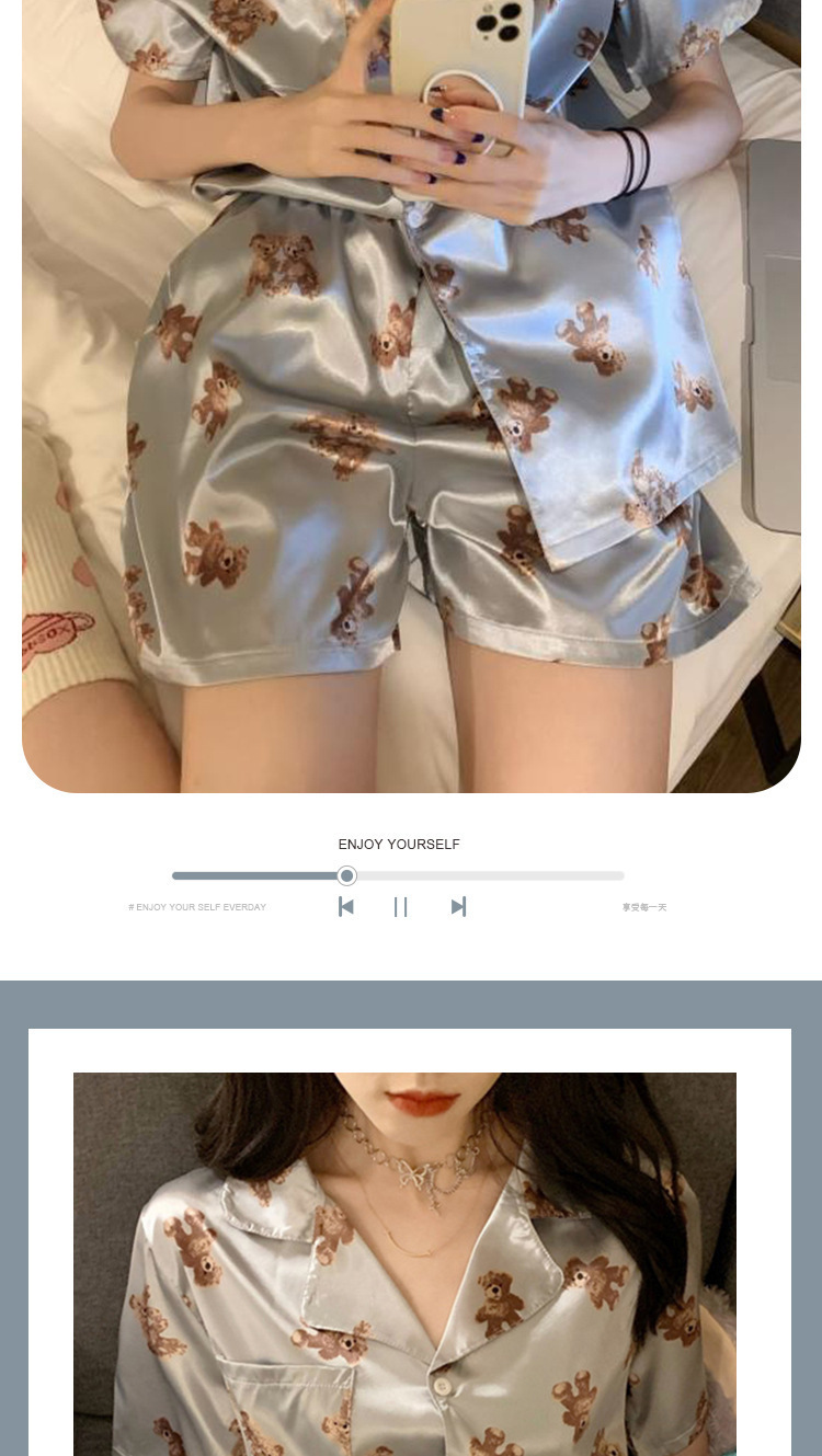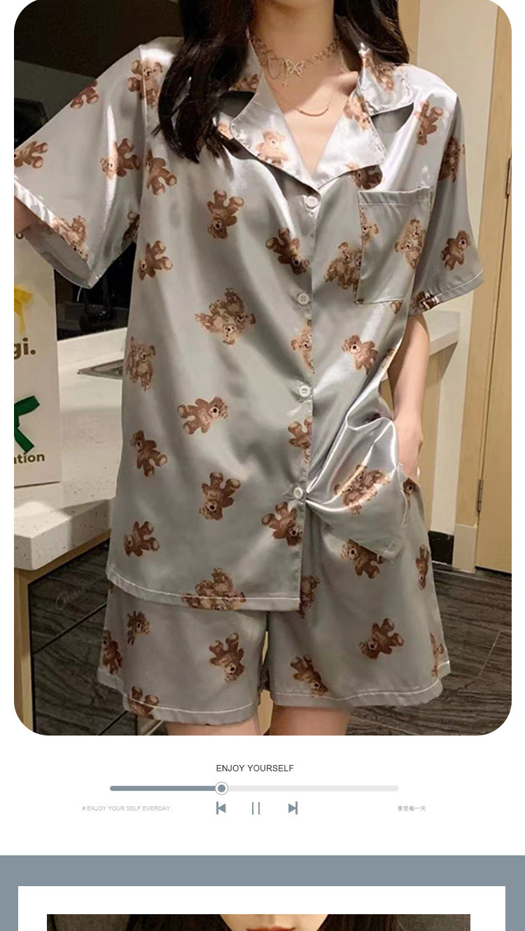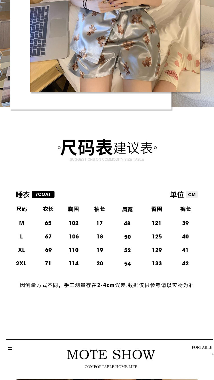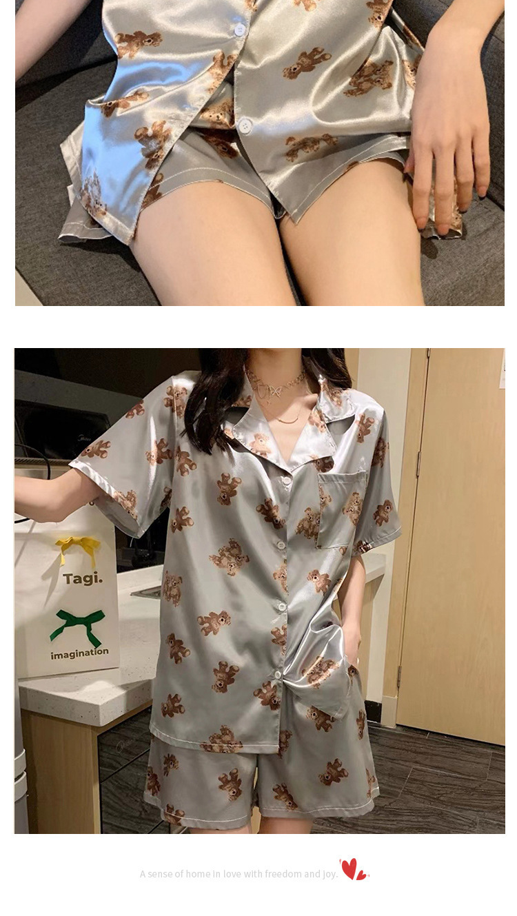 공장 대외 무역 시뮬레이션 실크 아이스 실크 잠옷 여자의 여름 반팔 반바지 느슨한 가정 옷 만화 세트 착용
