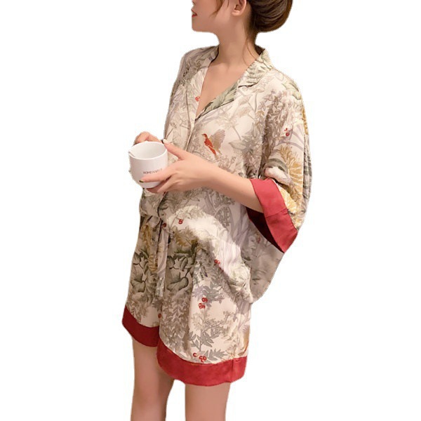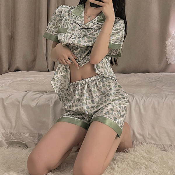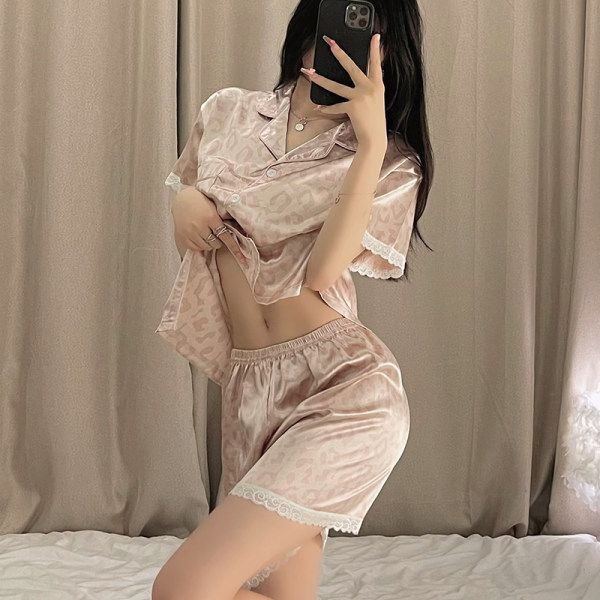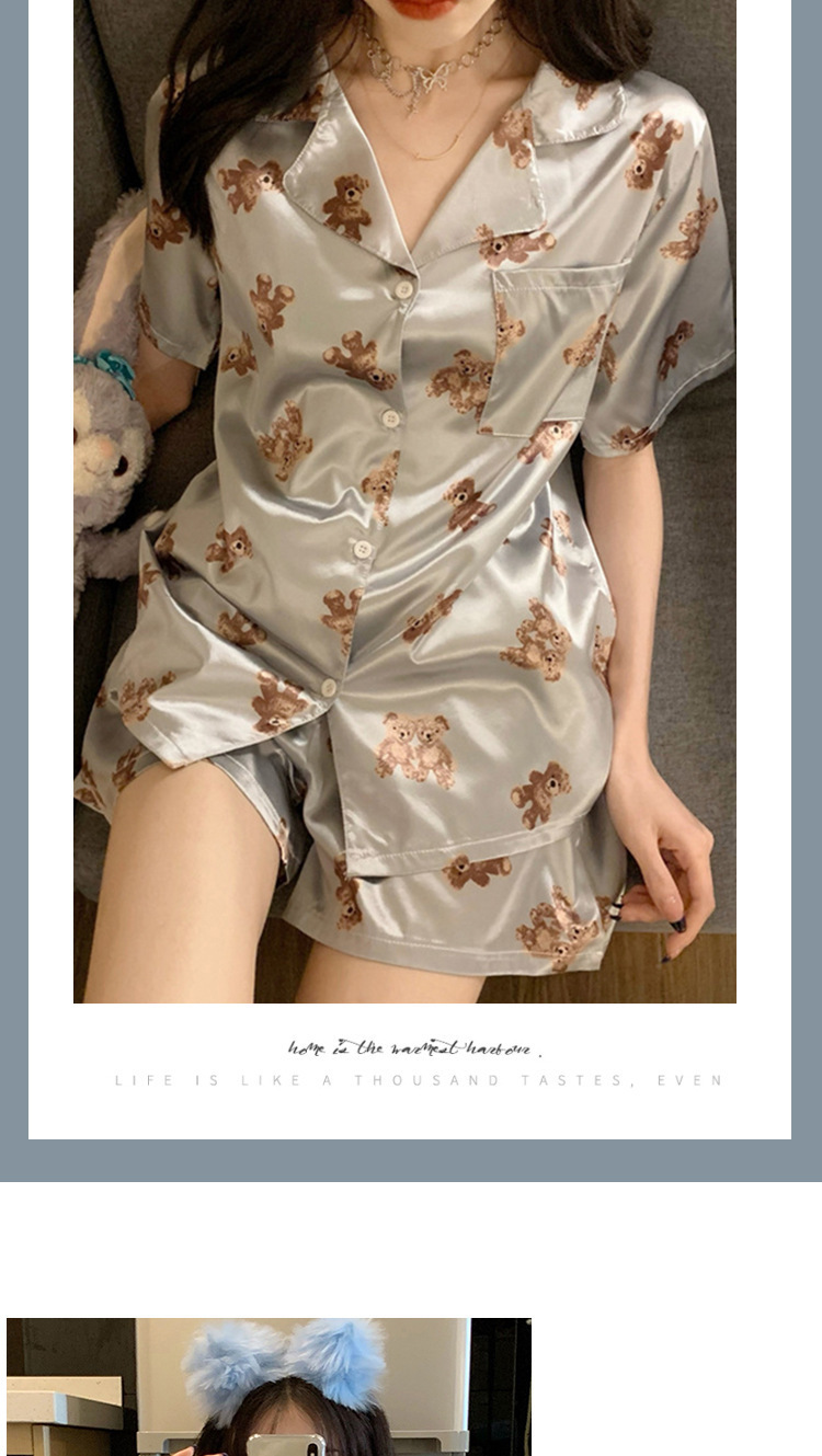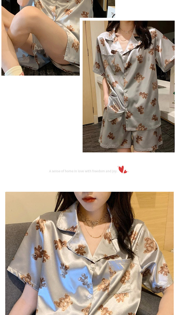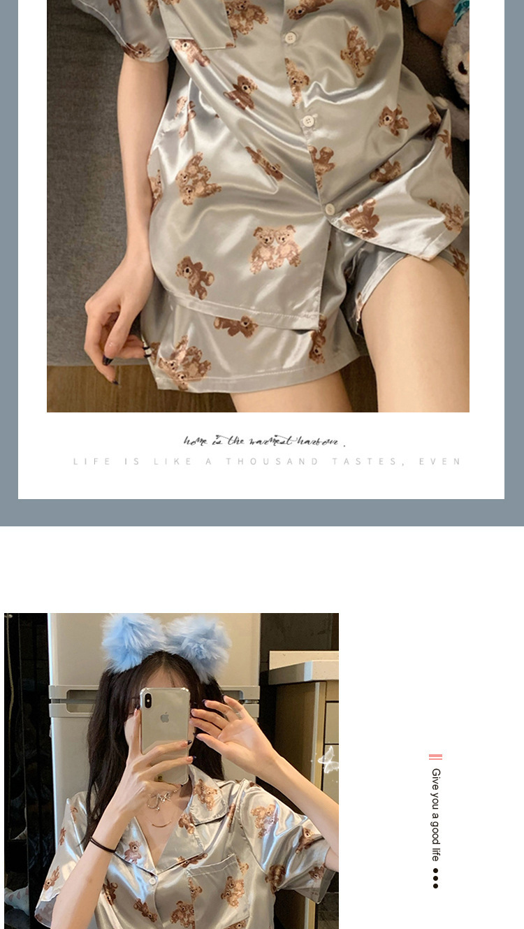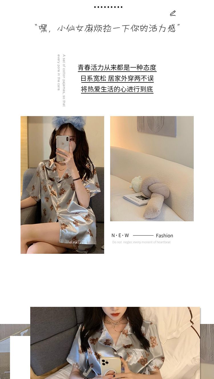 공장 대외 무역 시뮬레이션 실크 아이스 실크 잠옷 여자의 여름 반팔 반바지 느슨한 가정 옷 만화 세트 착용