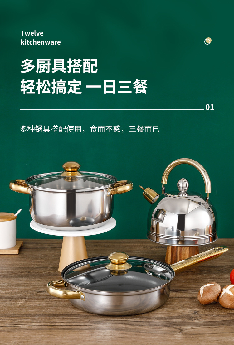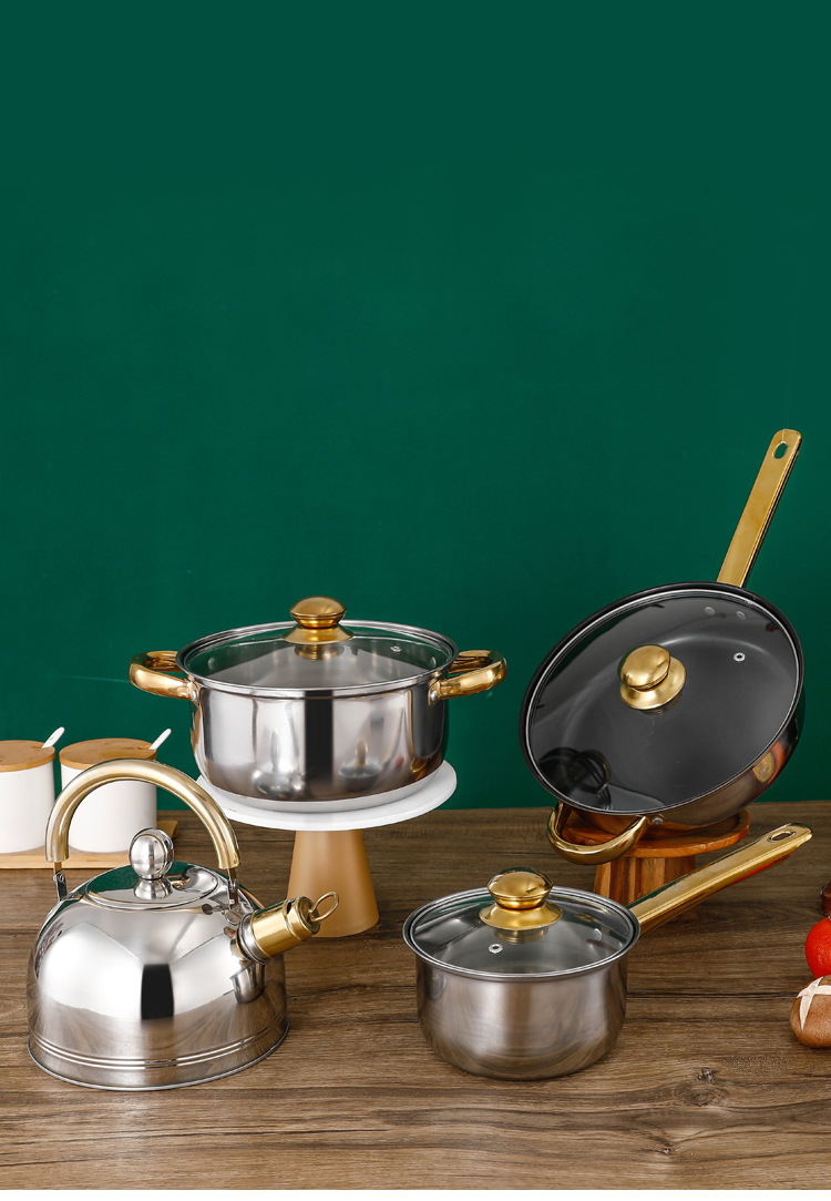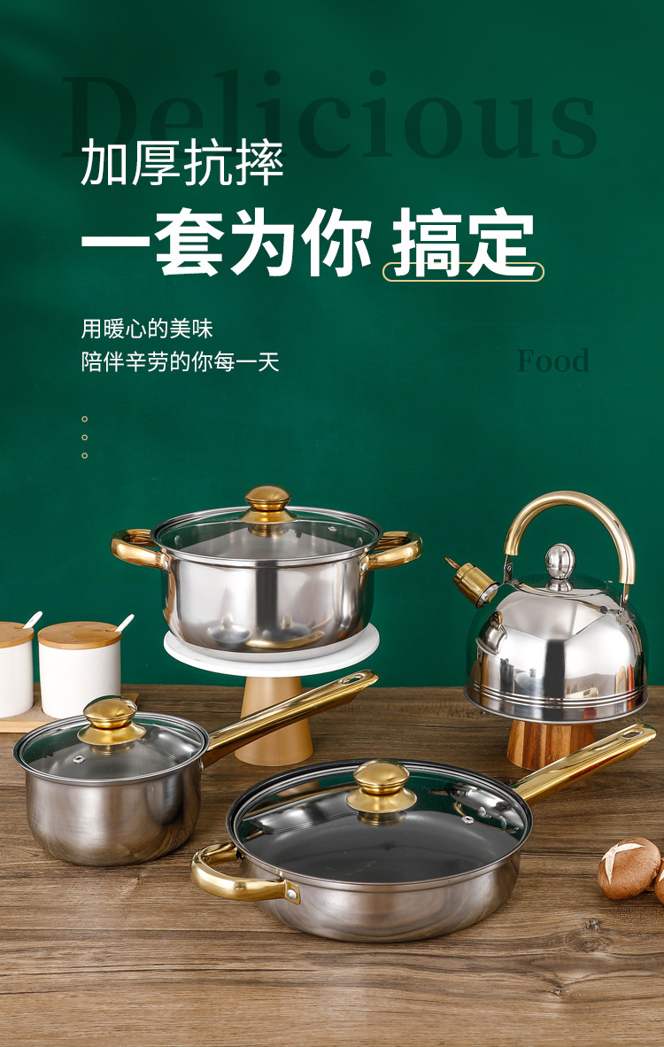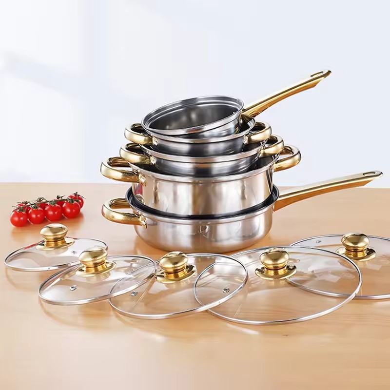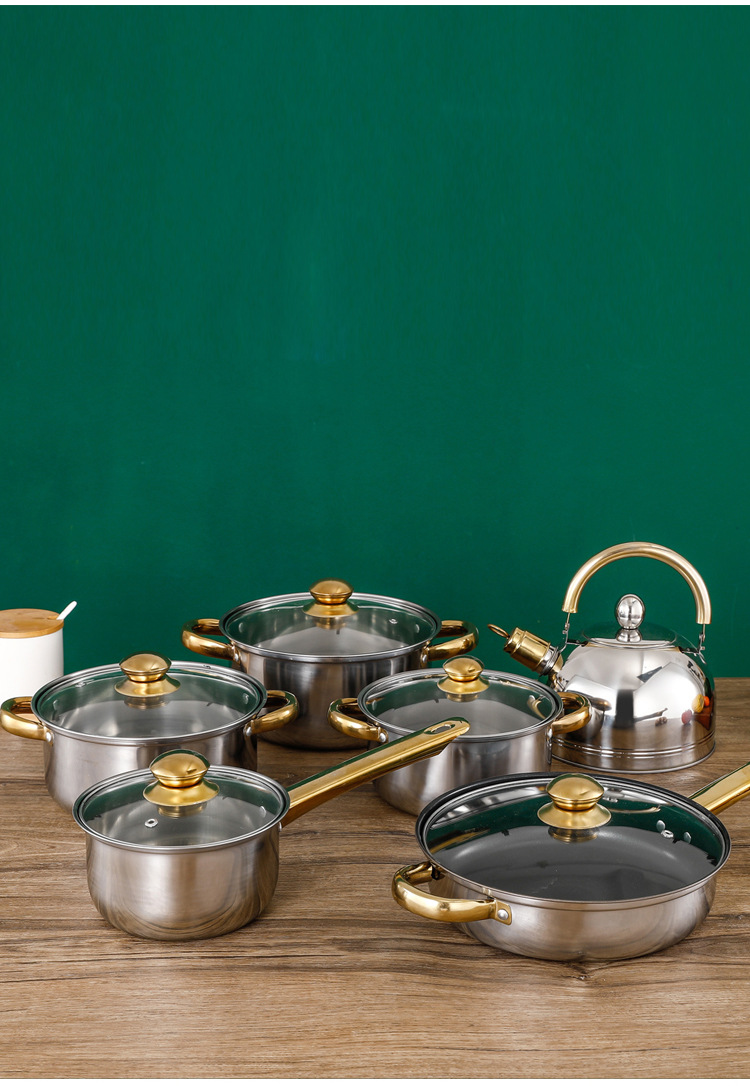 크로스 보더 두꺼운 더블 바닥 12 피스 세트 냄비 스테인레스 스틸 싱글 핸들 우유 냄비 더블 이어 수프 냄비 6 피스 세트 선물 냄비