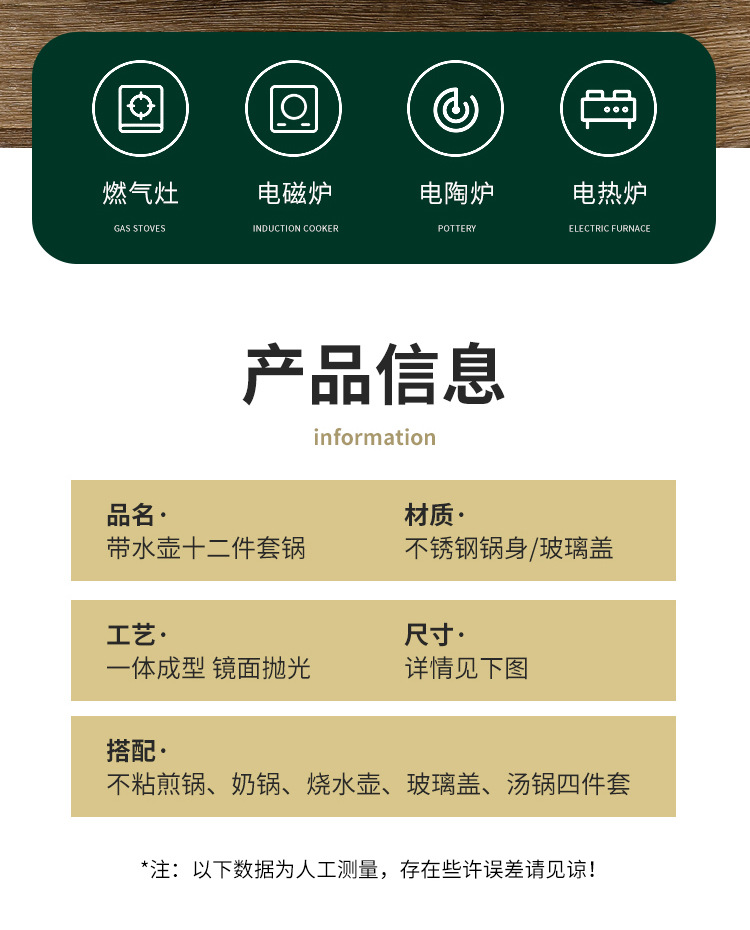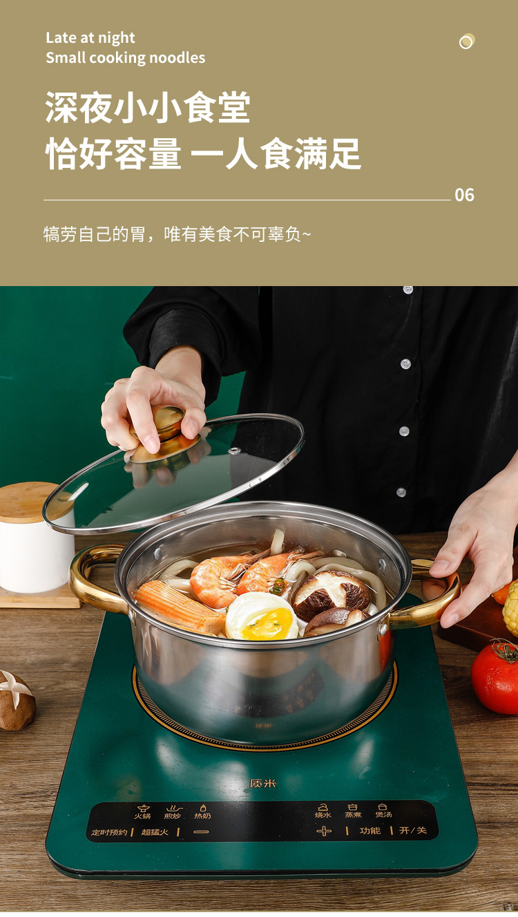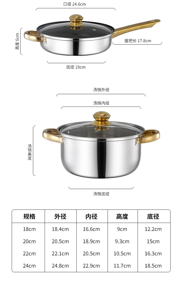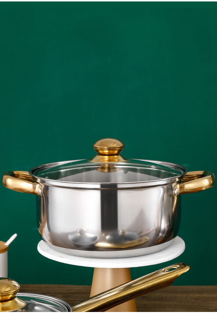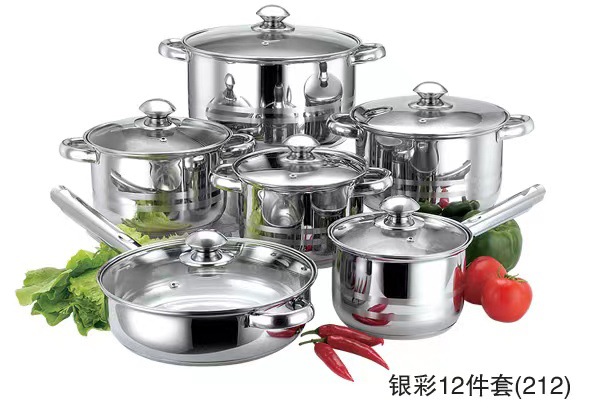 크로스 보더 두꺼운 더블 바닥 12 피스 세트 냄비 스테인레스 스틸 싱글 핸들 우유 냄비 더블 이어 수프 냄비 6 피스 세트 선물 냄비