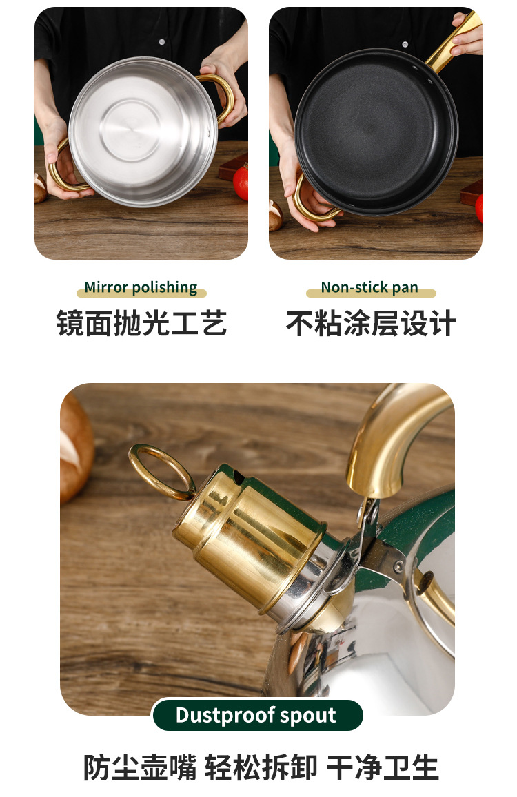 얇은 골드 12종 세트(주전자 포함) - 프라이팬 논스틱