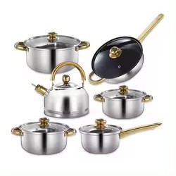 주전자가 포함된 얇은 골드 12종 세트 - 프라이팬 트루 컬러