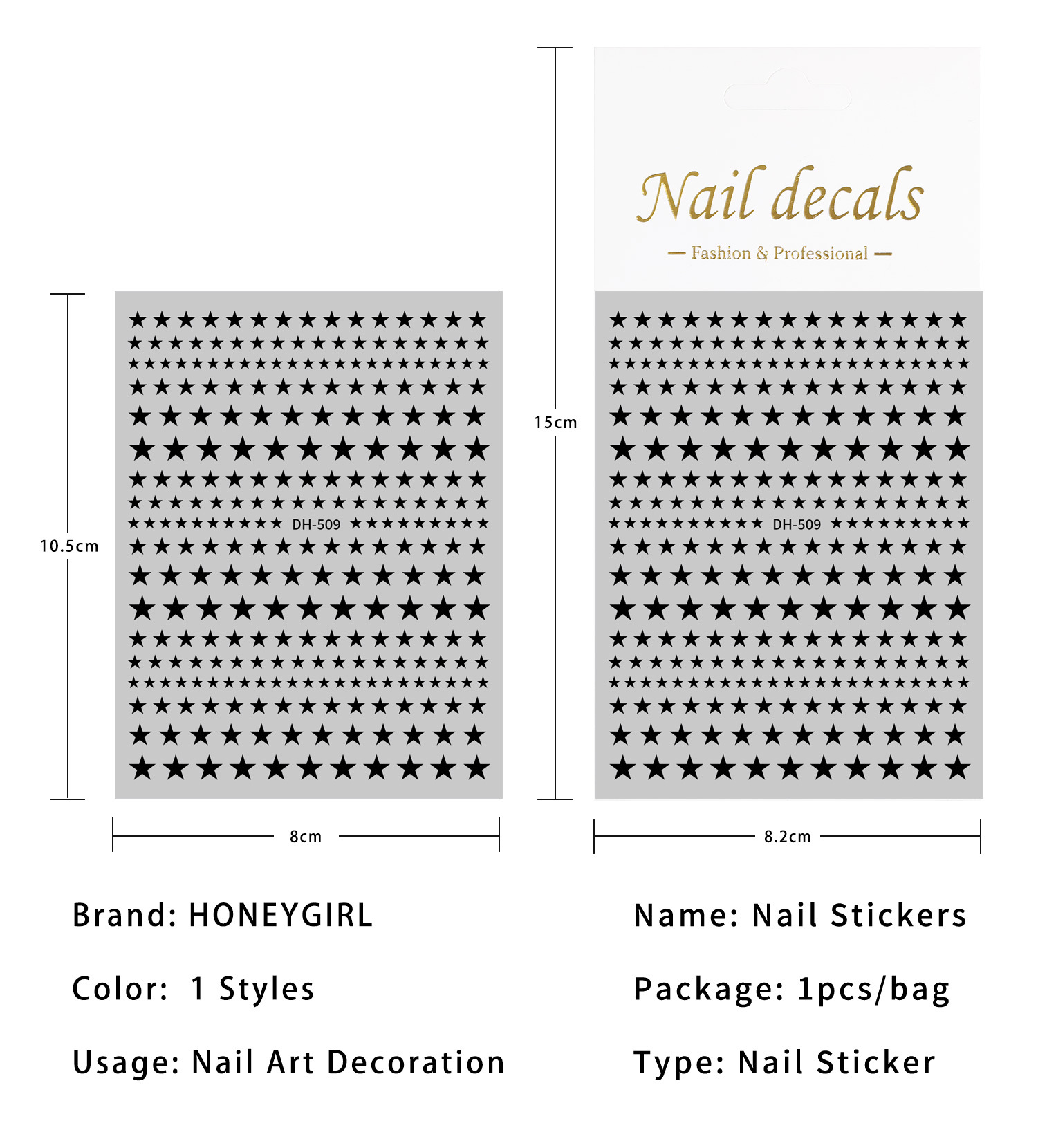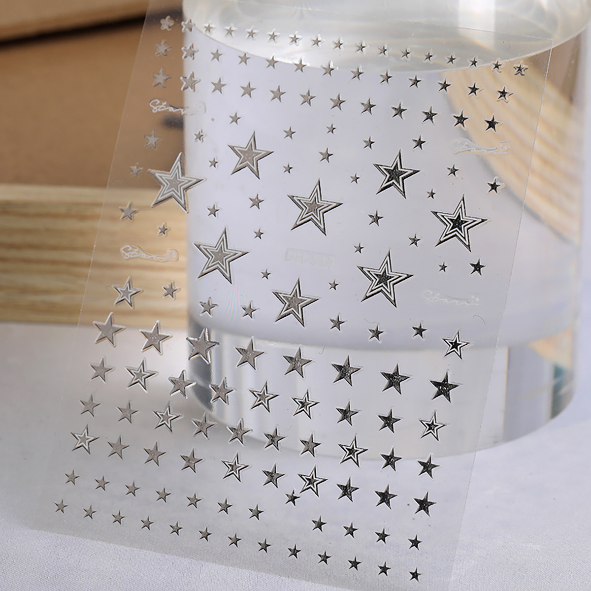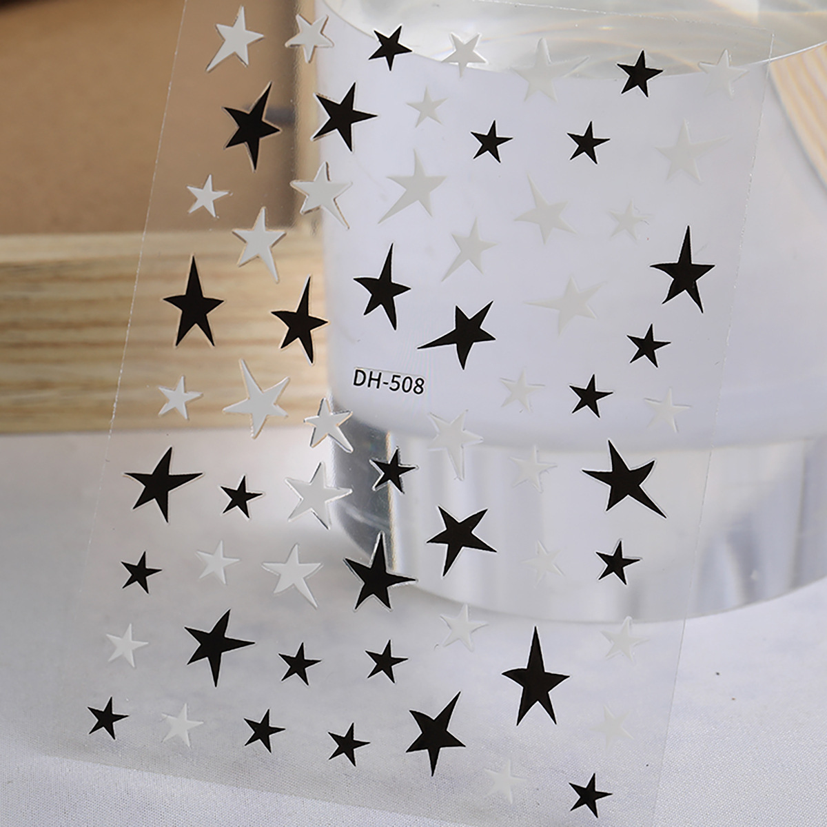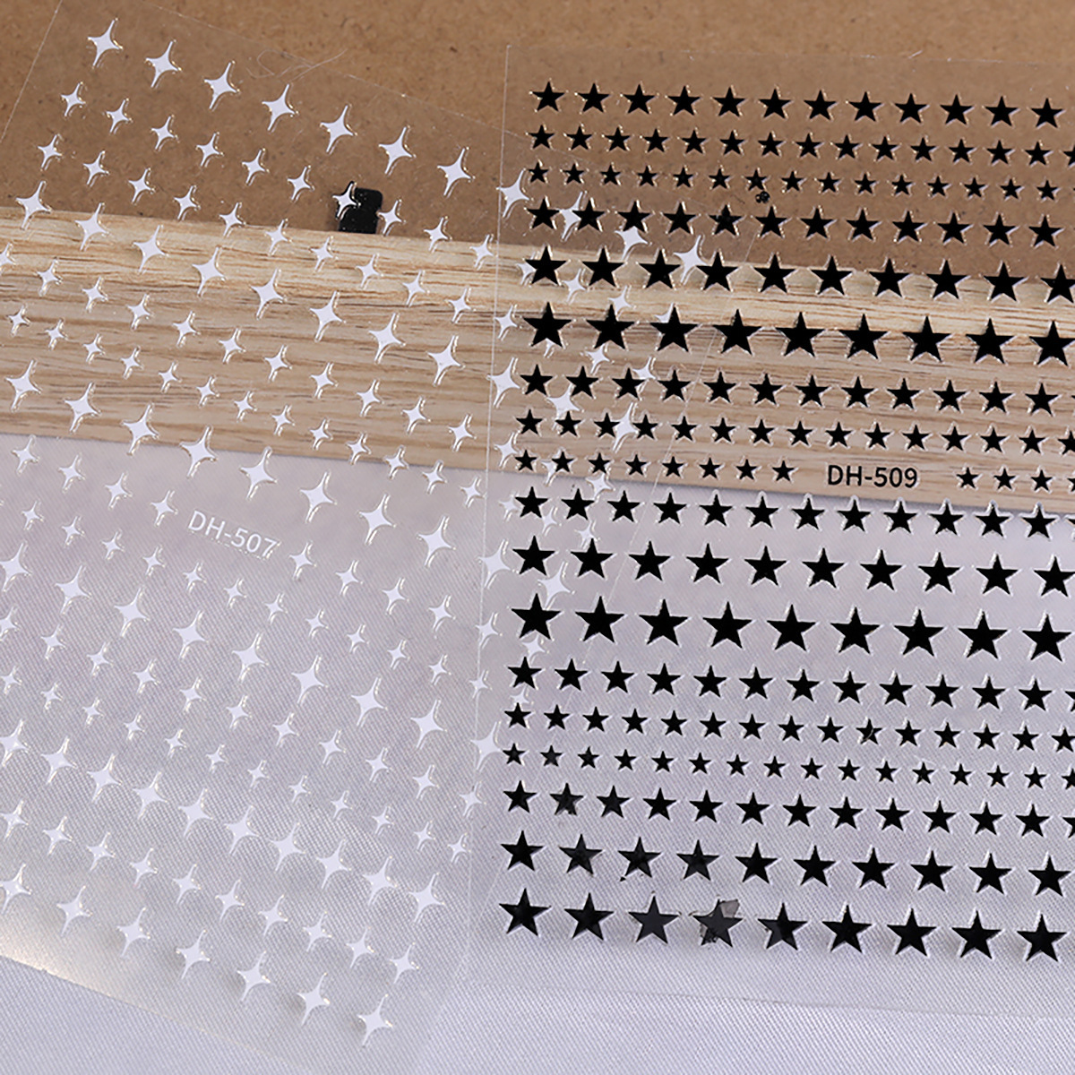 인터넷 인기 오각별 네일 스티커 3D 접착식 금색, 은색, 흑백 네각별 네일 아트 스티커 장식품 DH 스타일