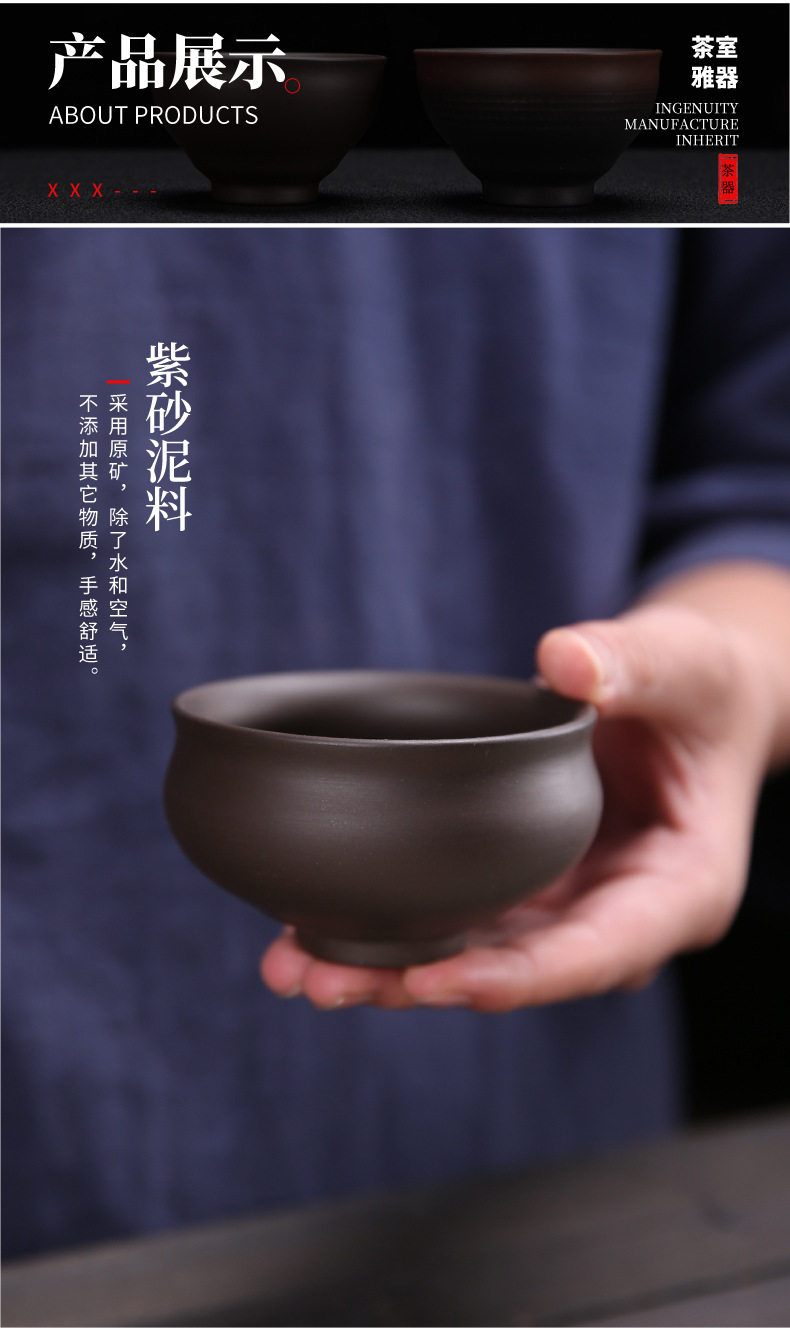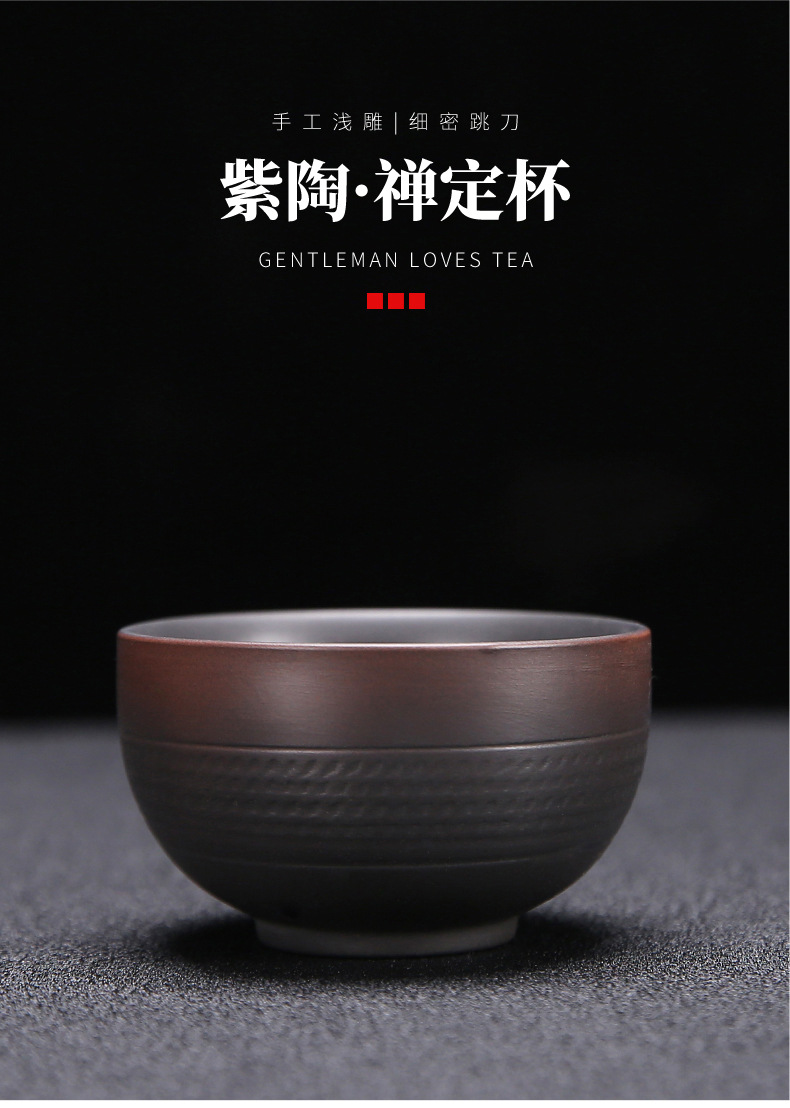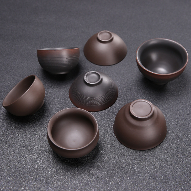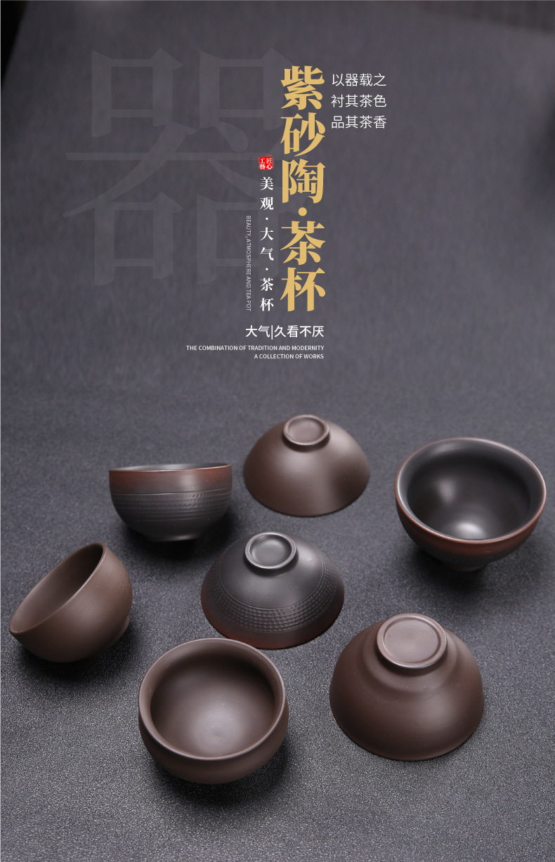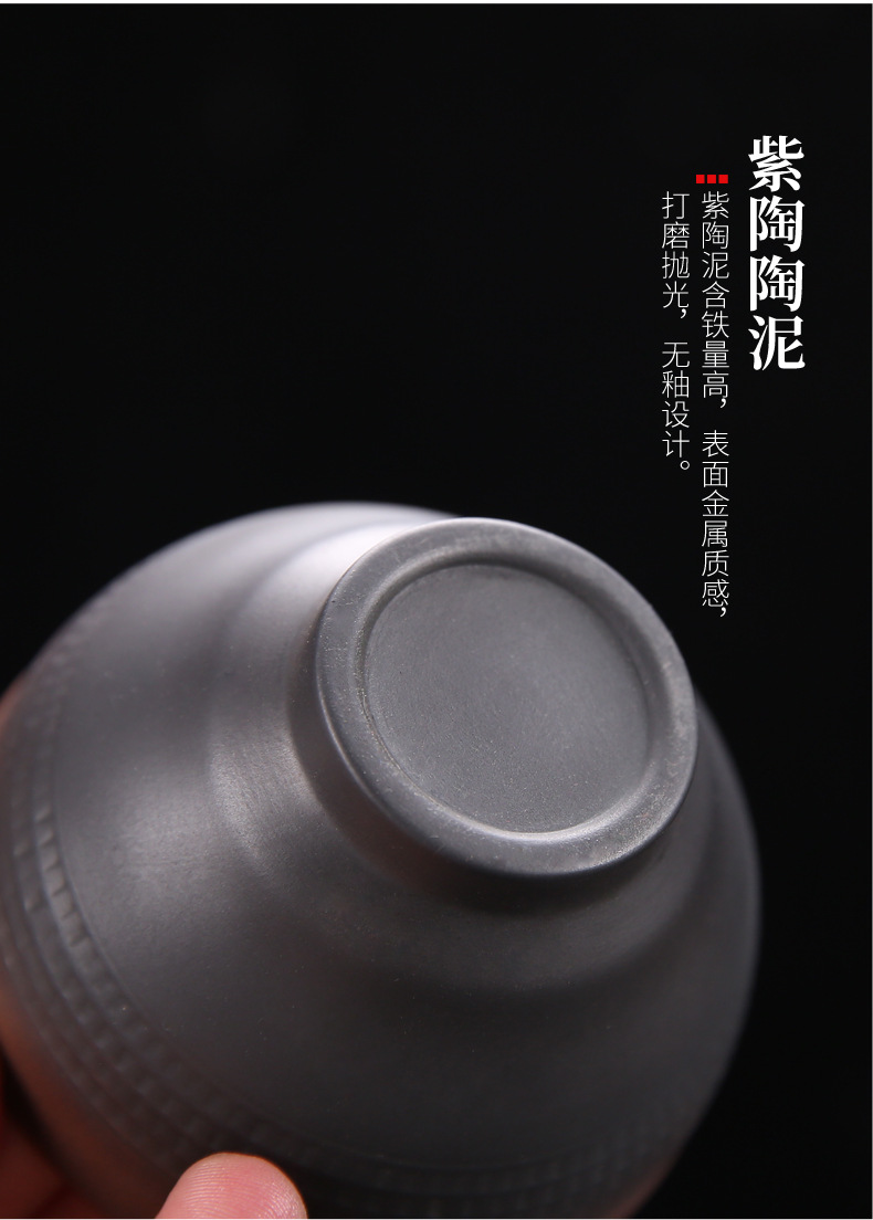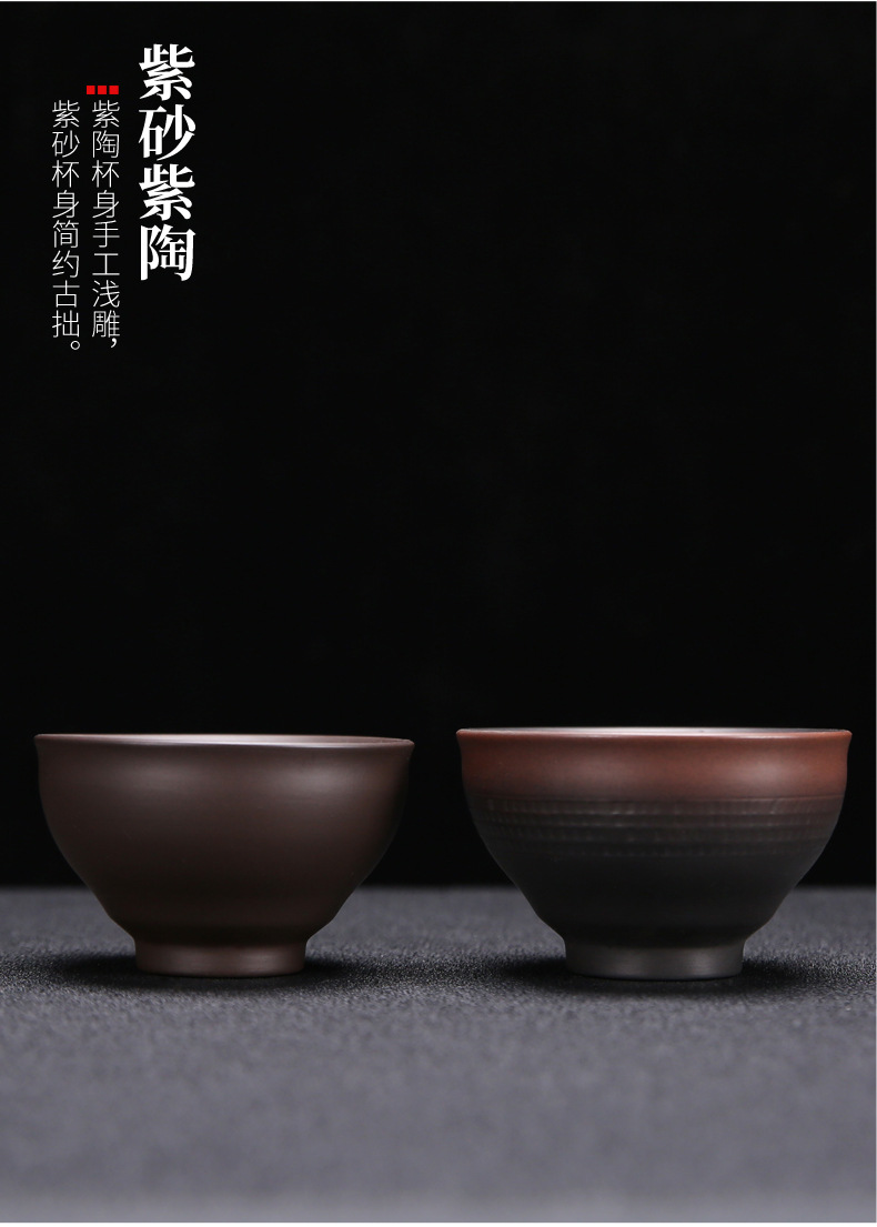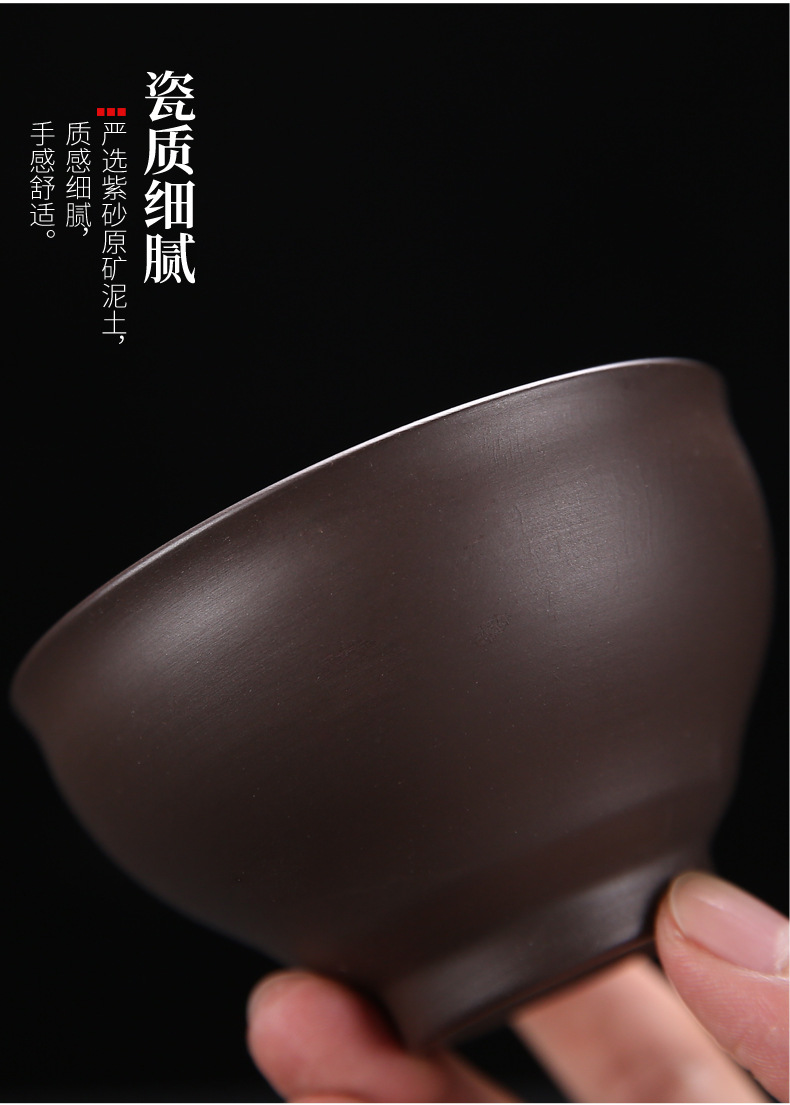고급형 쿵후 차 세트 작은 찻잔 싱글 컵 개인 컵 마스터 컵 퍼플 도기 찻잔 빈티지 차 시음 컵 찻그릇