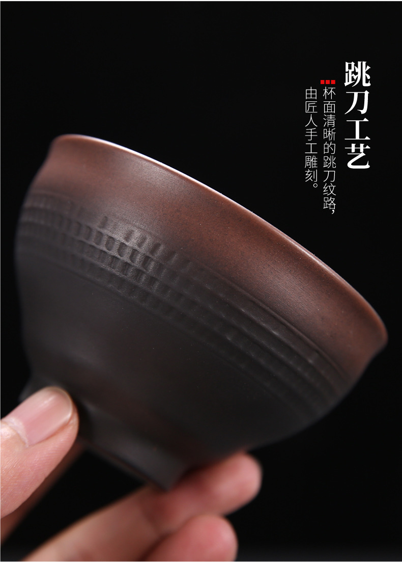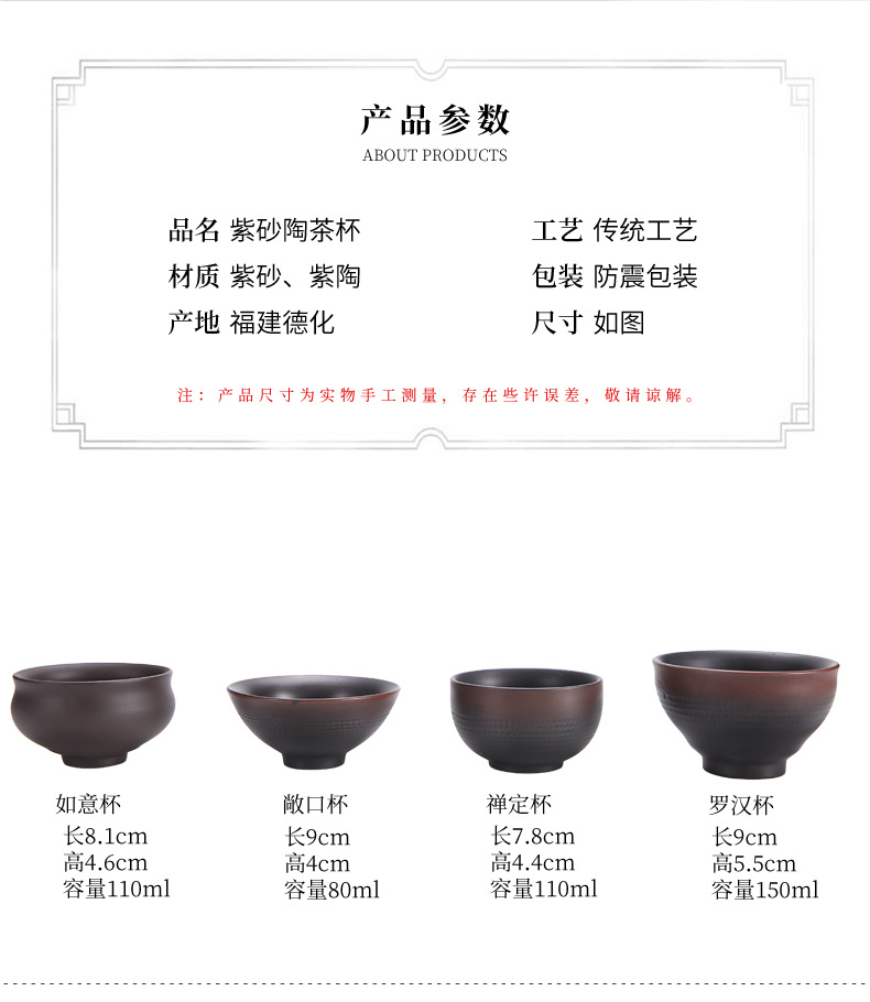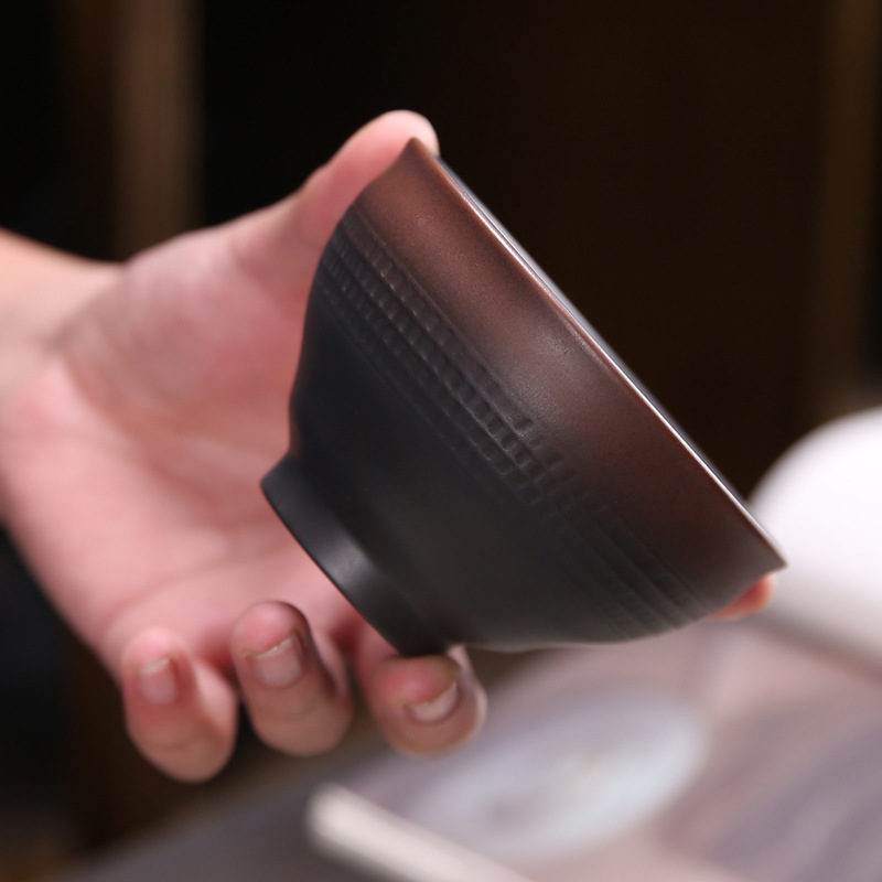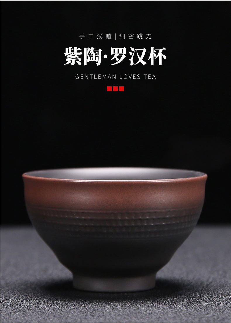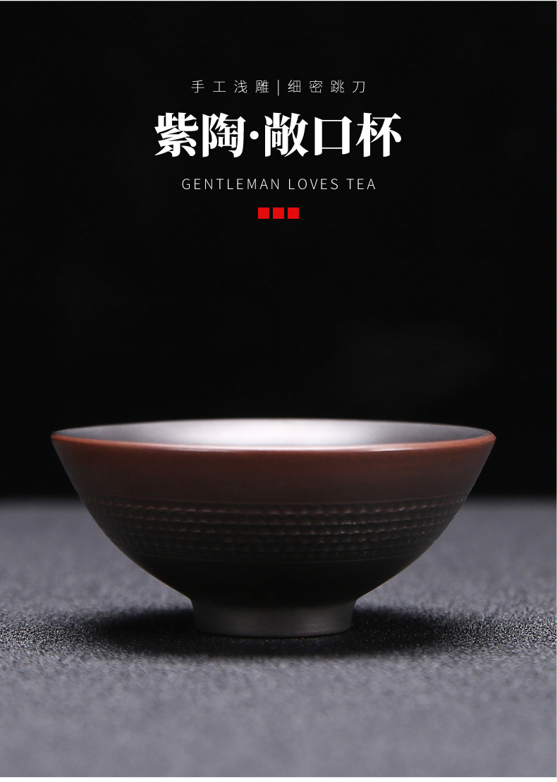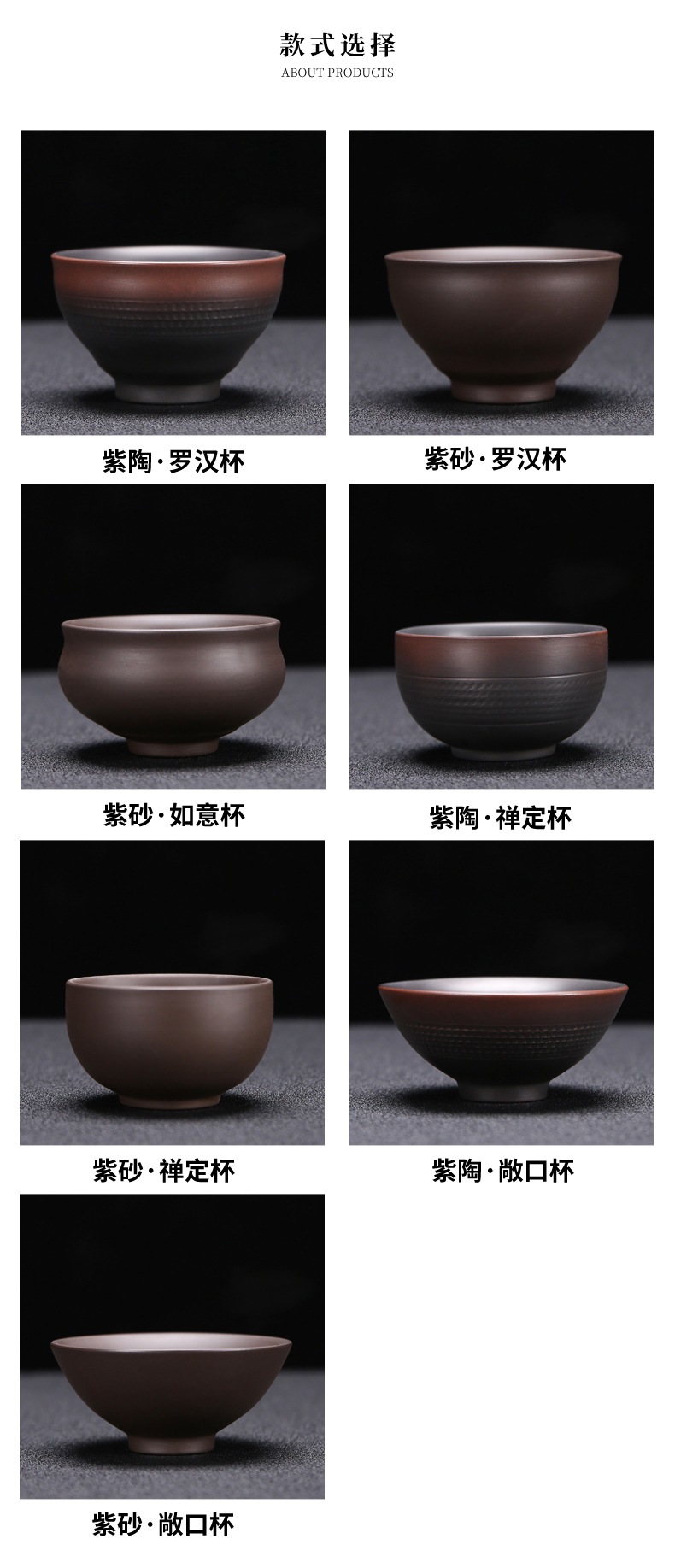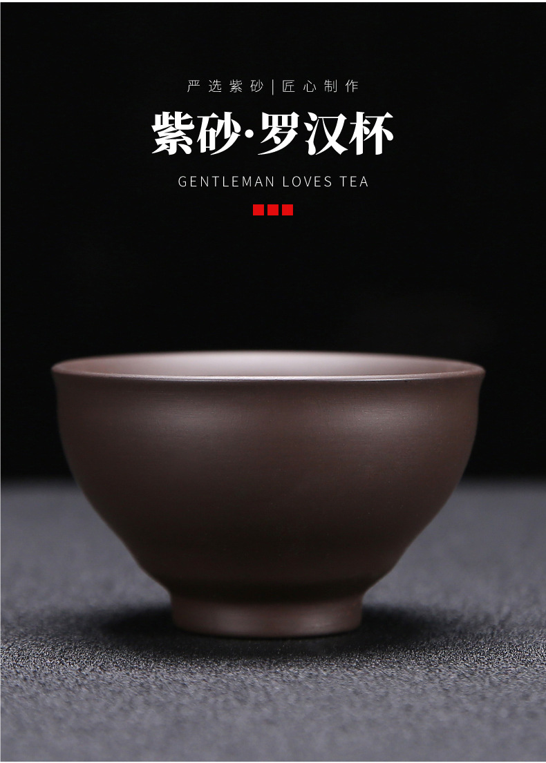 고급형 쿵후 차 세트 작은 찻잔 싱글 컵 개인 컵 마스터 컵 퍼플 도기 찻잔 빈티지 차 시음 컵 찻그릇